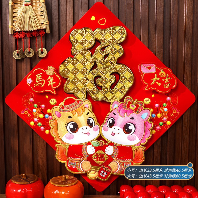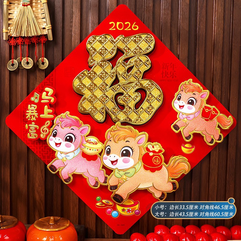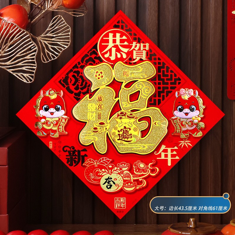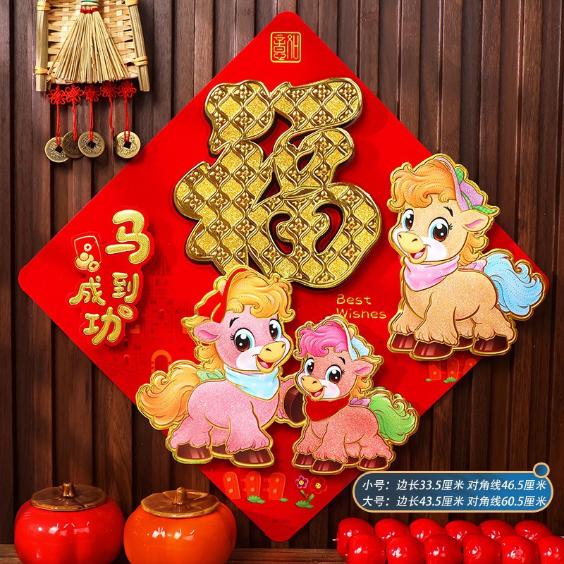 福字门贴2026马年新款创意新年装饰春节过年立体大号大门贴纸年画
