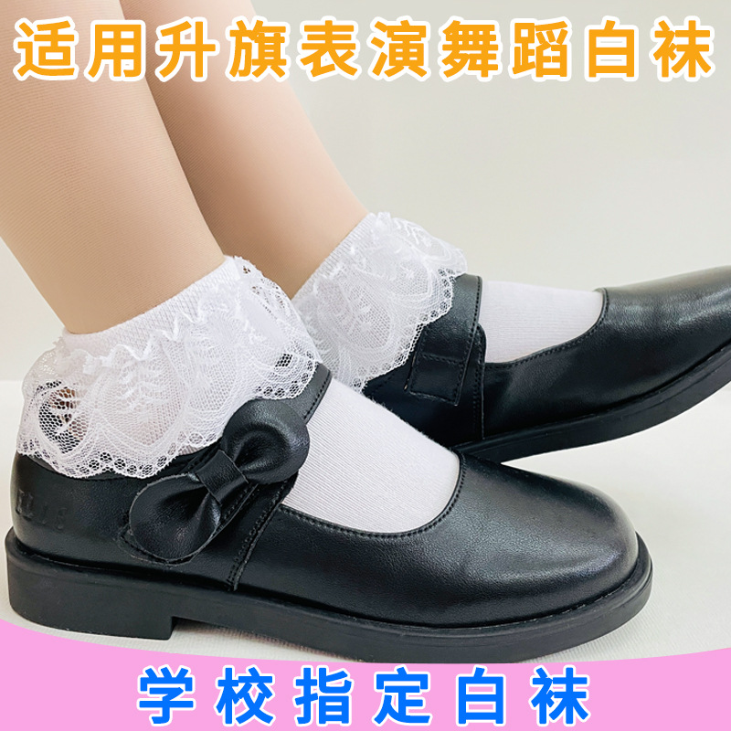 儿童棉袜女花边蕾丝公主袜网眼表演拉丁舞蹈袜棉纯白色学生中大童