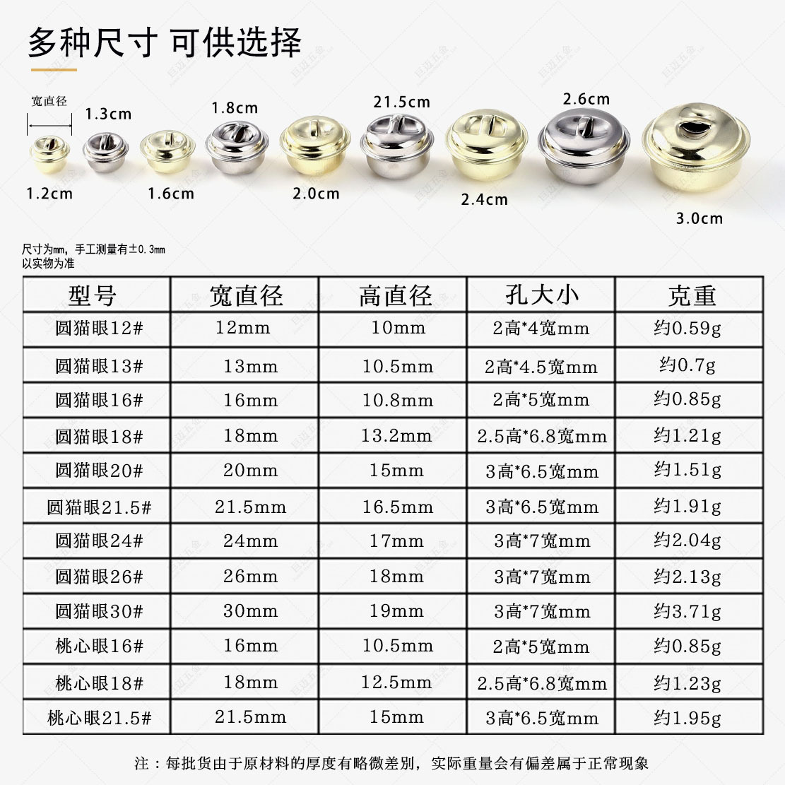 铁金属一字铃铛圣诞装饰宠物用品早教玩具12-30mm金银色铃铛批发