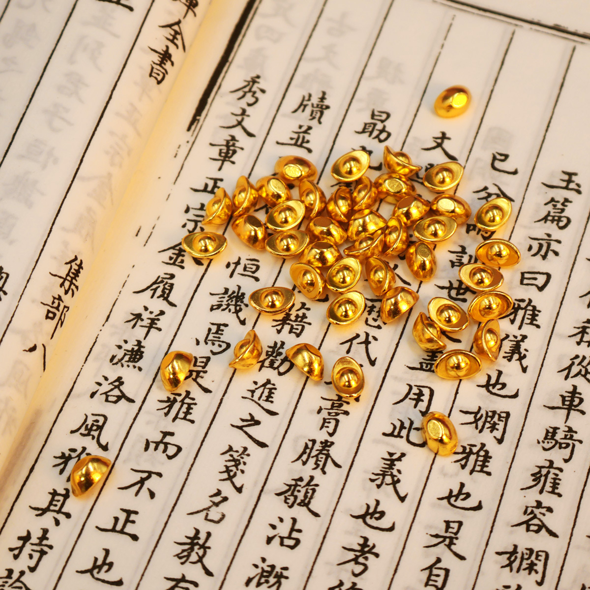 实心迷你沙金小元宝金条礼品百福缸聚宝盆辟火龙小金豆装饰工艺品