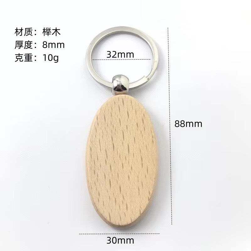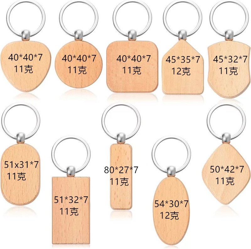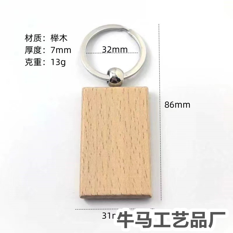 现货创意榉木钥匙扣可激光刻字小木块挂件吊牌木质汽车钥匙圈印刷