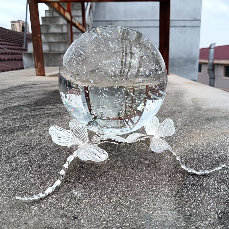 透明水晶光球办公室桌面摆件装潢饰品玻璃珠打孔实心球工艺品批发