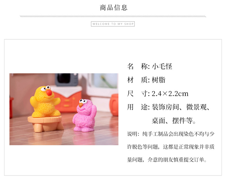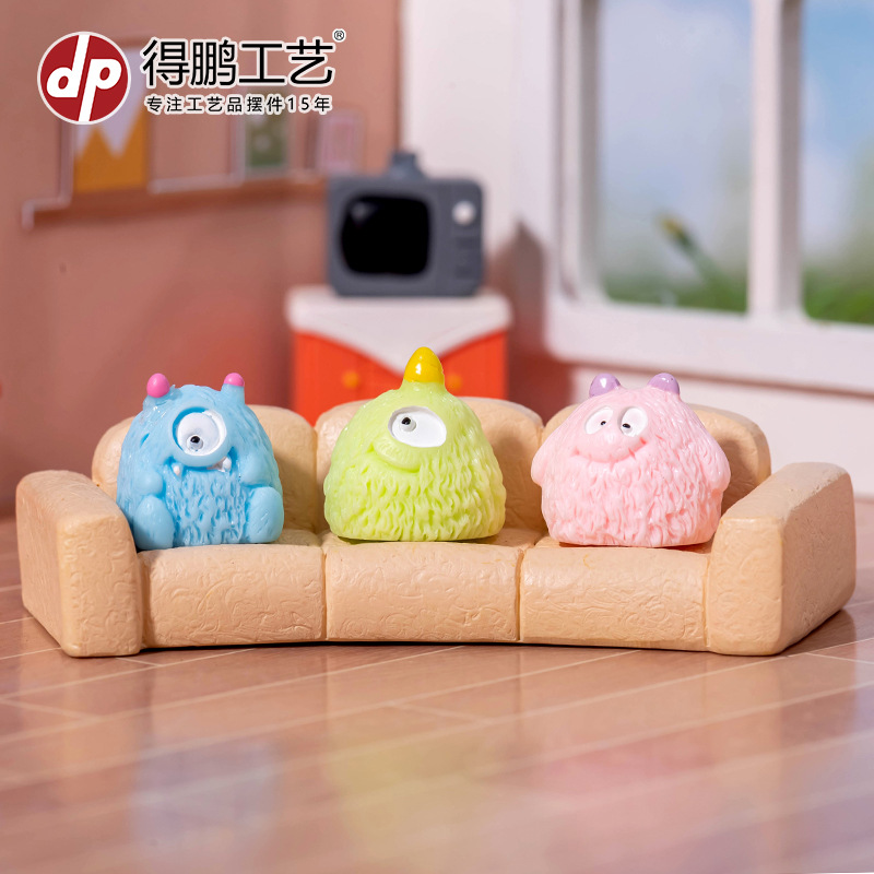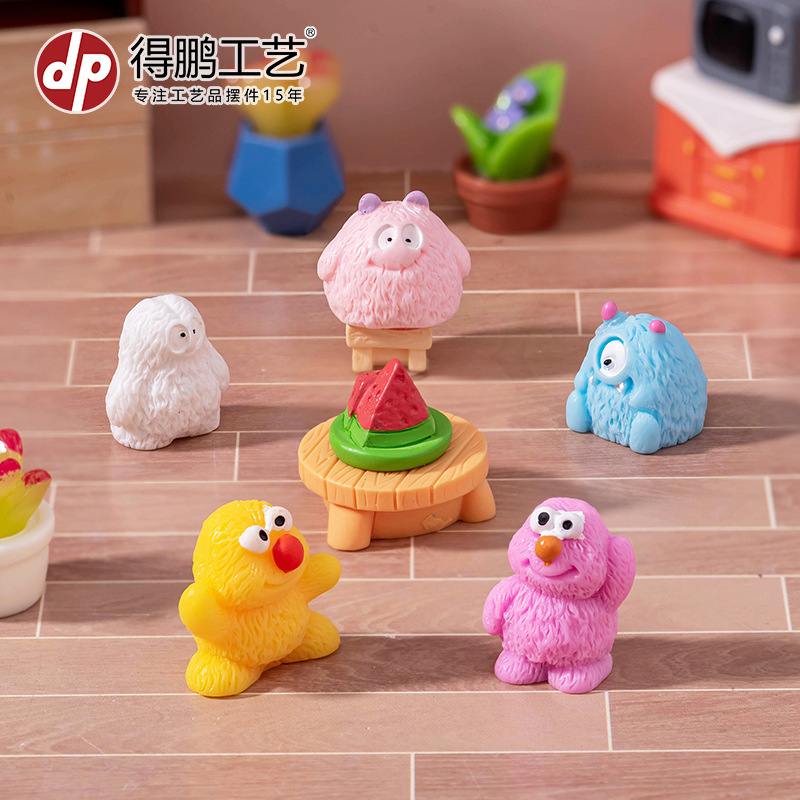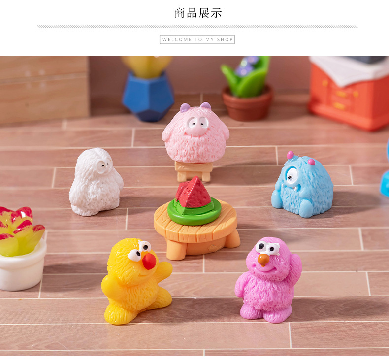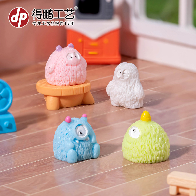 微景观卡通可爱创意小毛怪动物摆件娃屋家居装饰品桌面汽车小摆件