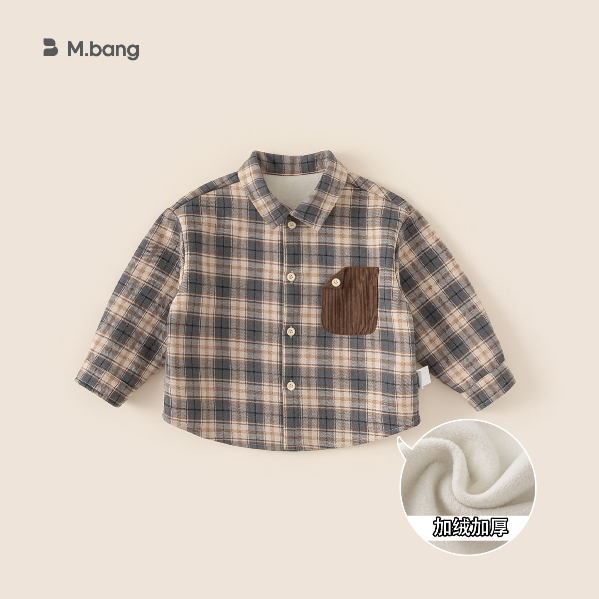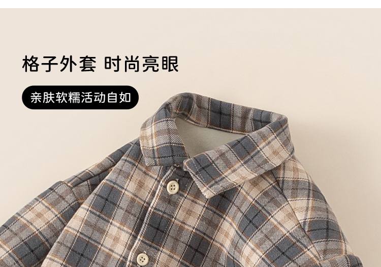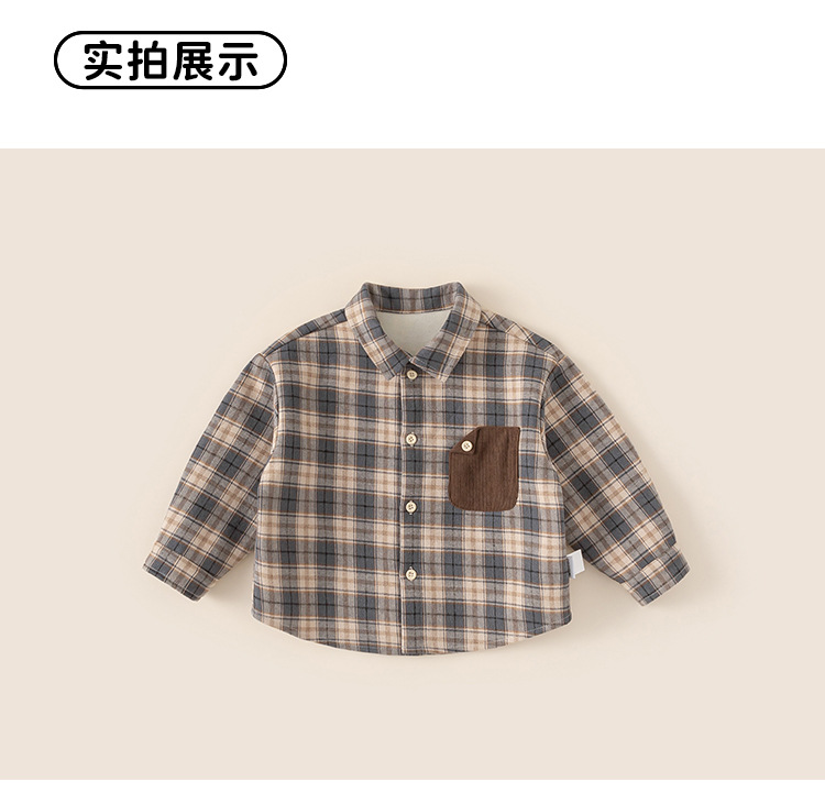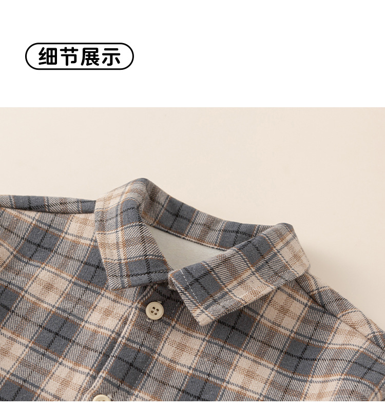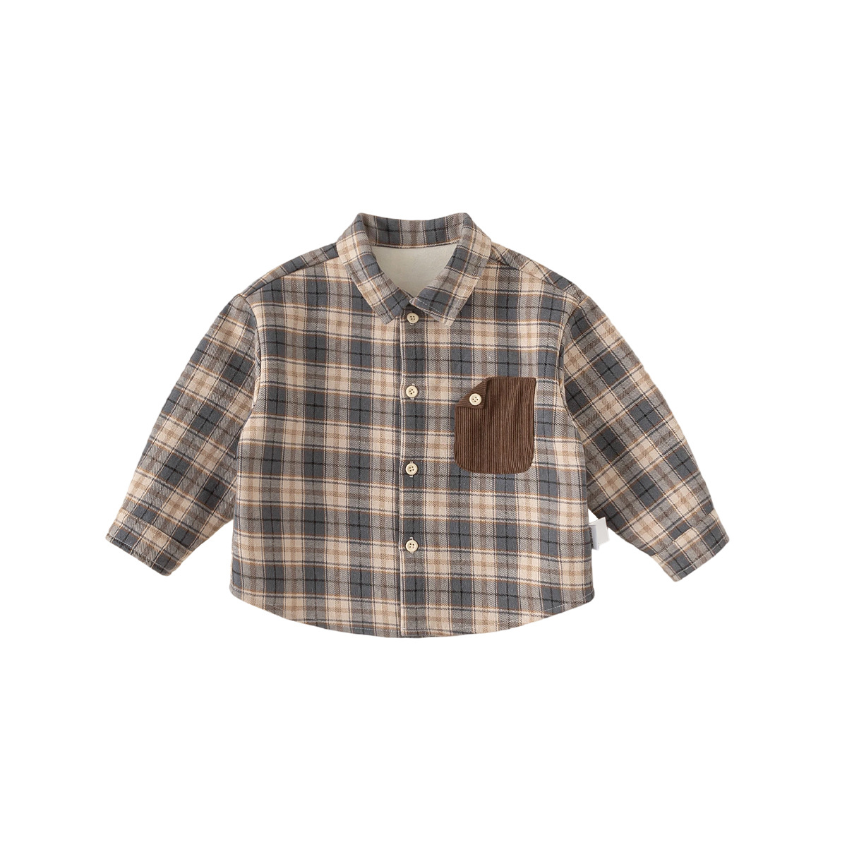 邦选男童衬衫衣服一体绒加厚儿童上衣内搭冬款条绒格子宝宝外套