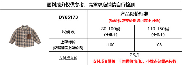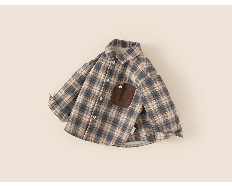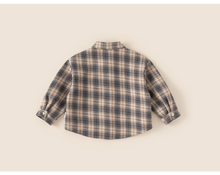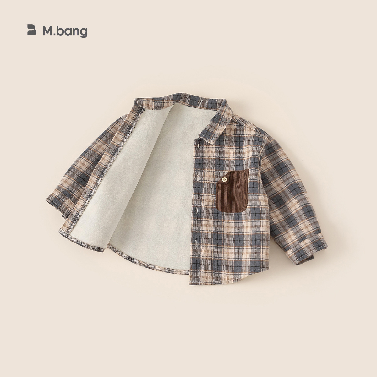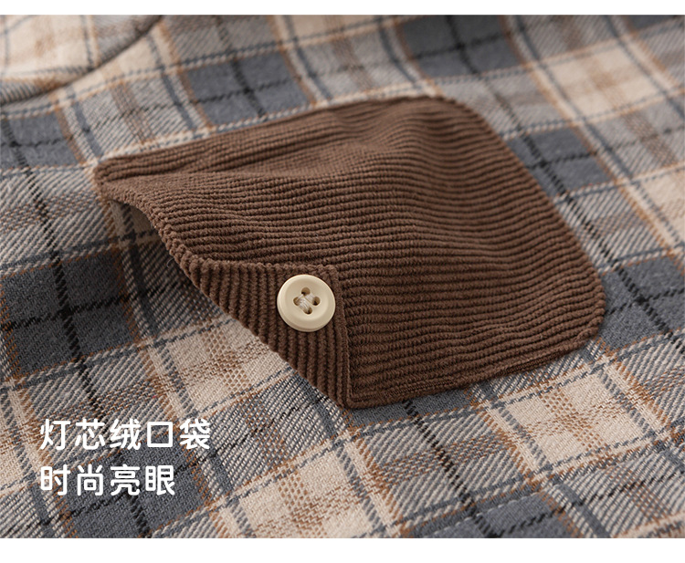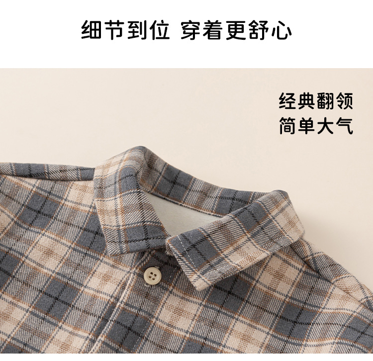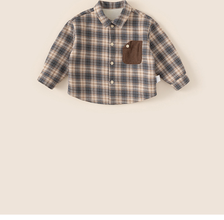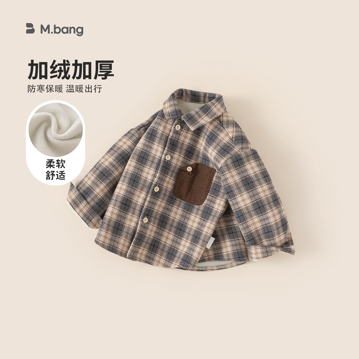 邦选男童衬衫衣服一体绒加厚儿童上衣内搭冬款条绒格子宝宝外套