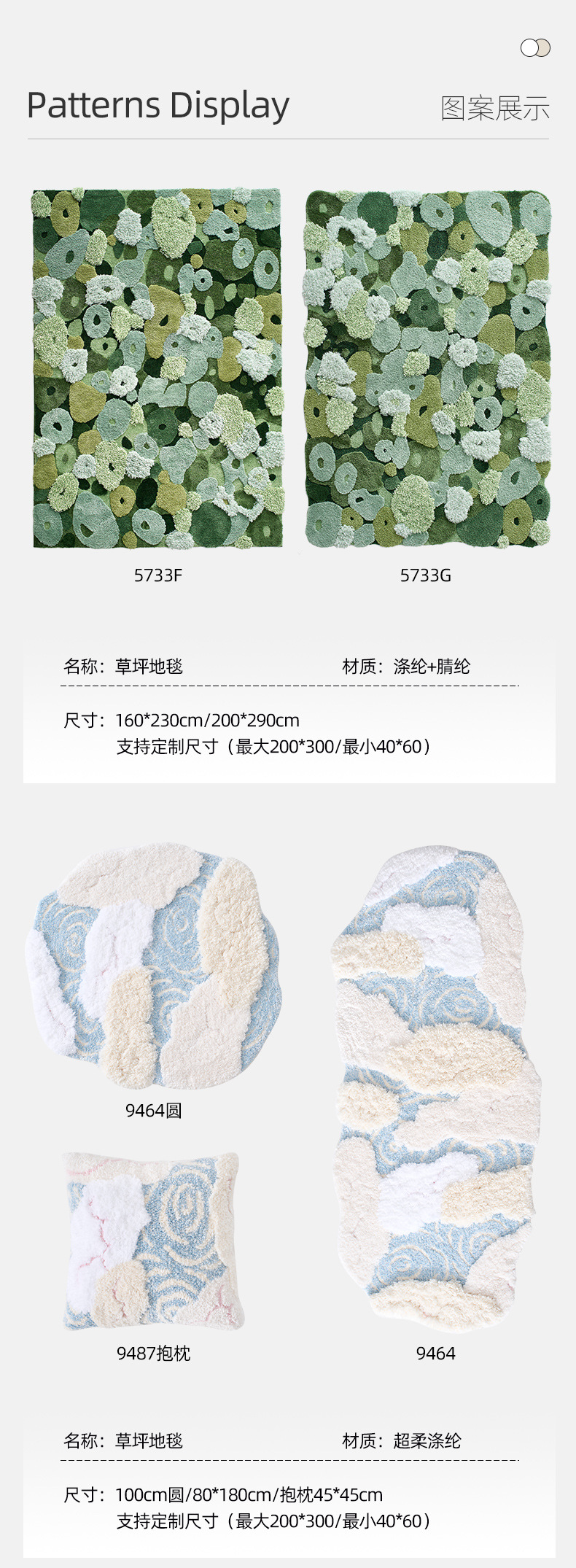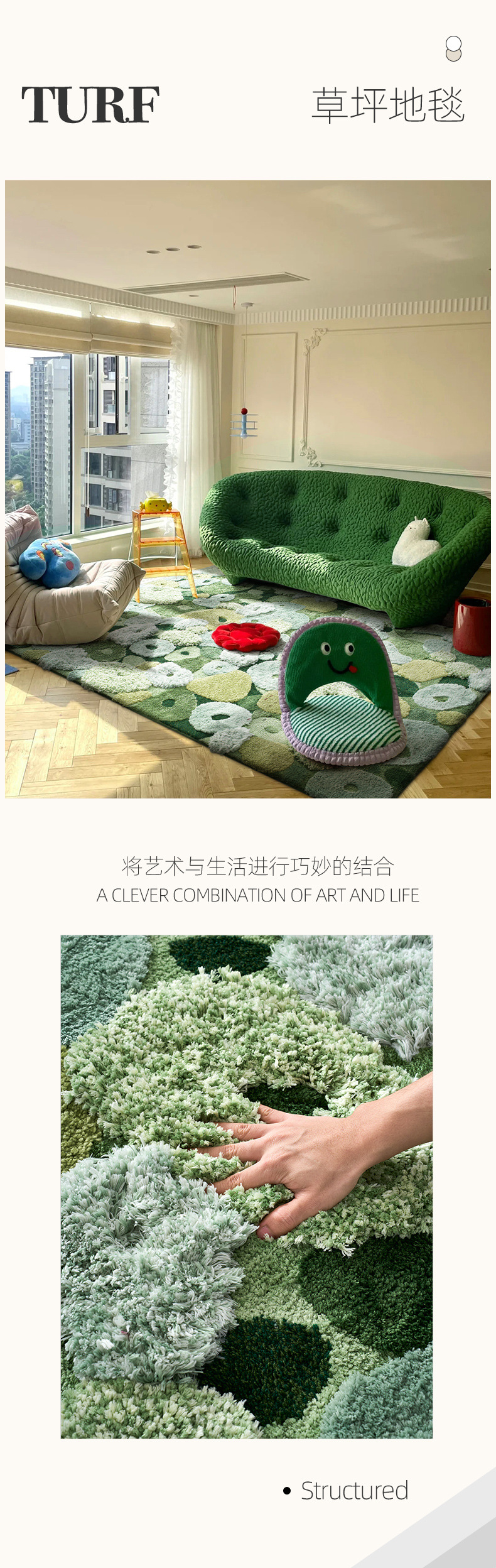 源头工厂客厅地毯森林系耐脏易清理家用绿色草坪卧室地毯可光脚
