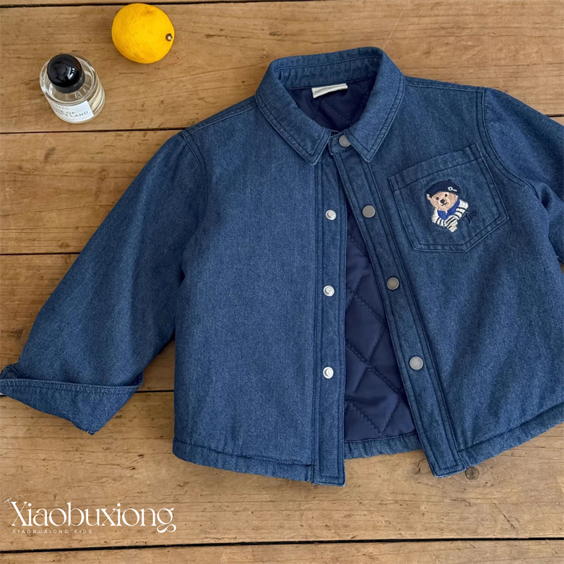 小布熊儿童衬衫冬款新品男女童长袖男童衬衫韩版童装男童衬衣加棉