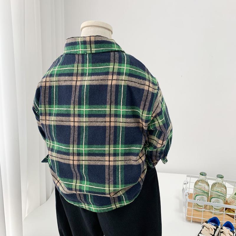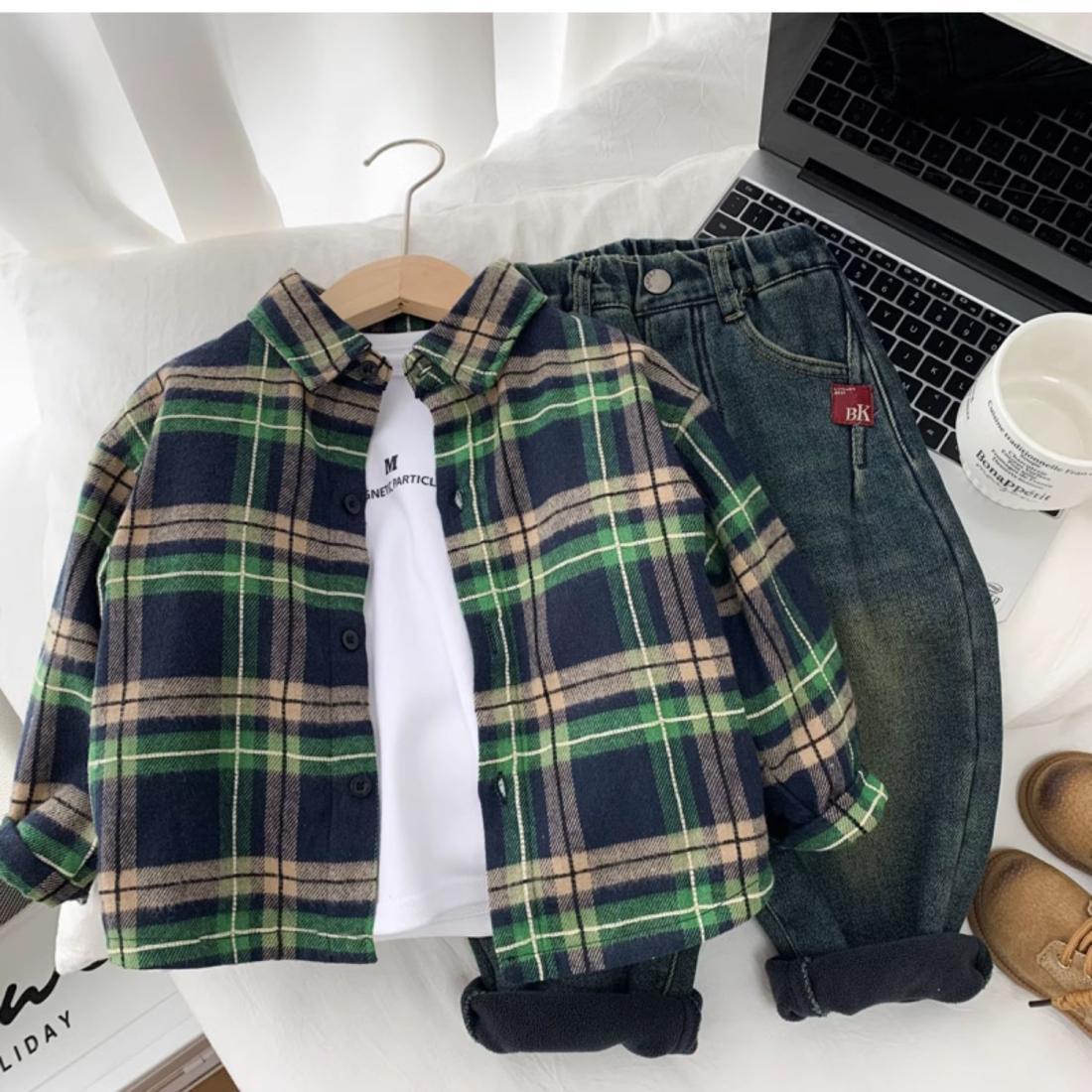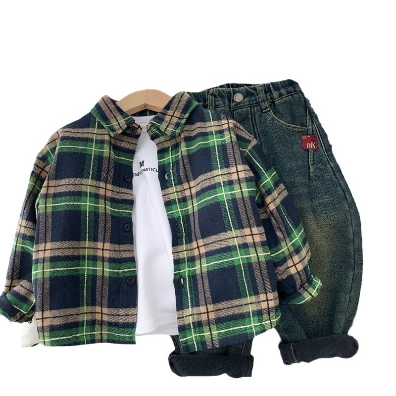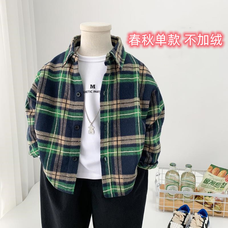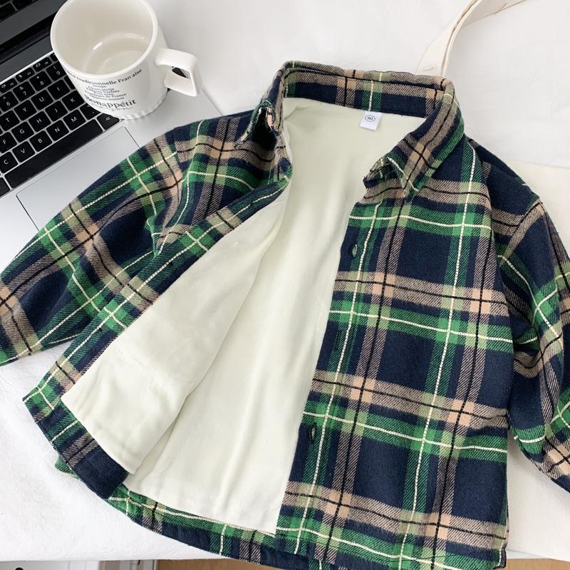 男童加绒衬衫秋冬装休闲新款儿童春秋洋气格子衬衣中小童帅气上衣