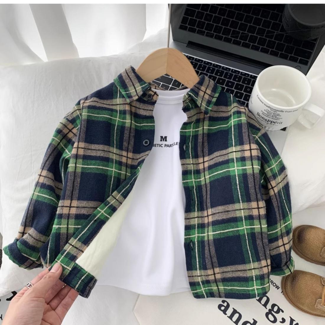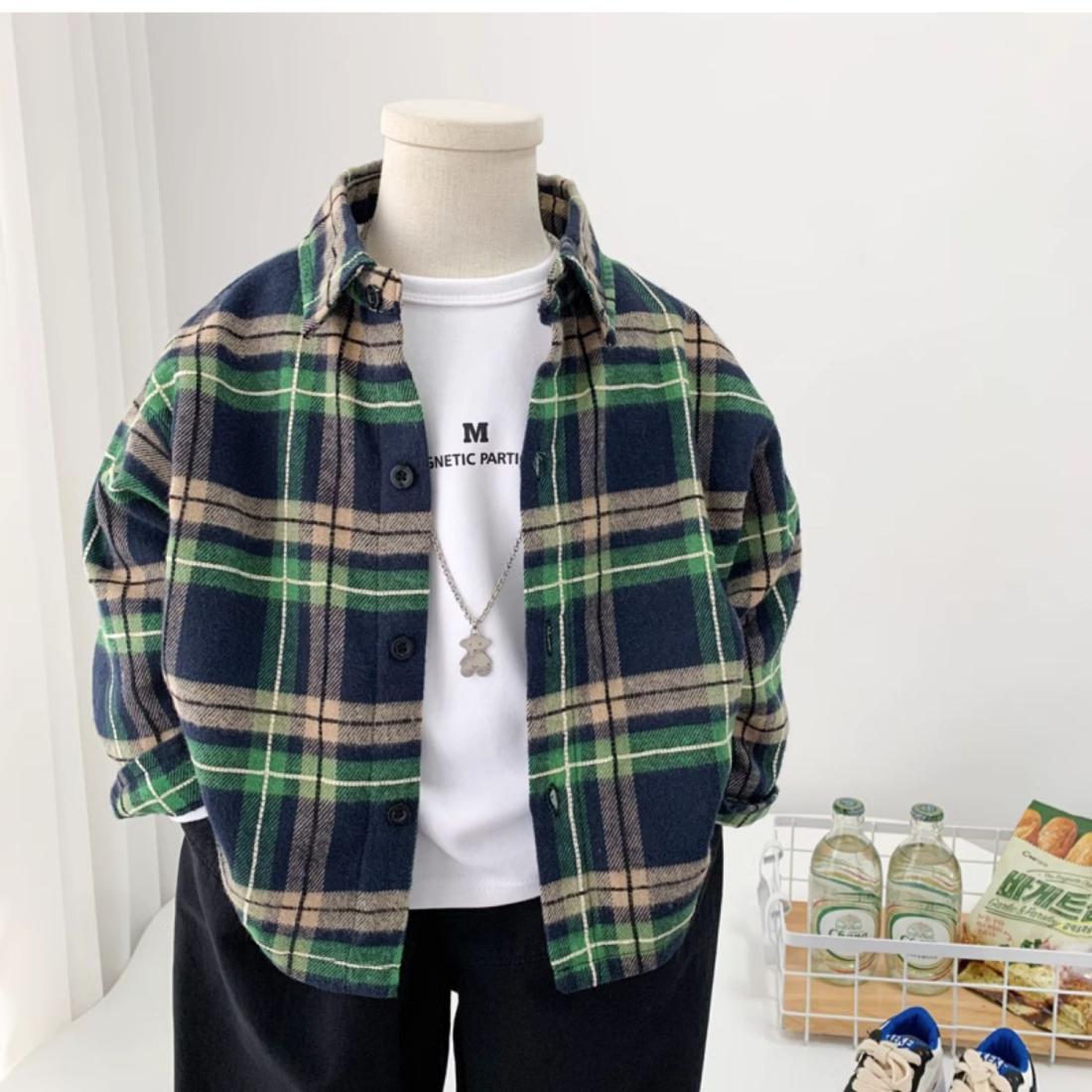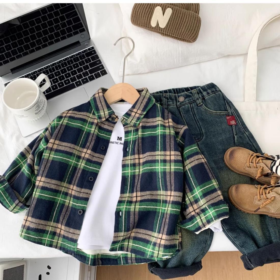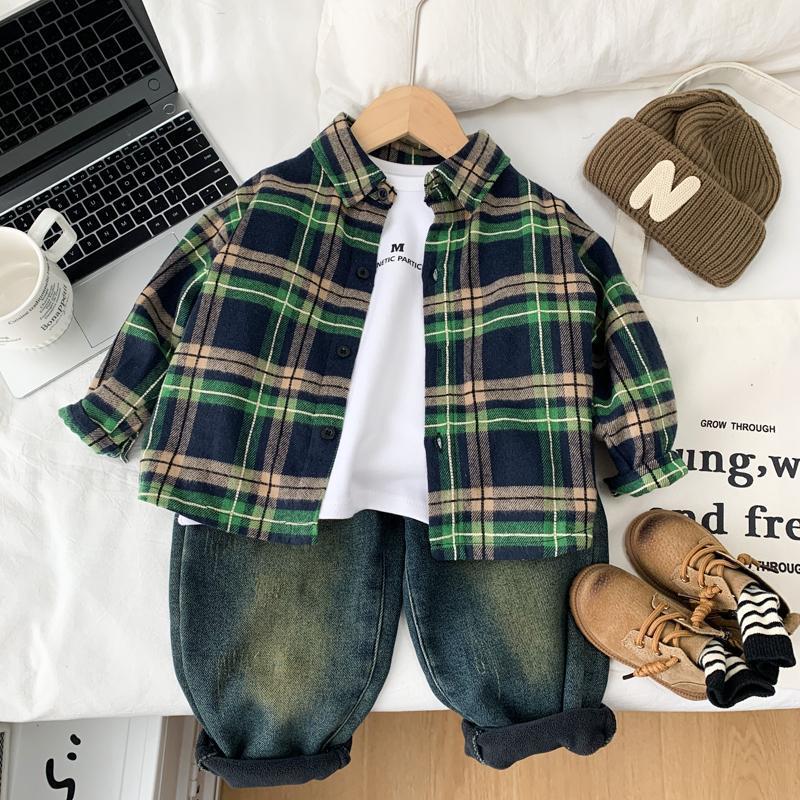 男童加绒衬衫秋冬装休闲新款儿童春秋洋气格子衬衣中小童帅气上衣