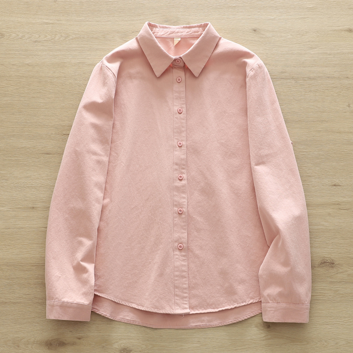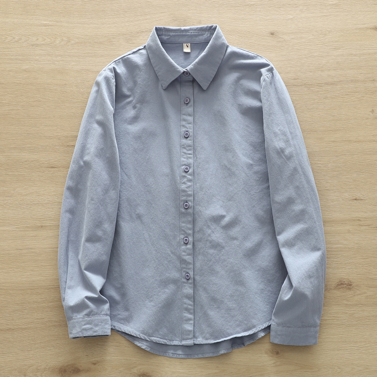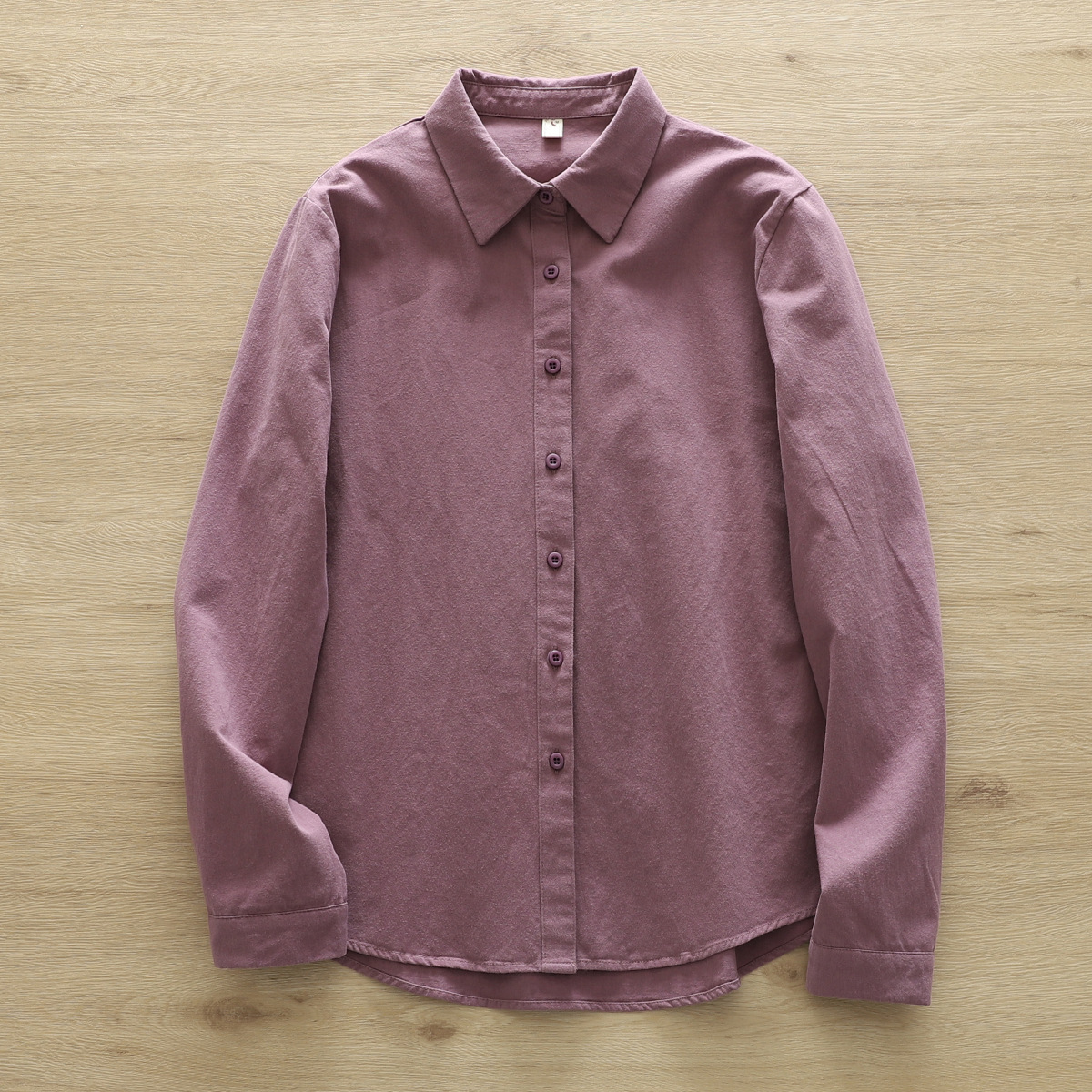 8828尖领秋冬厚款磨毛全棉衬衫女气质休闲百搭长袖衬衣春秋上衣