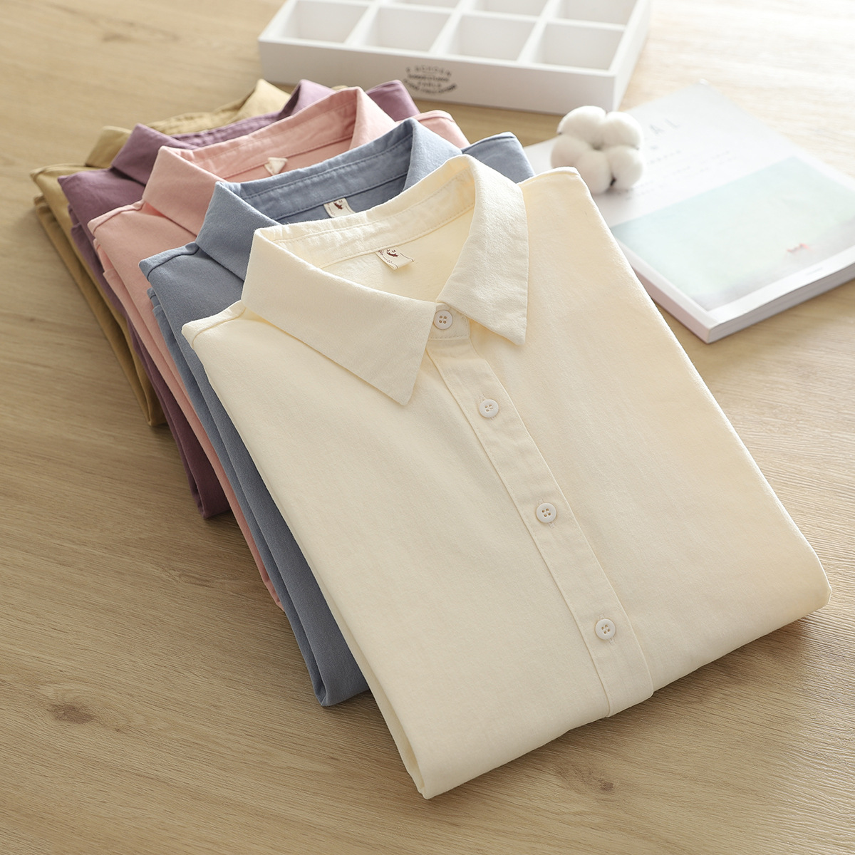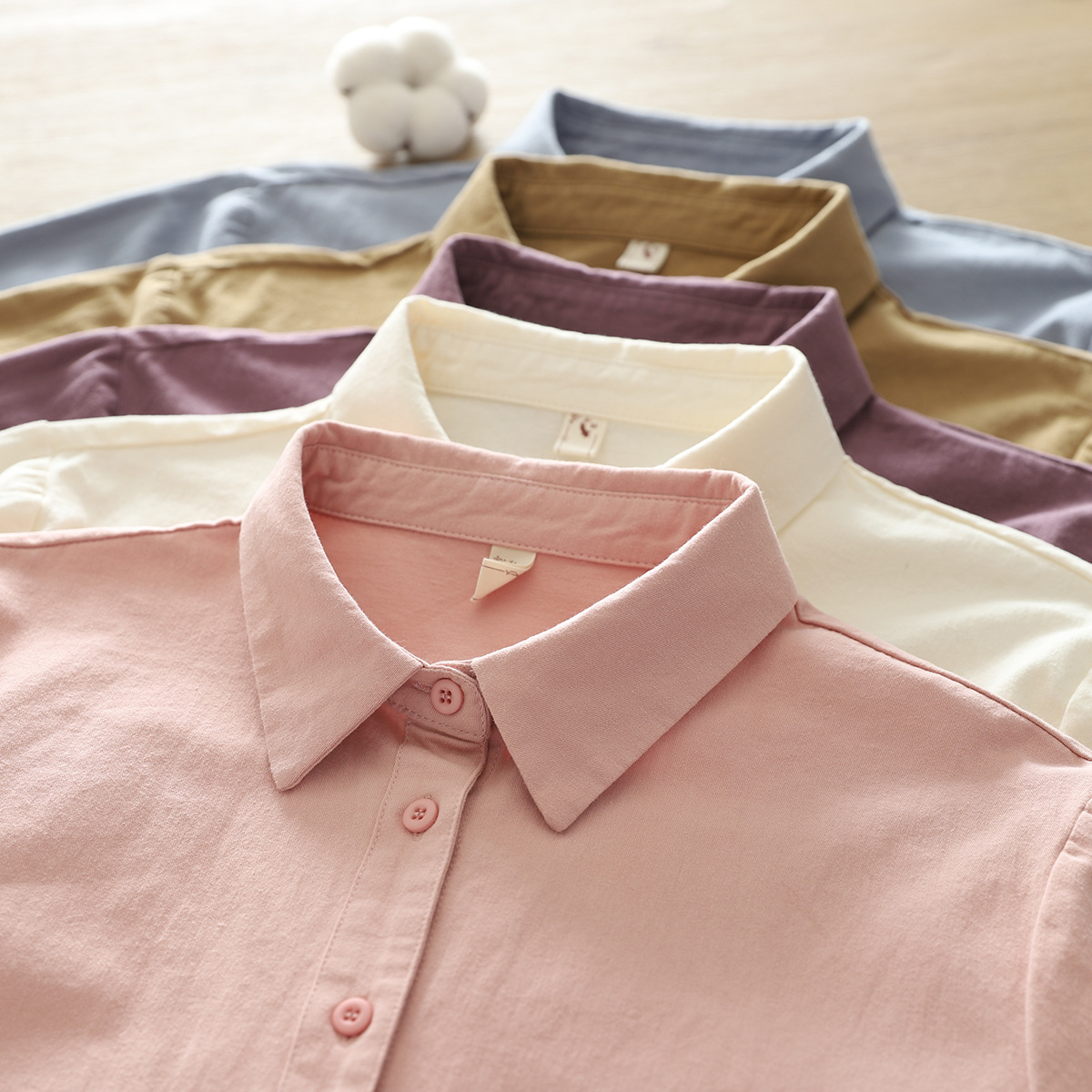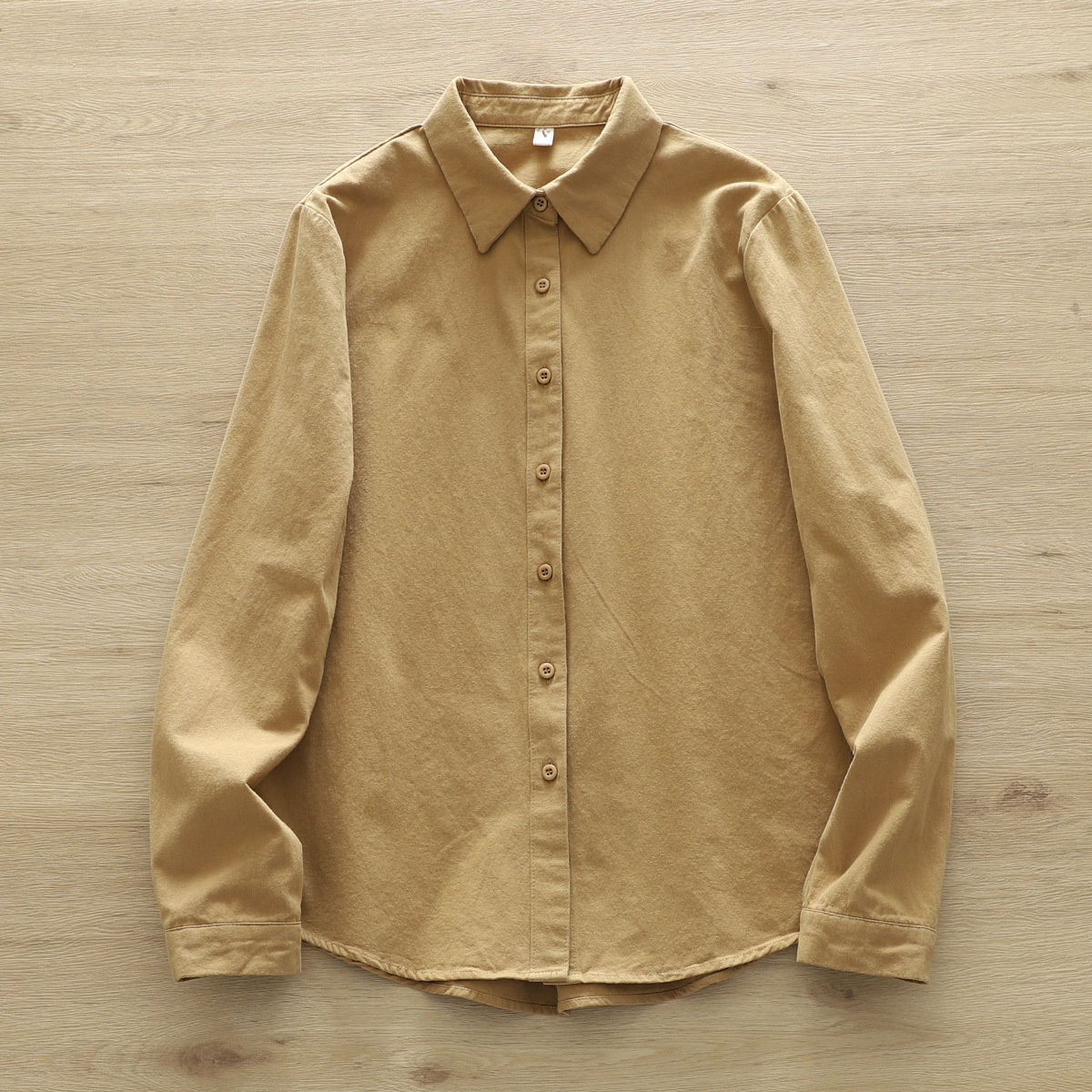8828尖领秋冬厚款磨毛全棉衬衫女气质休闲百搭长袖衬衣春秋上衣