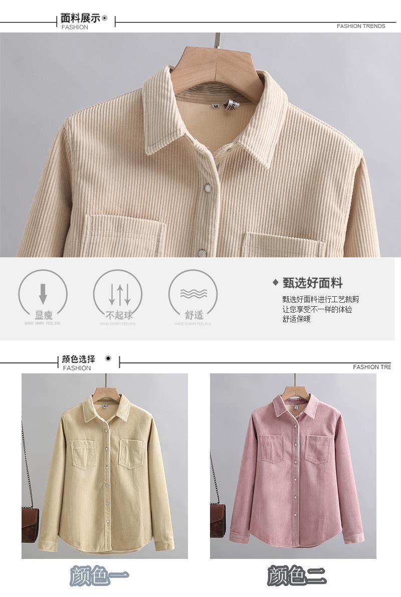 【现货】加绒加厚衬衫女灯芯绒修身保暖打底衫2025早春季新款衬衣