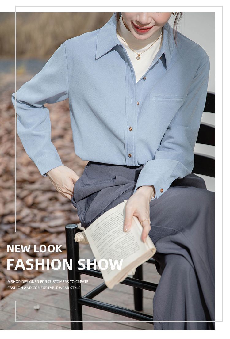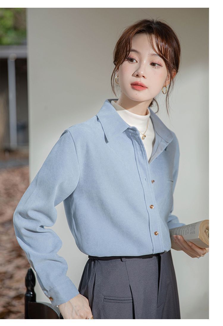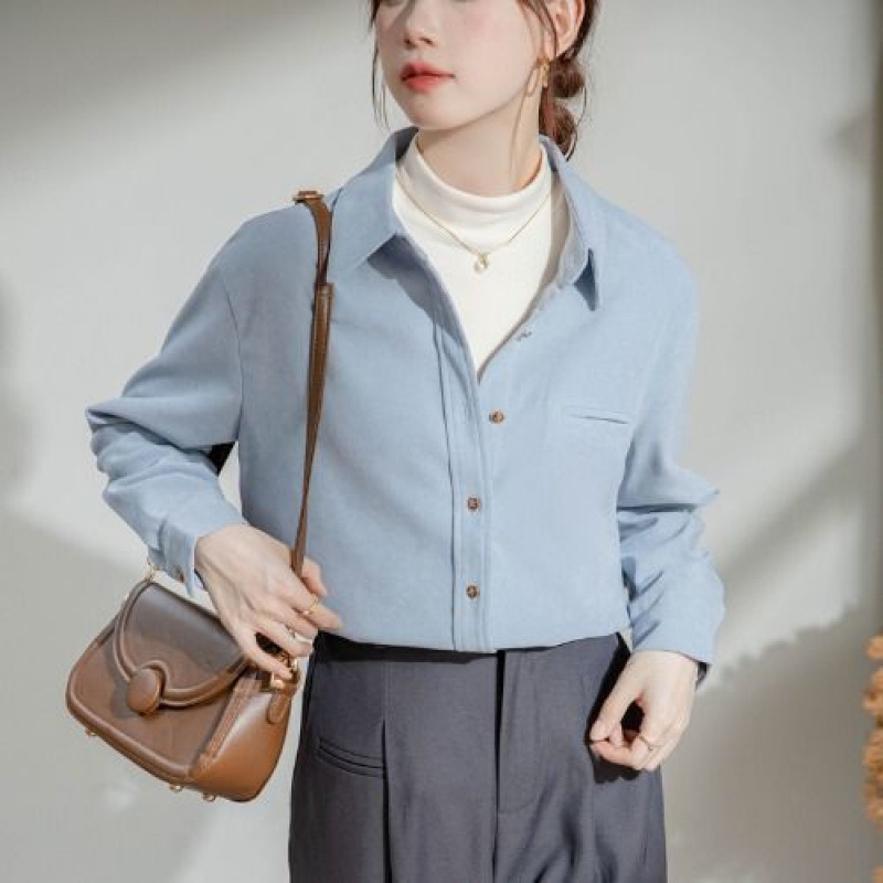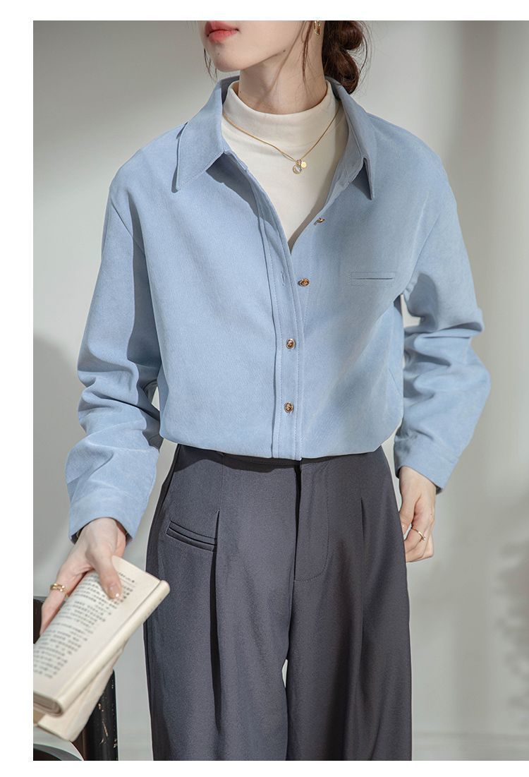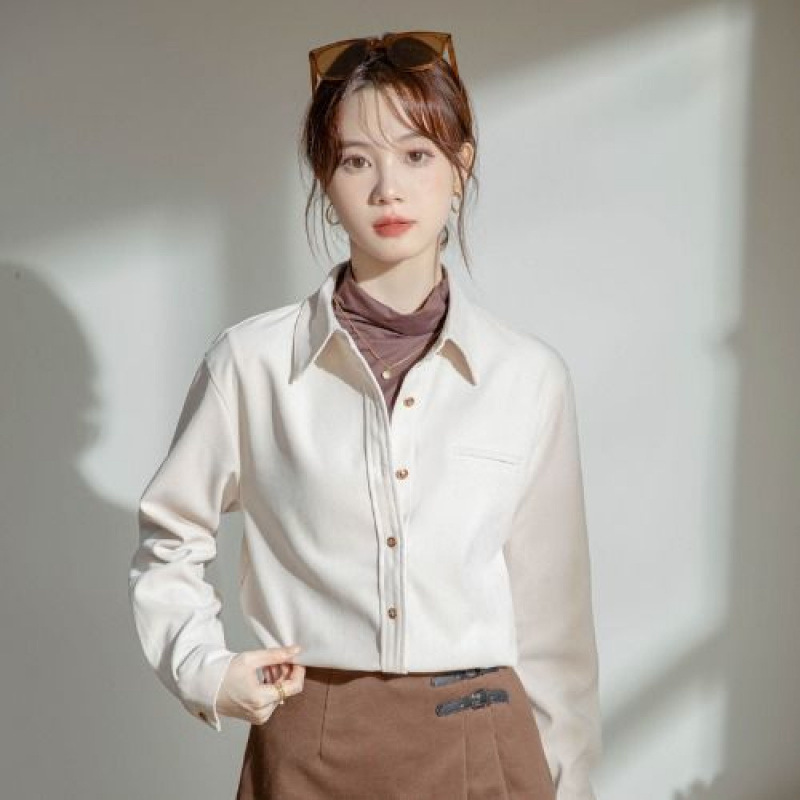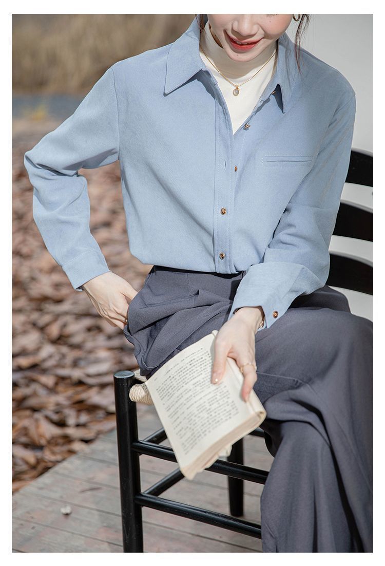 加厚磨毛衬衫女秋冬内搭职业通勤叠穿长袖上衣设计感小众衬衣外套