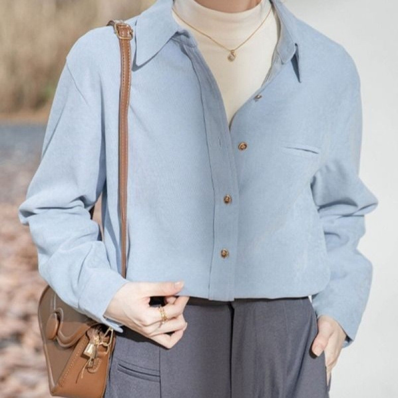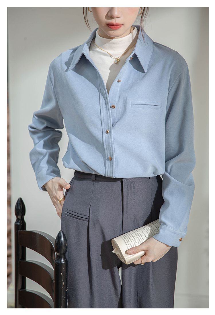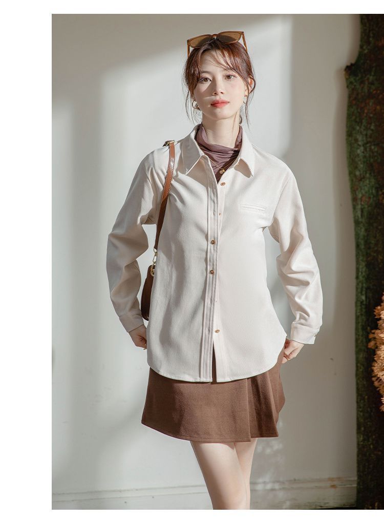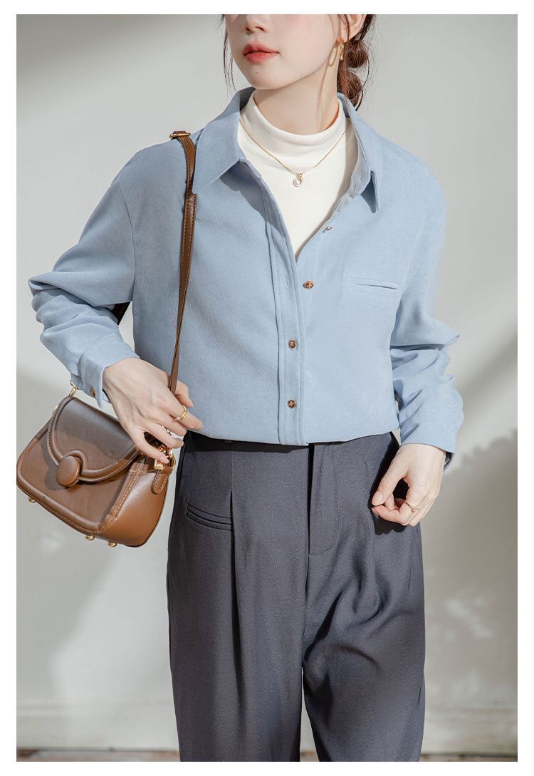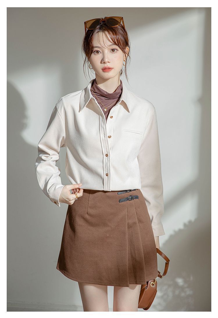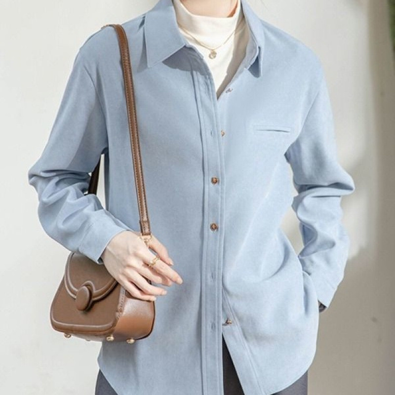 加厚磨毛衬衫女秋冬内搭职业通勤叠穿长袖上衣设计感小众衬衣外套