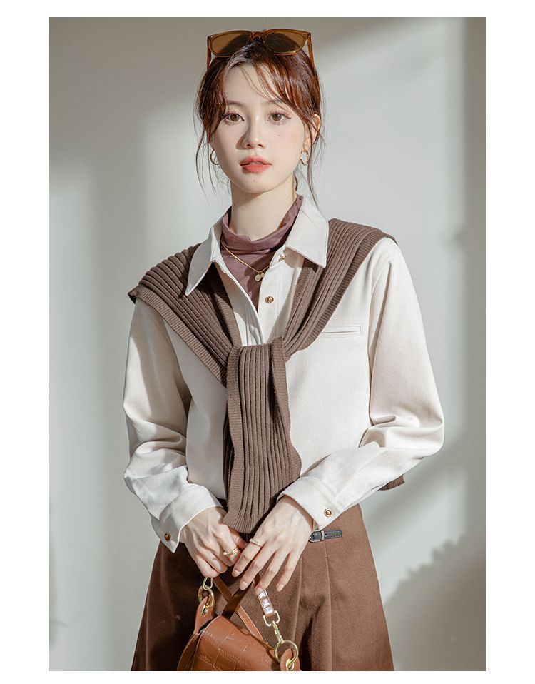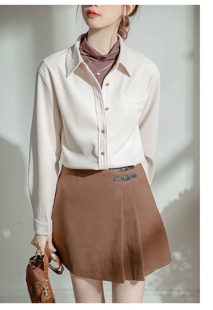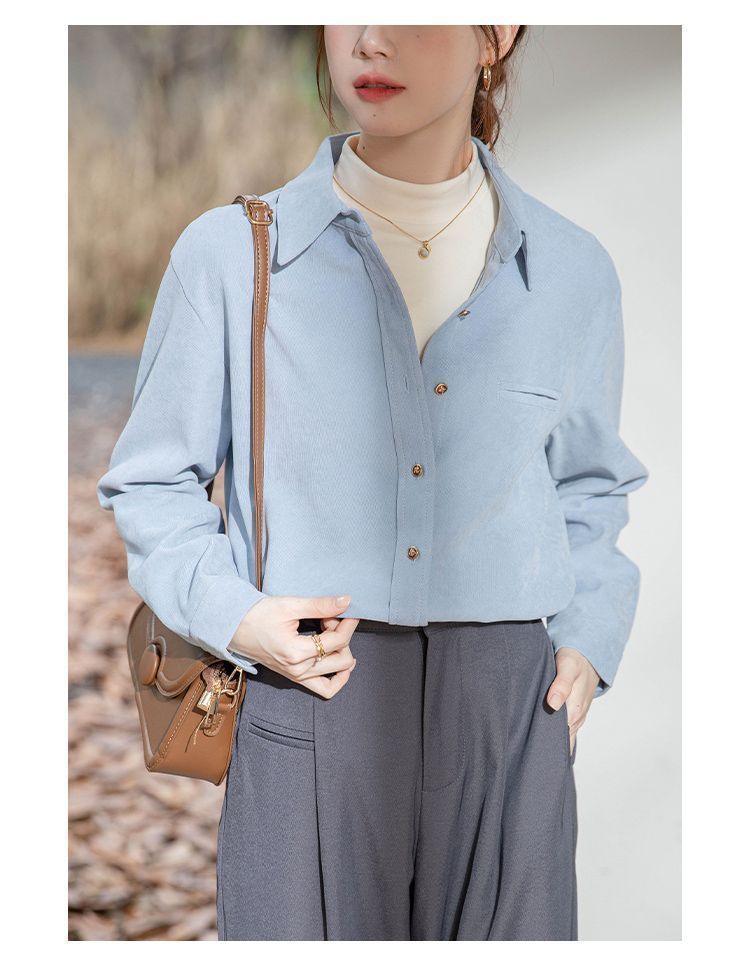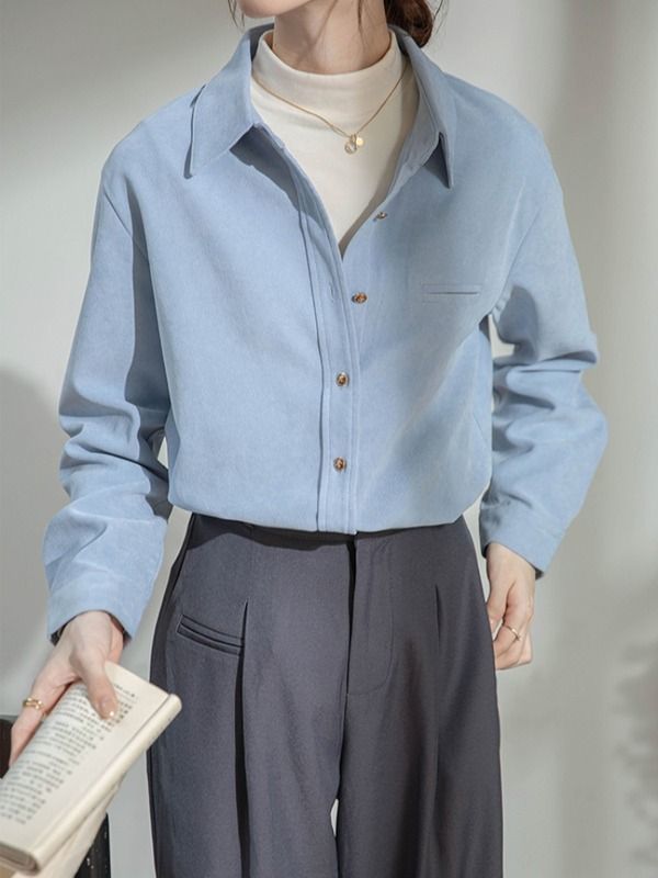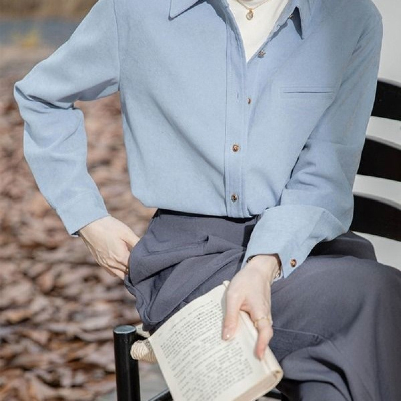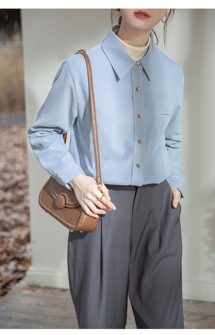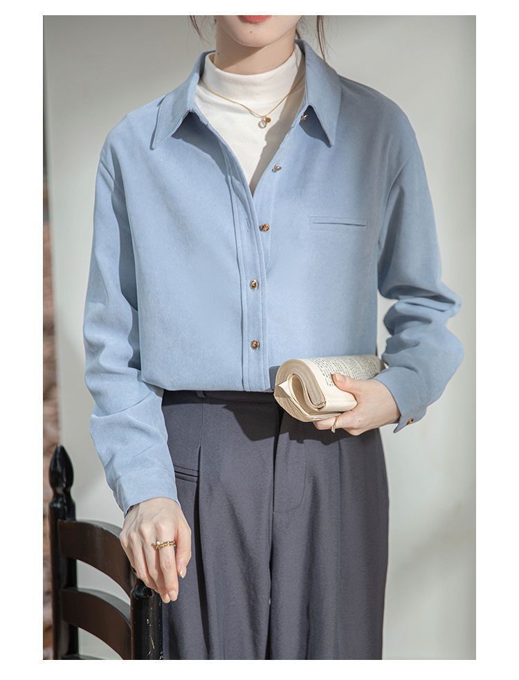加厚磨毛衬衫女秋冬内搭职业通勤叠穿长袖上衣设计感小众衬衣外套