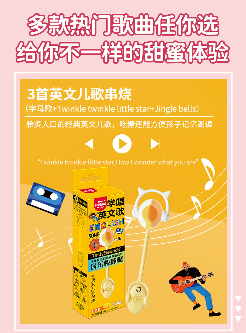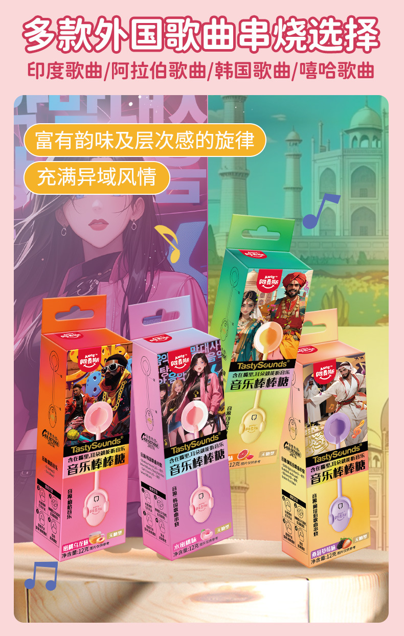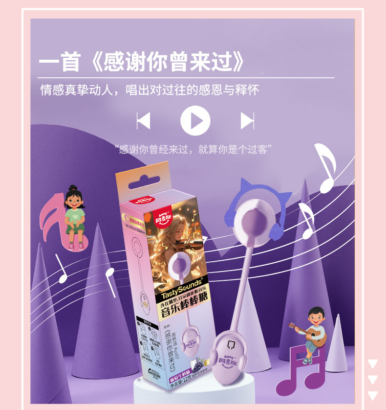 阿麦斯会唱歌音乐棒棒糖儿童零食糖果水果味喜糖礼品音芙商超同款