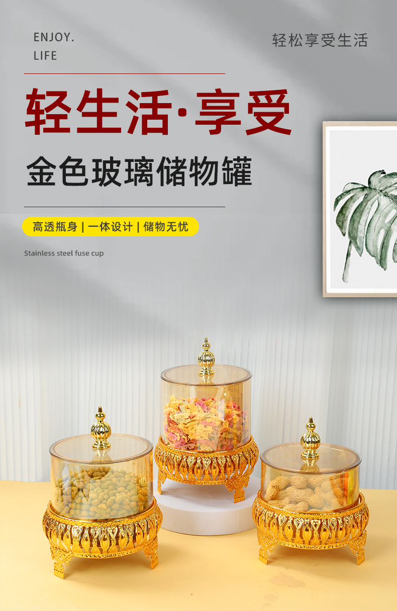 储物罐轻奢金色玻璃罐家用客厅装饰零食收纳罐活动开业礼品随手礼