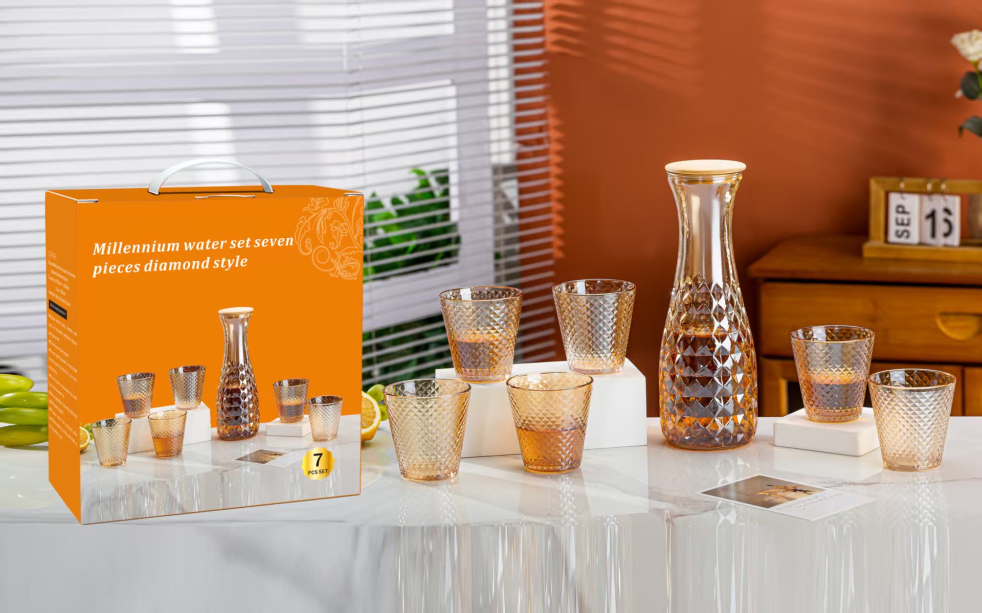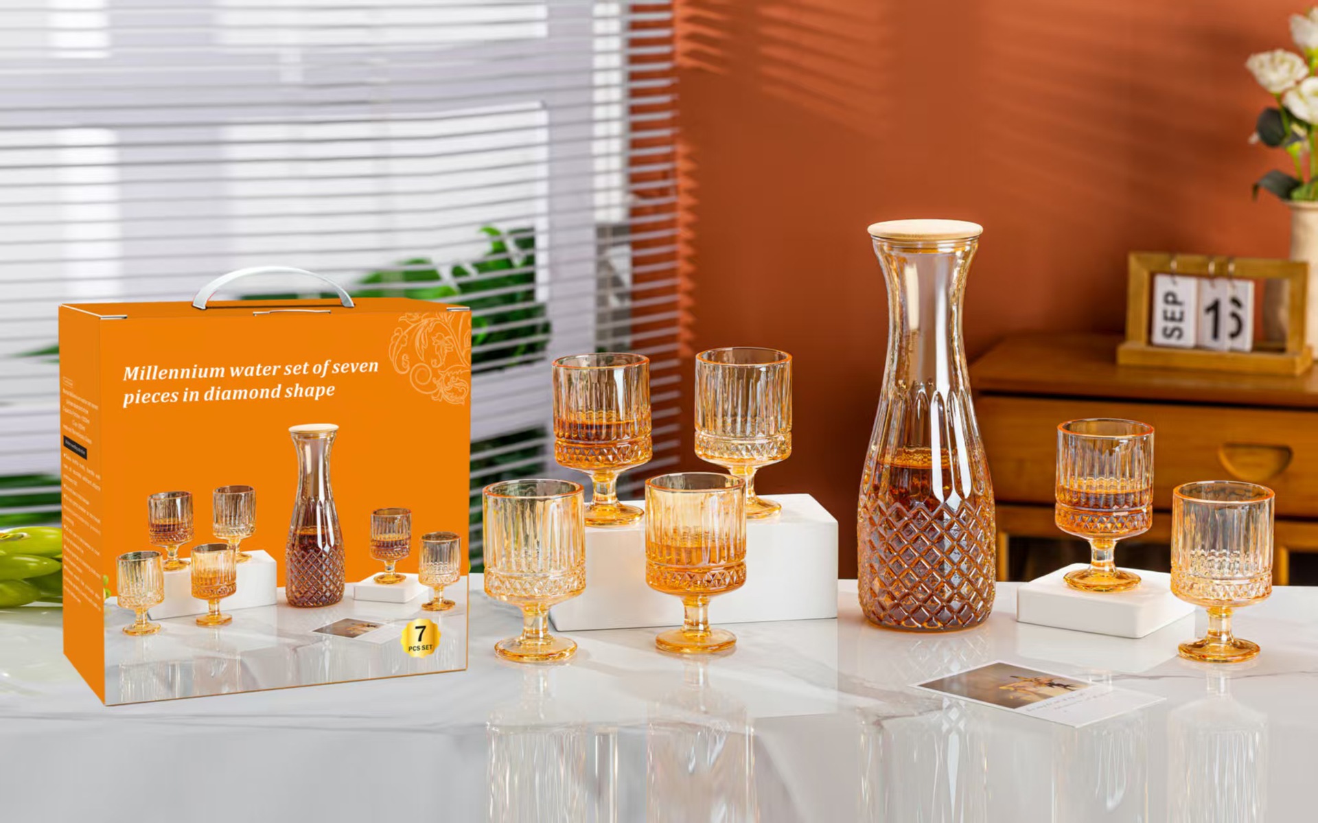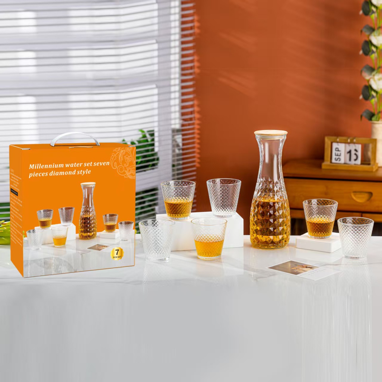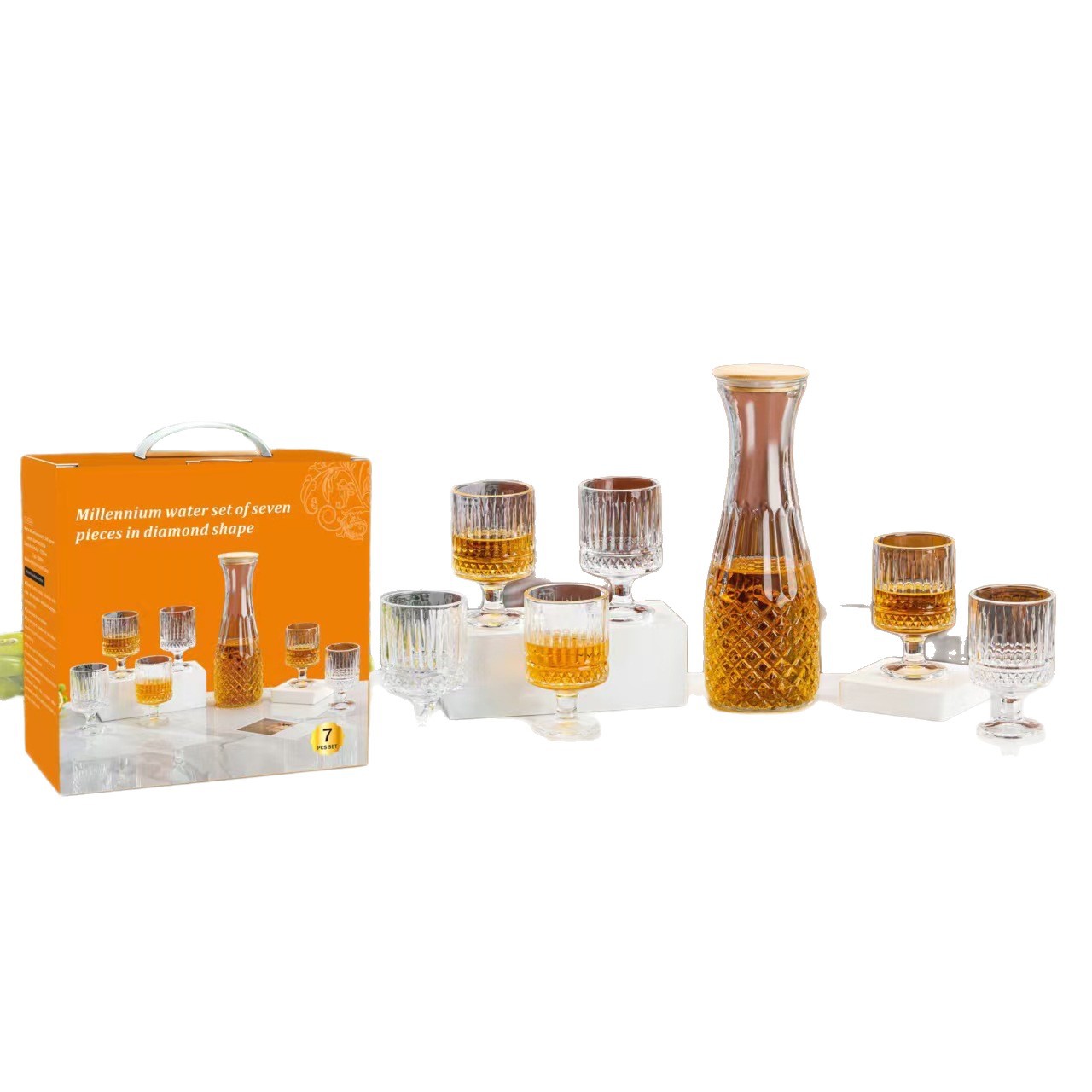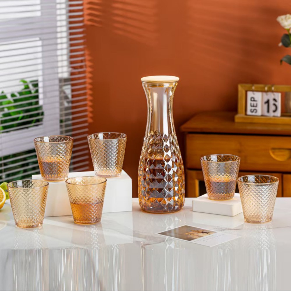 欧式轻奢千禧玻璃水具七件套家用客厅水杯套装活动开业礼品随手礼