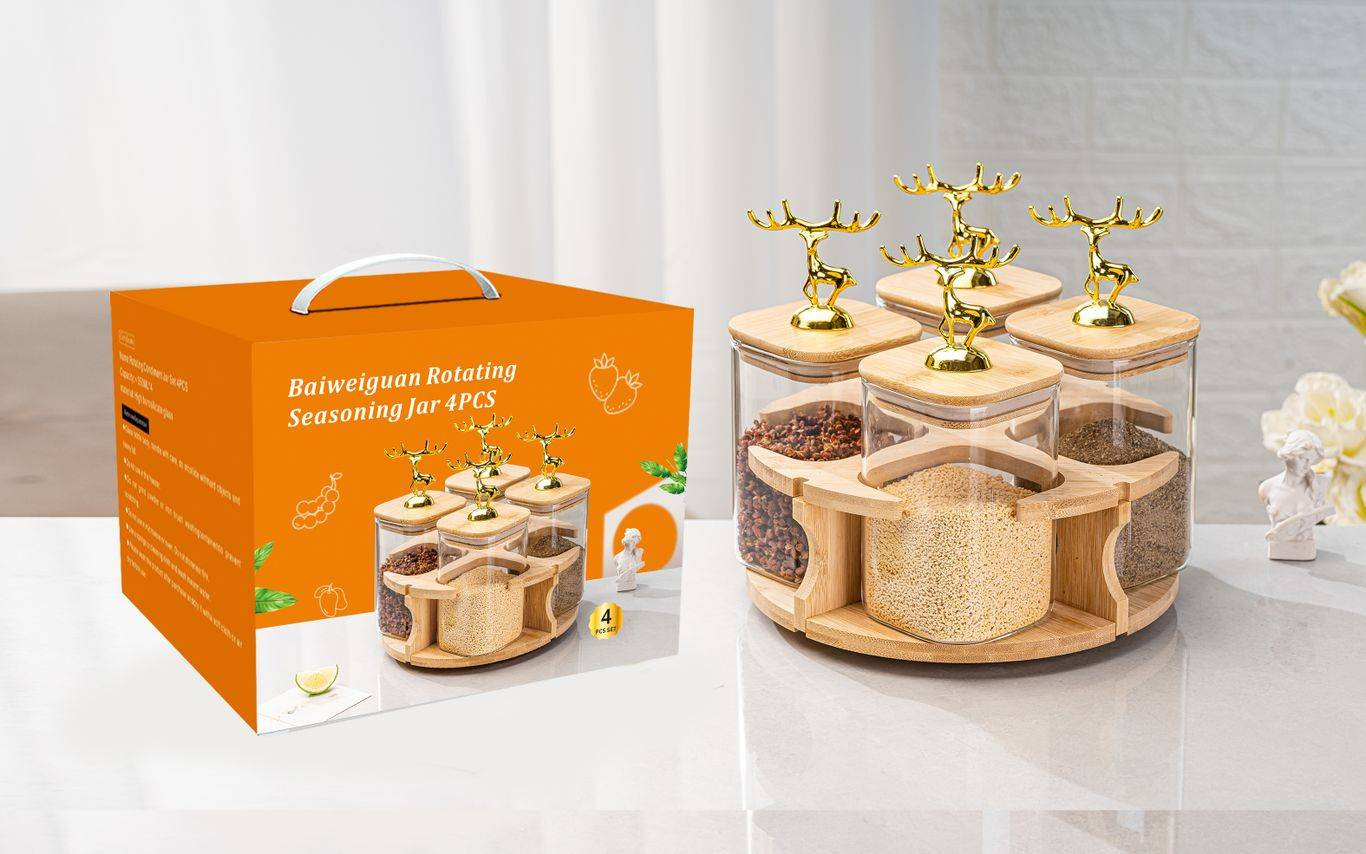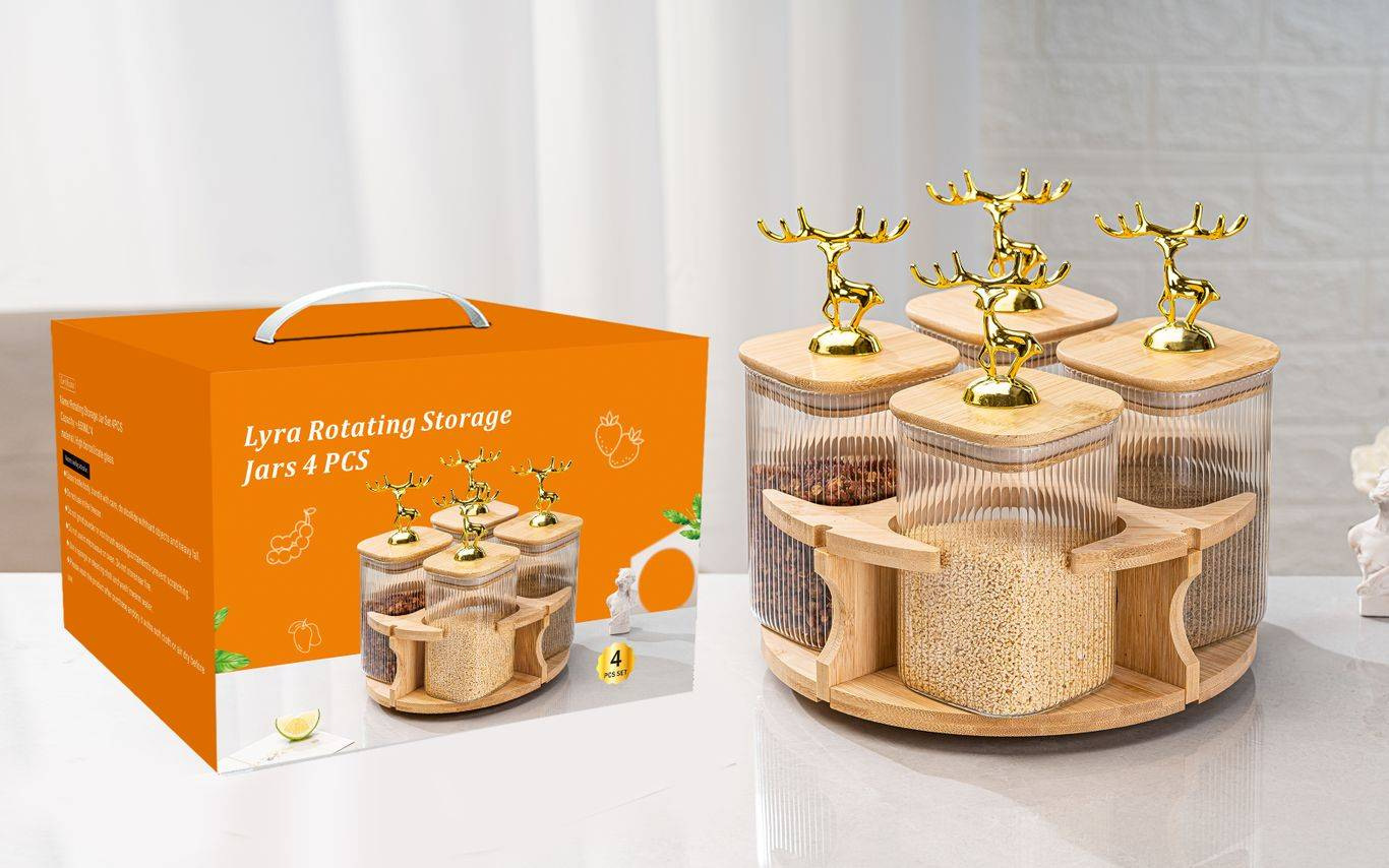 储物罐高硼硅莱拉旋转玻璃储物罐家用五谷杂粮密封罐活动开业礼品