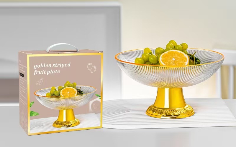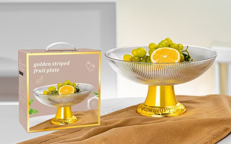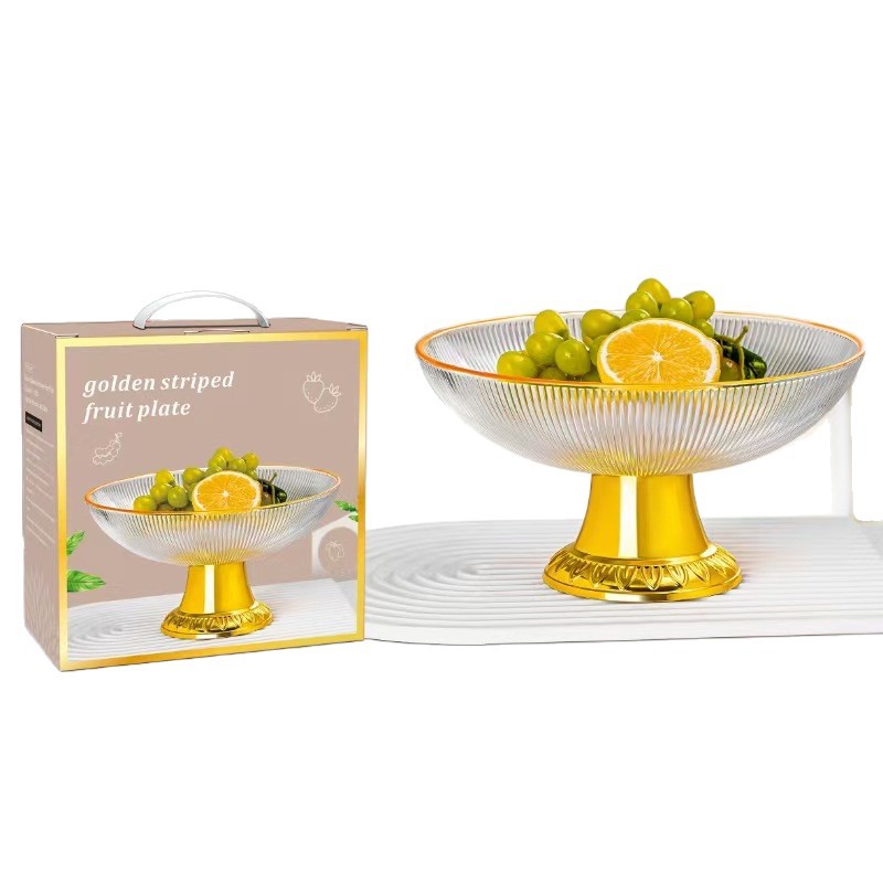新款轻奢高脚条纹水果盘家用玻璃果盘零食客厅茶几糖果盘活动礼品