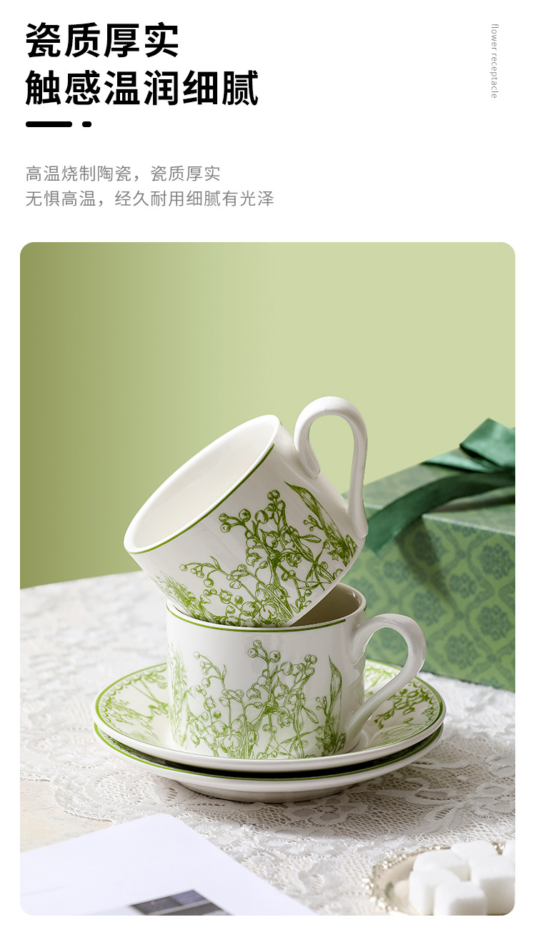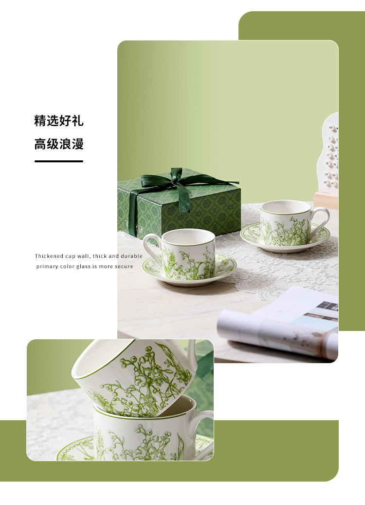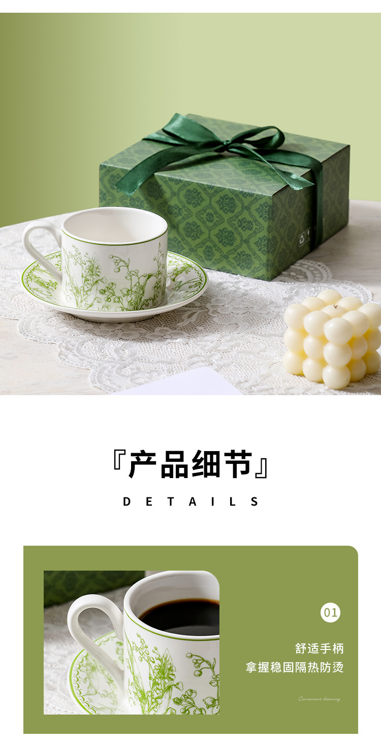 铃兰花咖啡杯碟礼盒马克杯礼物高颜值水杯套装开业活动伴手礼