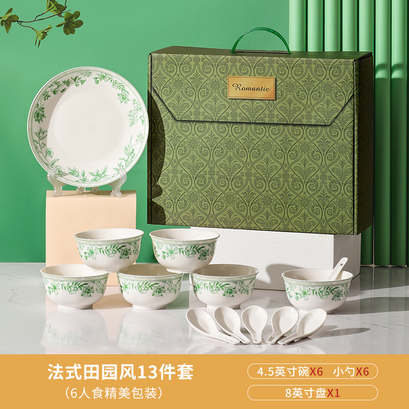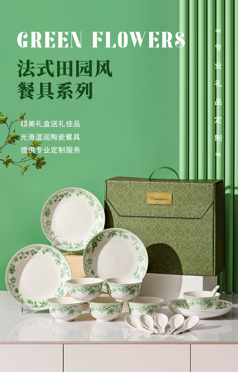 法式田园风陶瓷餐具套装礼品碗盘碟礼盒装开业活动礼品赠送伴手礼