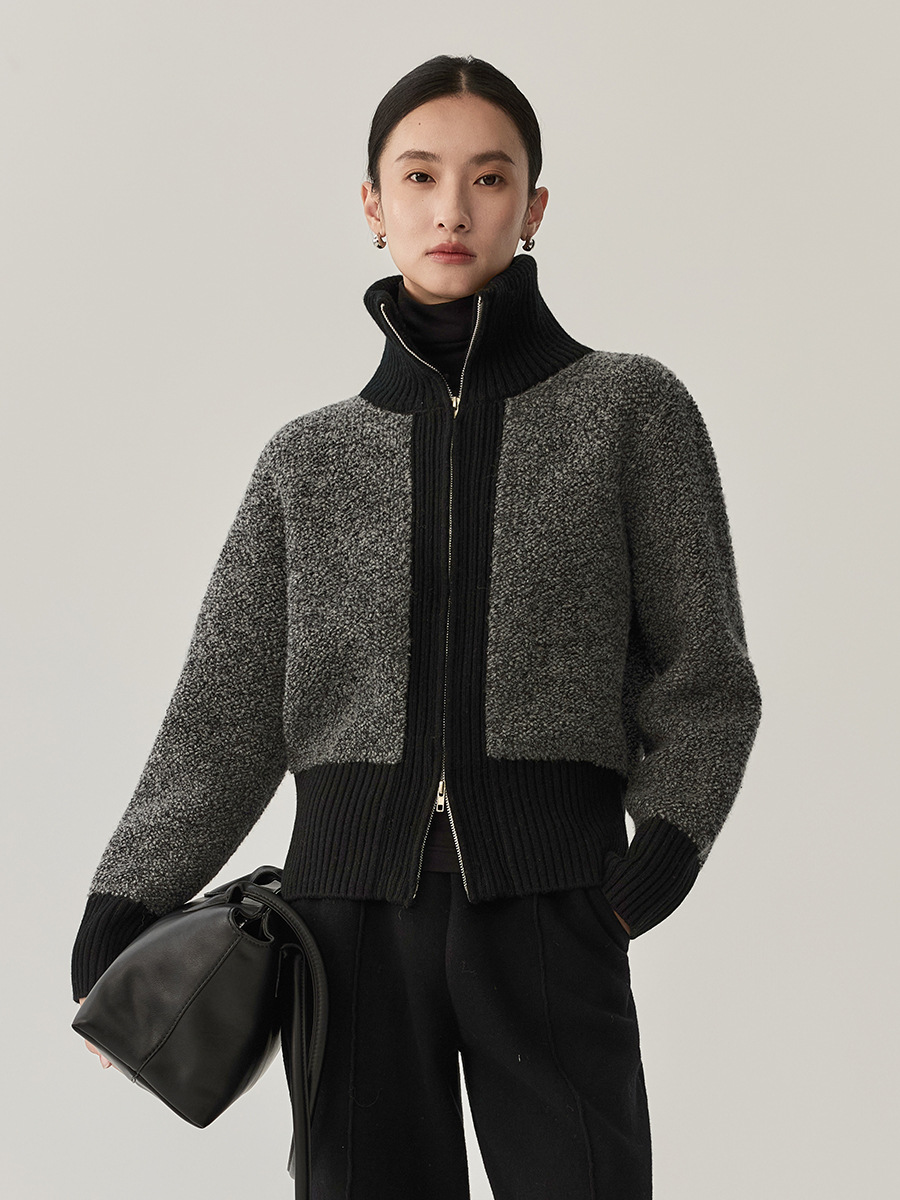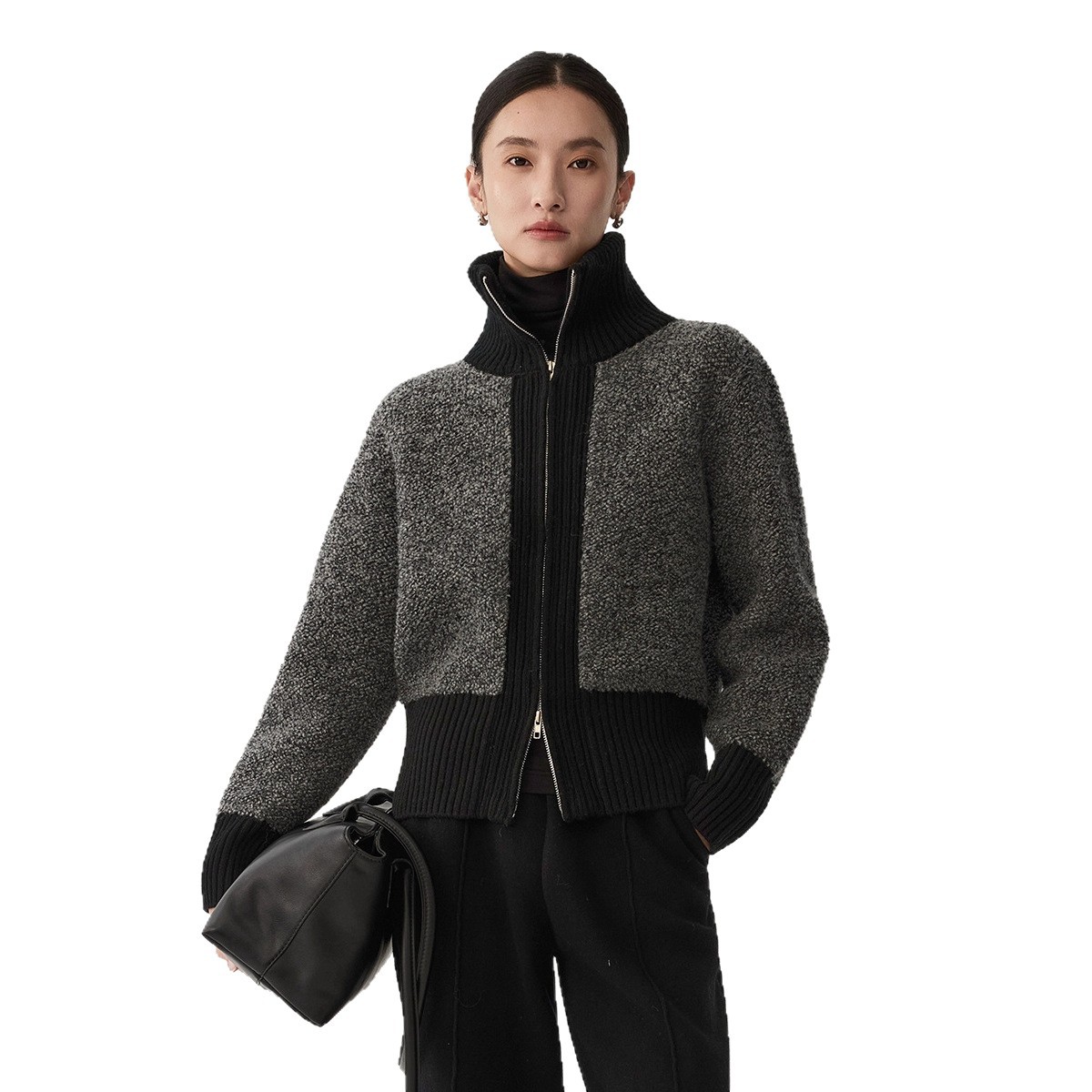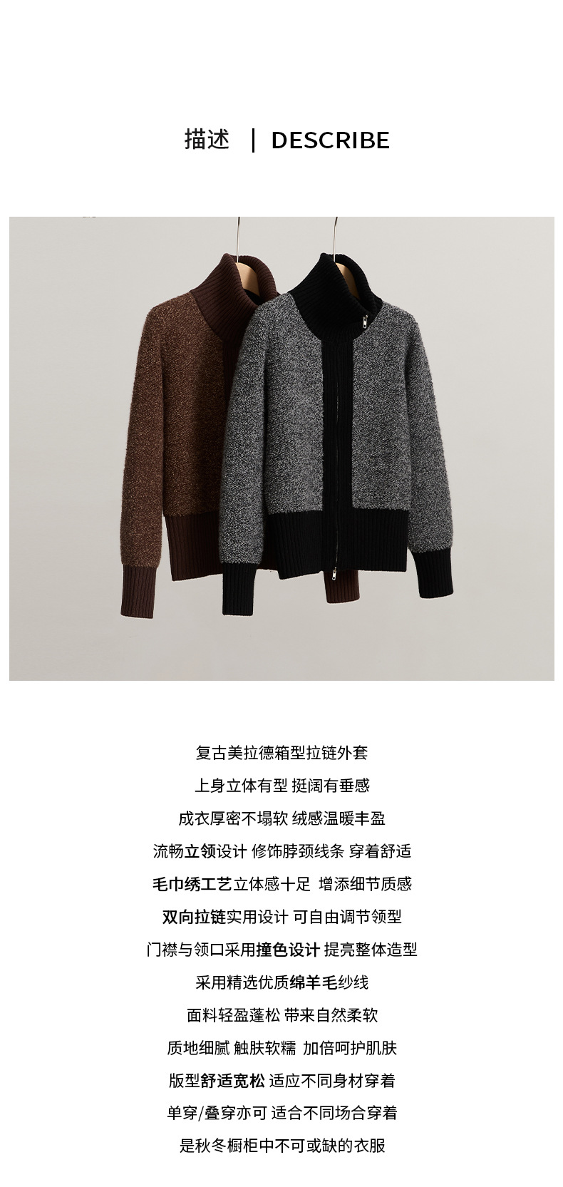 秋季新款针织衫女保暖绵羊毛通勤外套高级优雅气质毛巾绣女装上衣