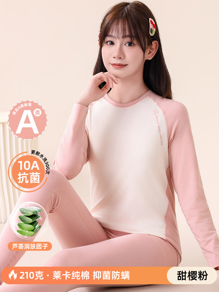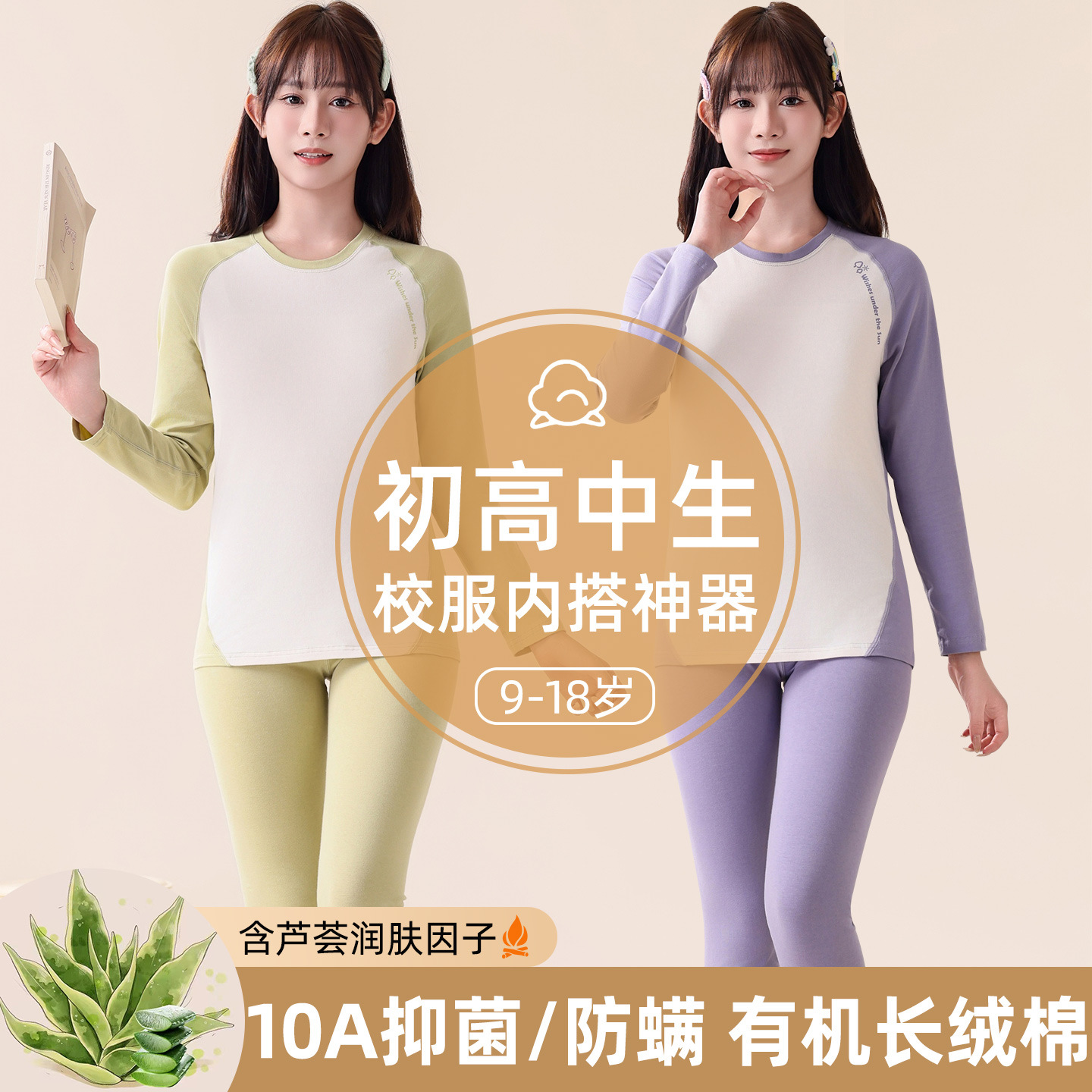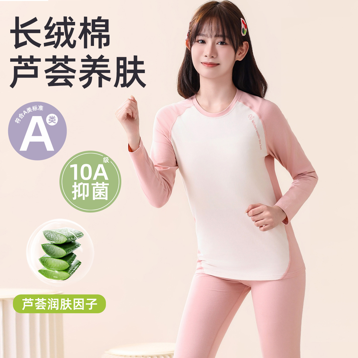 青少年纯棉秋衣秋裤套装女士内衣初中高中学生保暖棉毛衫薄款