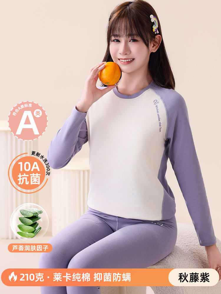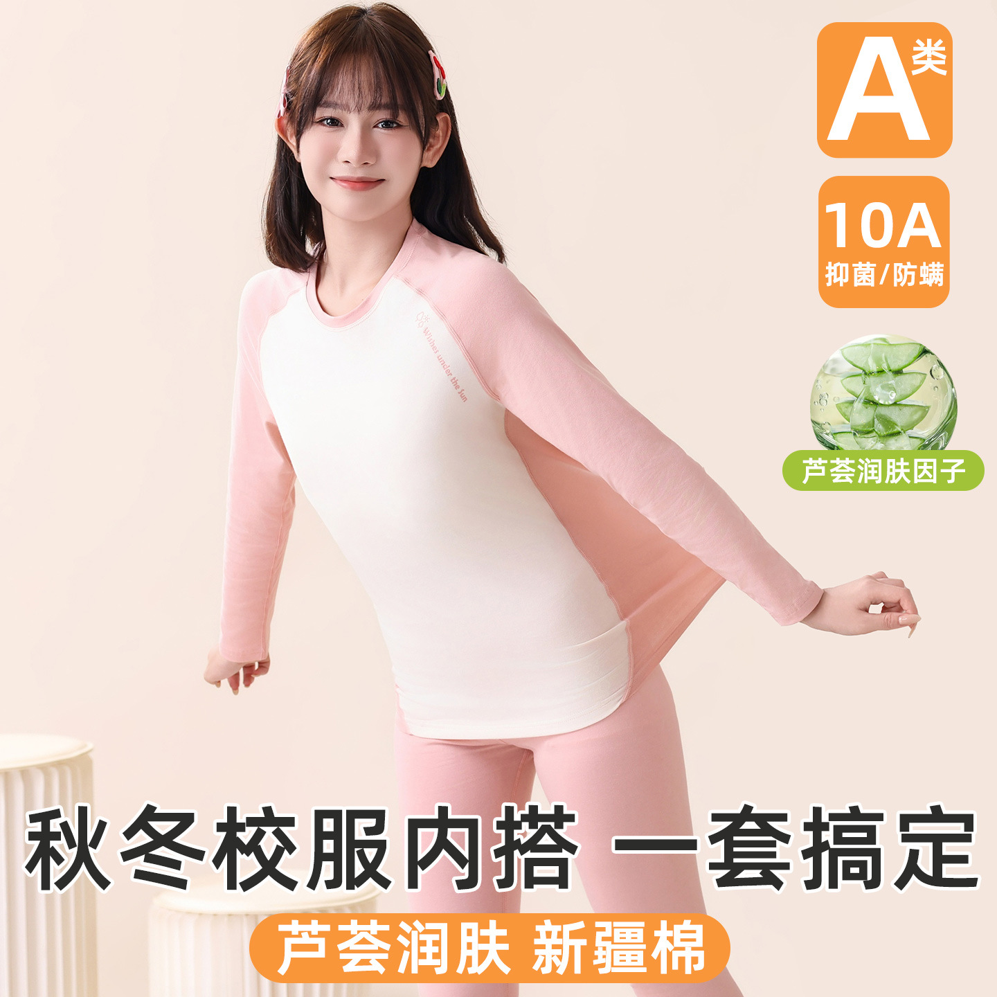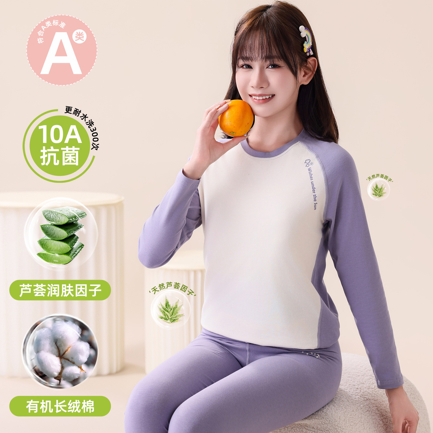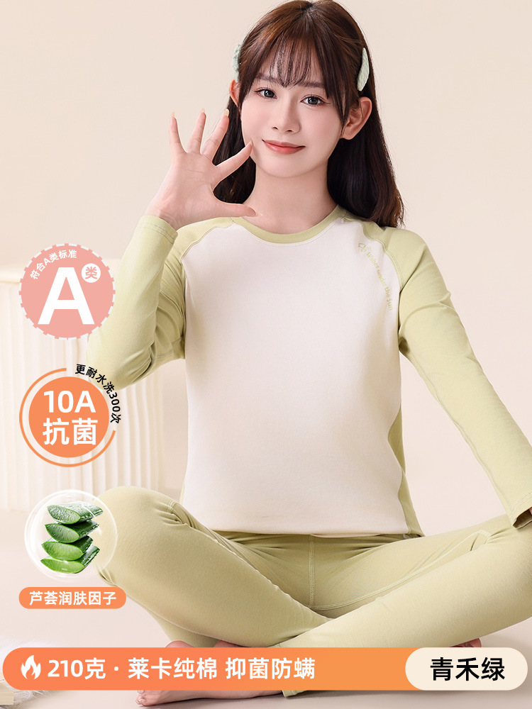 青少年纯棉秋衣秋裤套装女士内衣初中高中学生保暖棉毛衫薄款