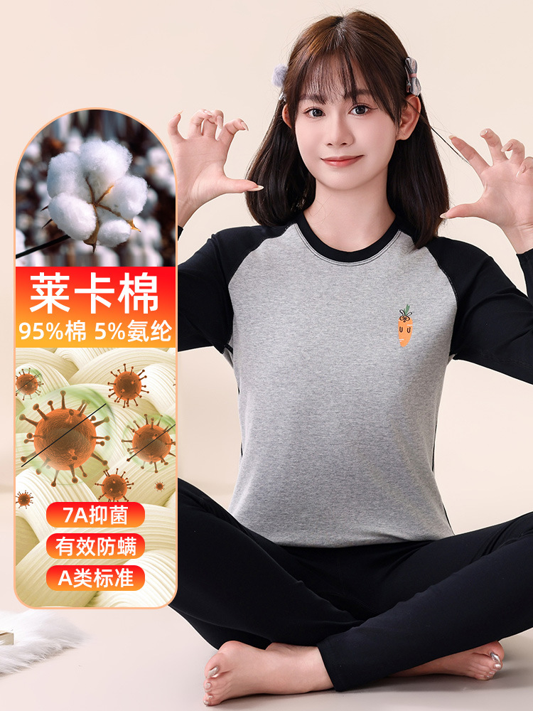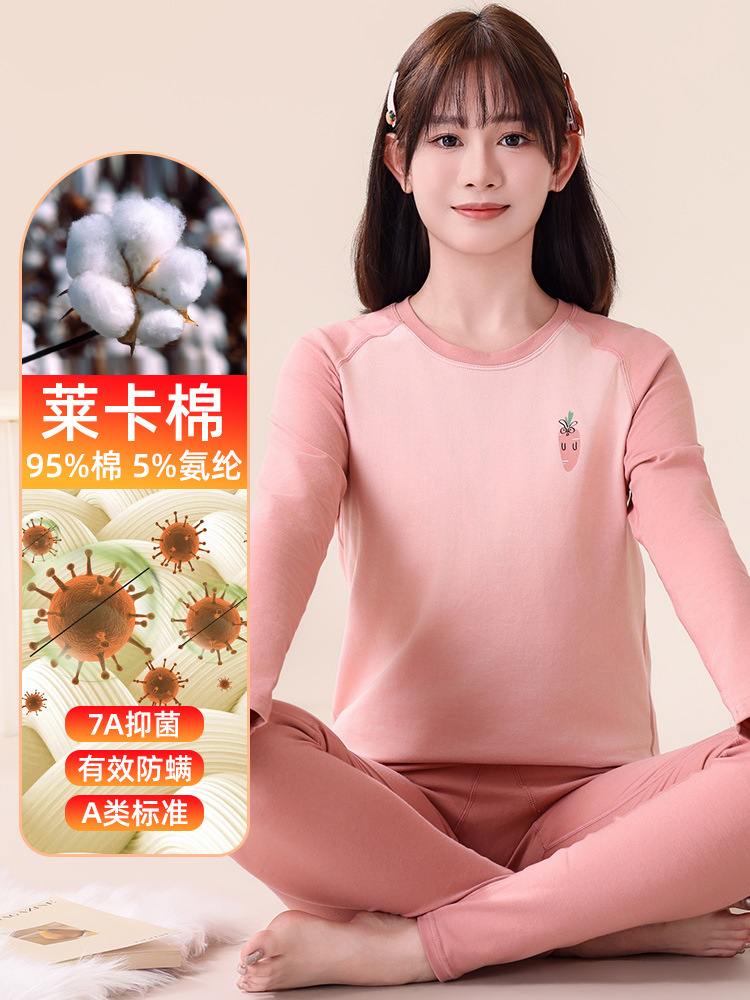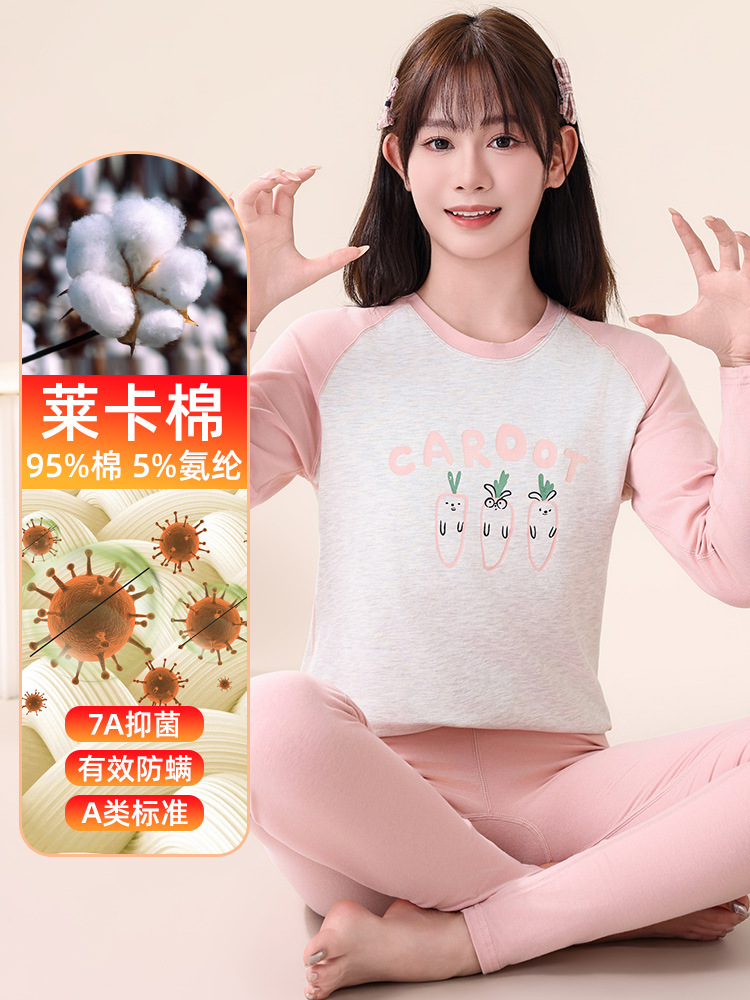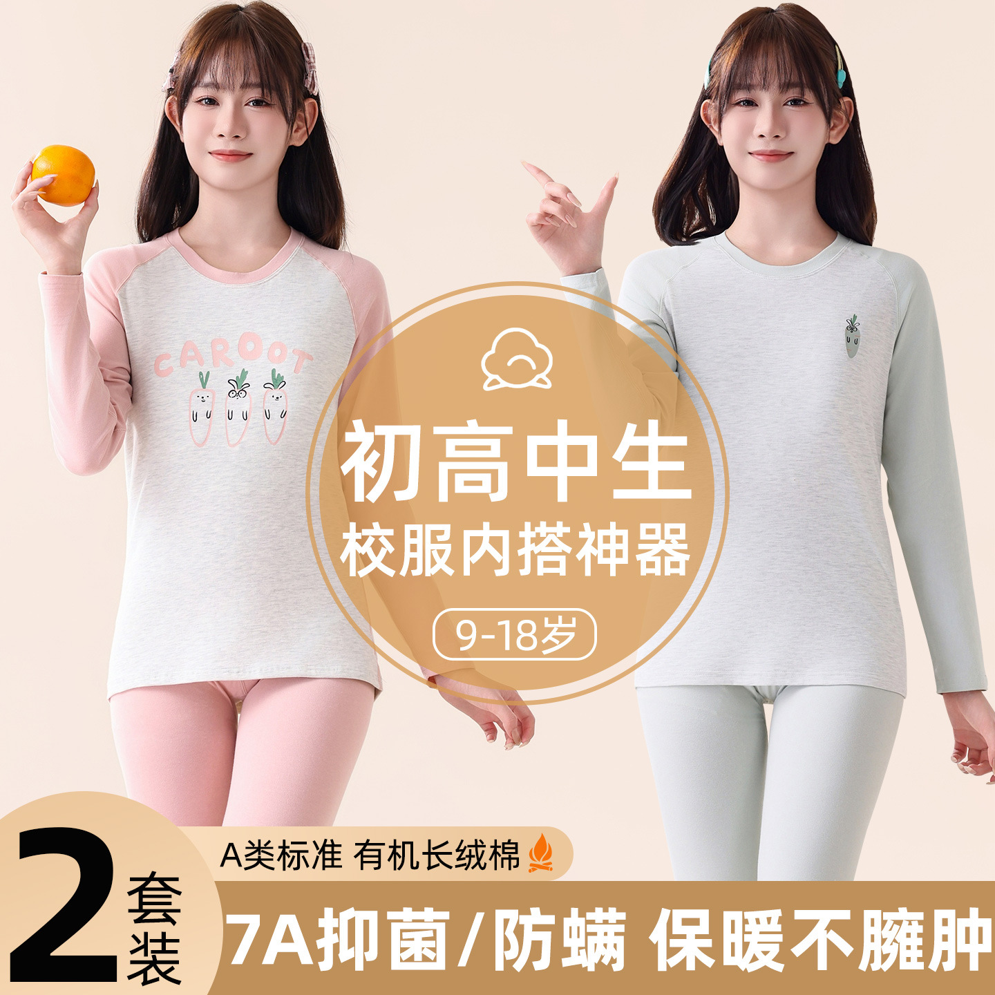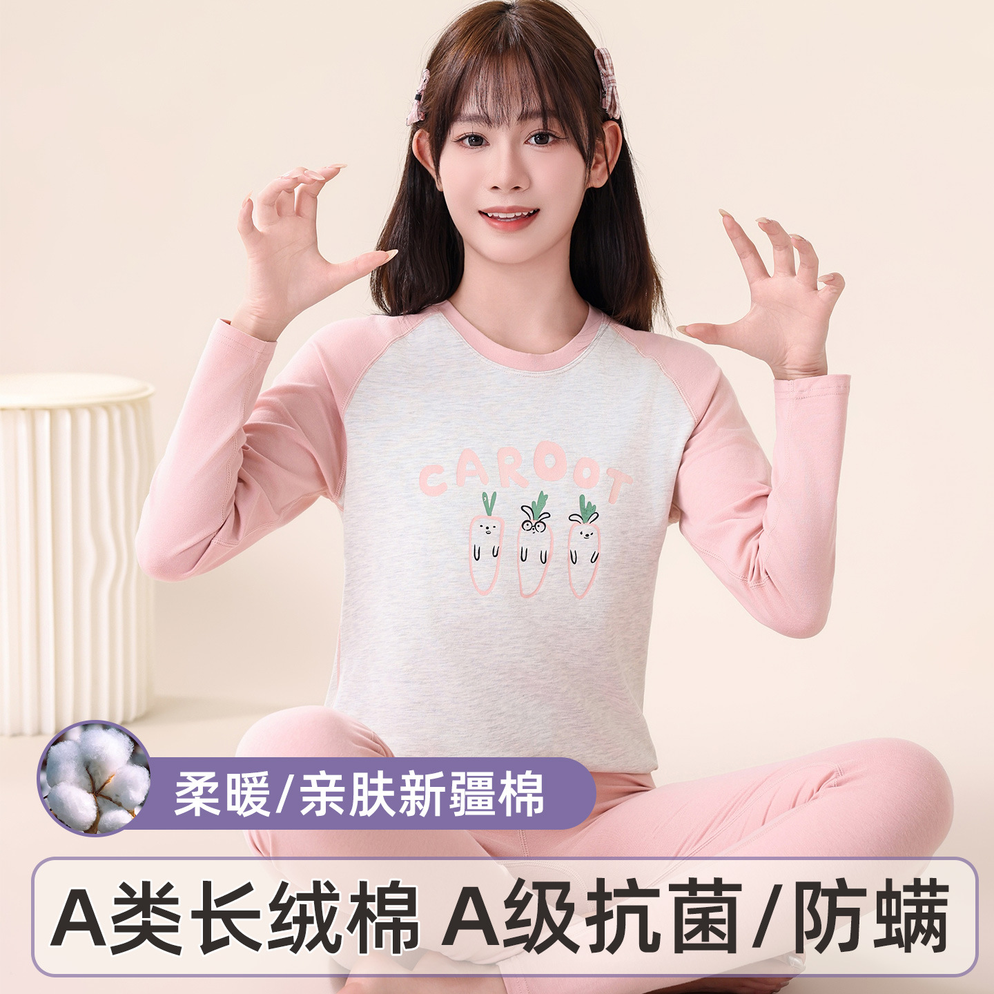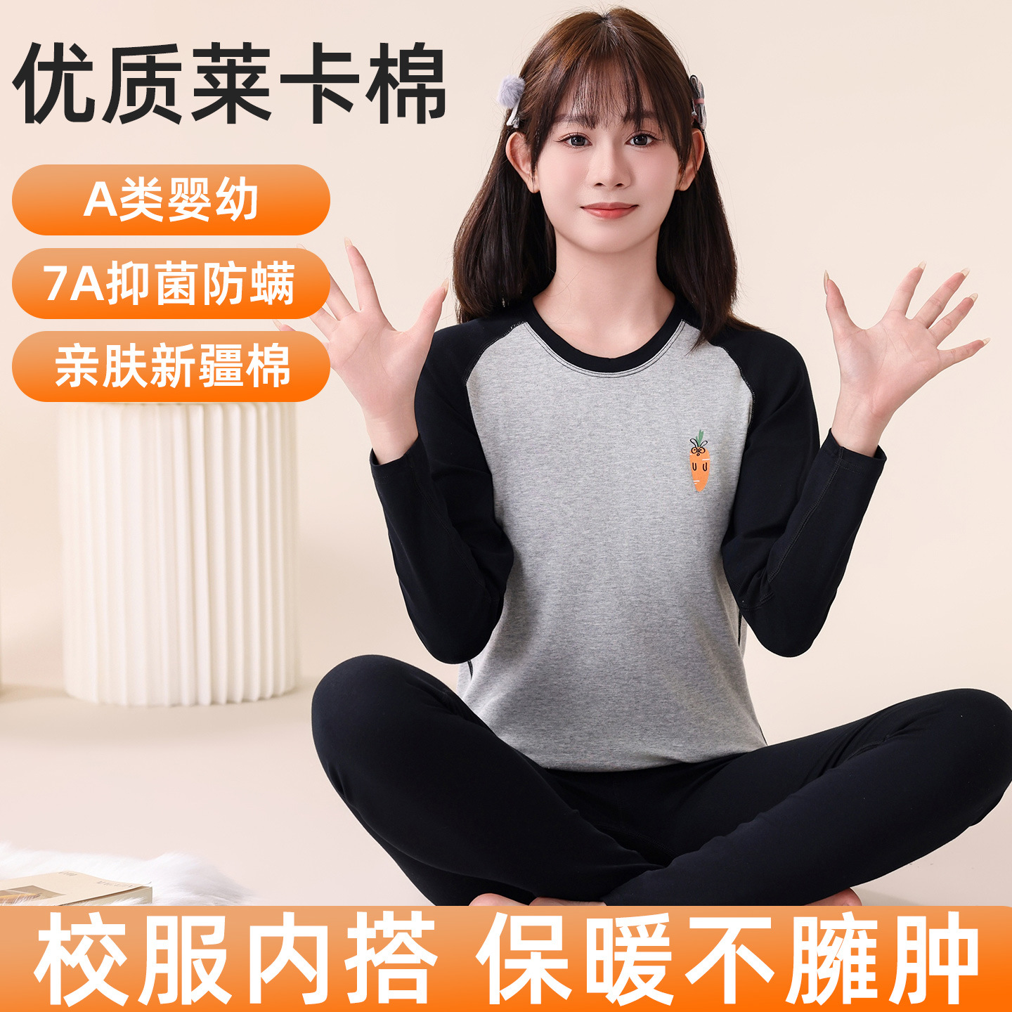 少女秋衣秋裤纯棉保暖内衣套装女初中高中生棉毛衫中大童防螨