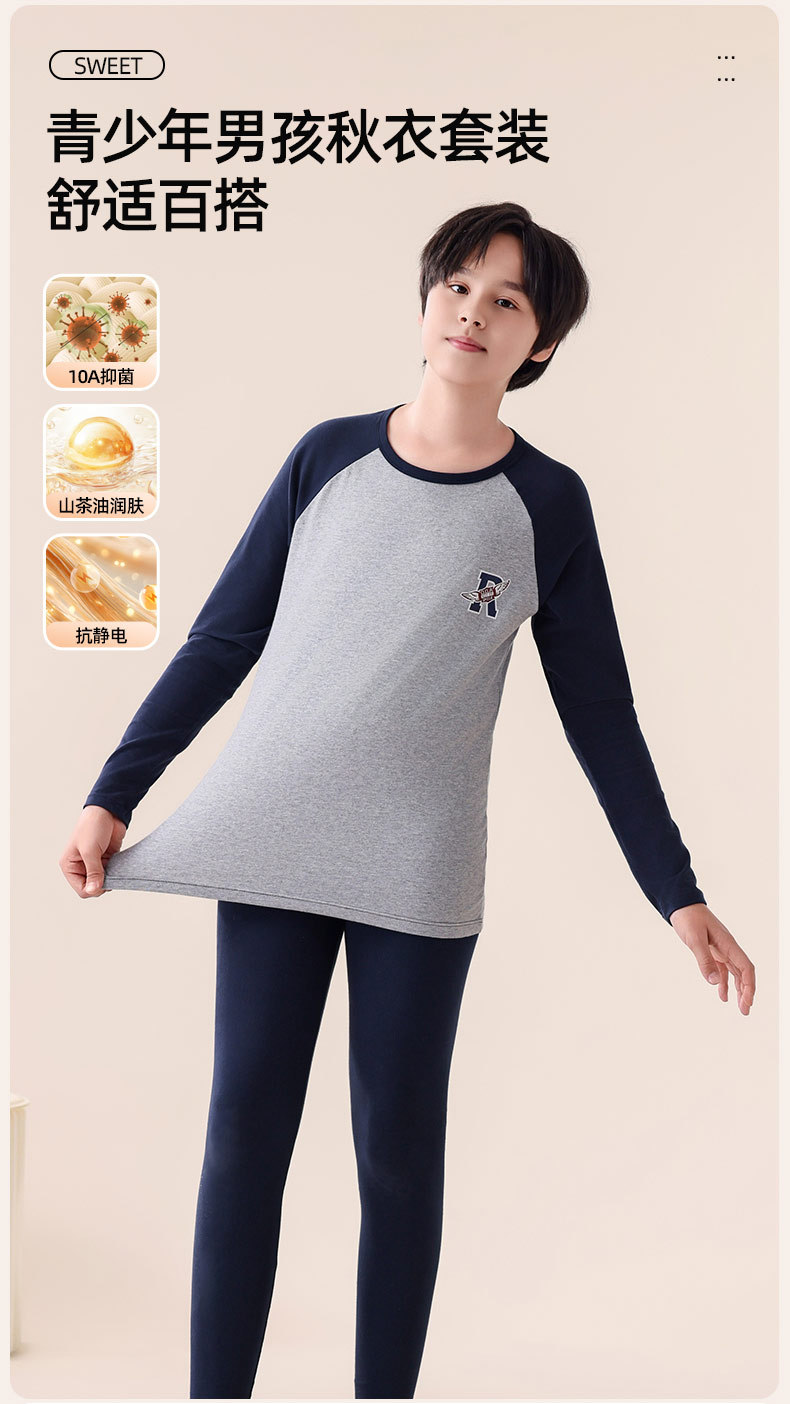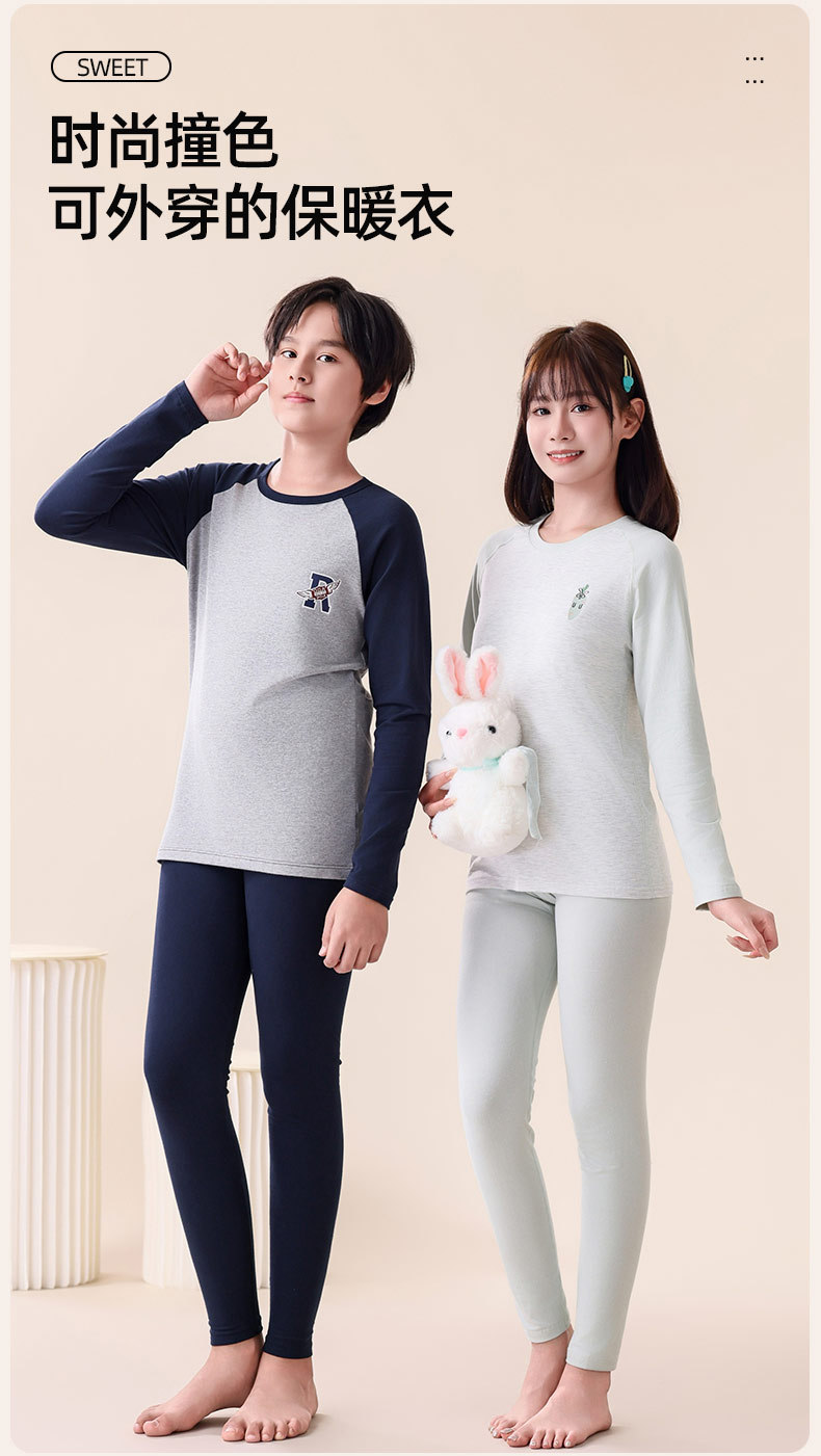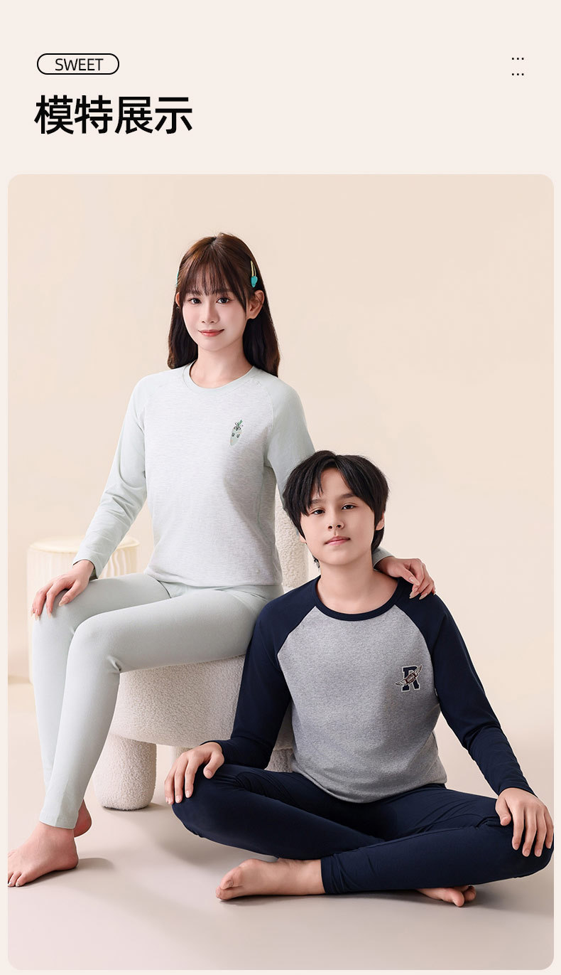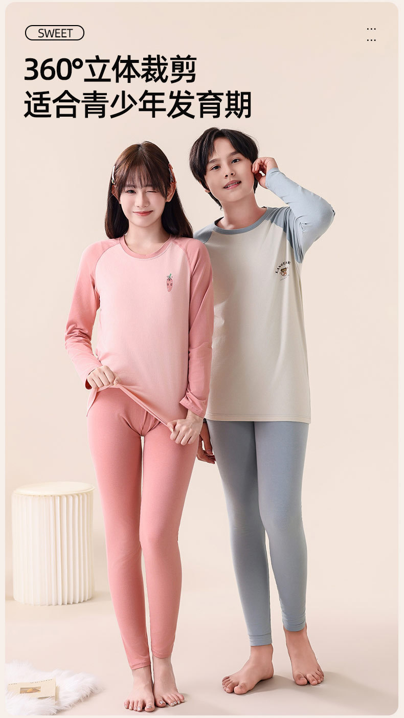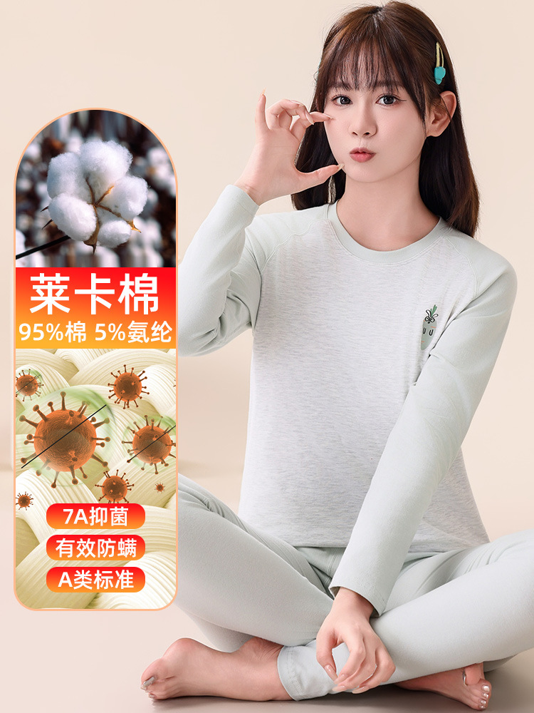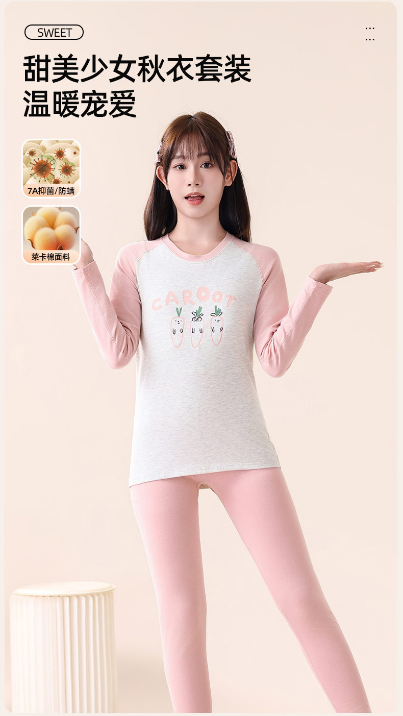 少女秋衣秋裤纯棉保暖内衣套装女初中高中生棉毛衫中大童防螨
