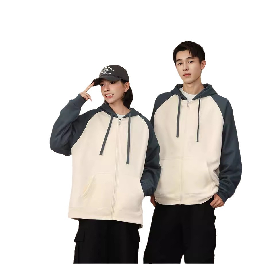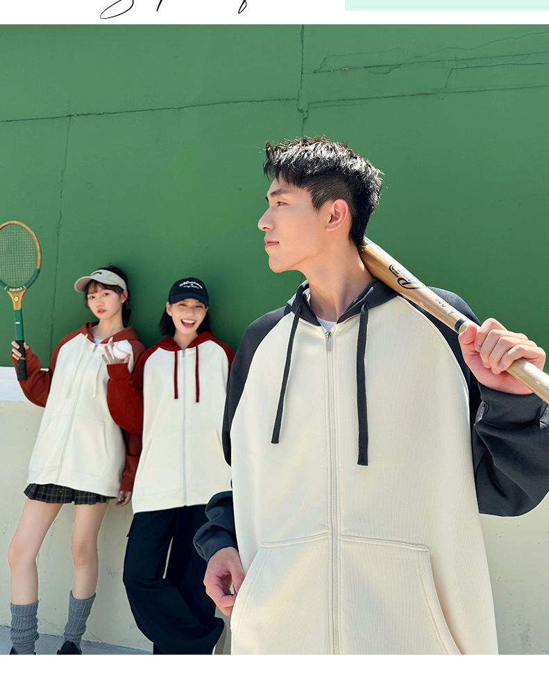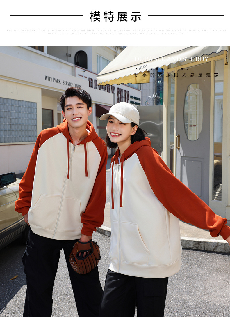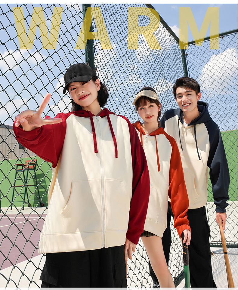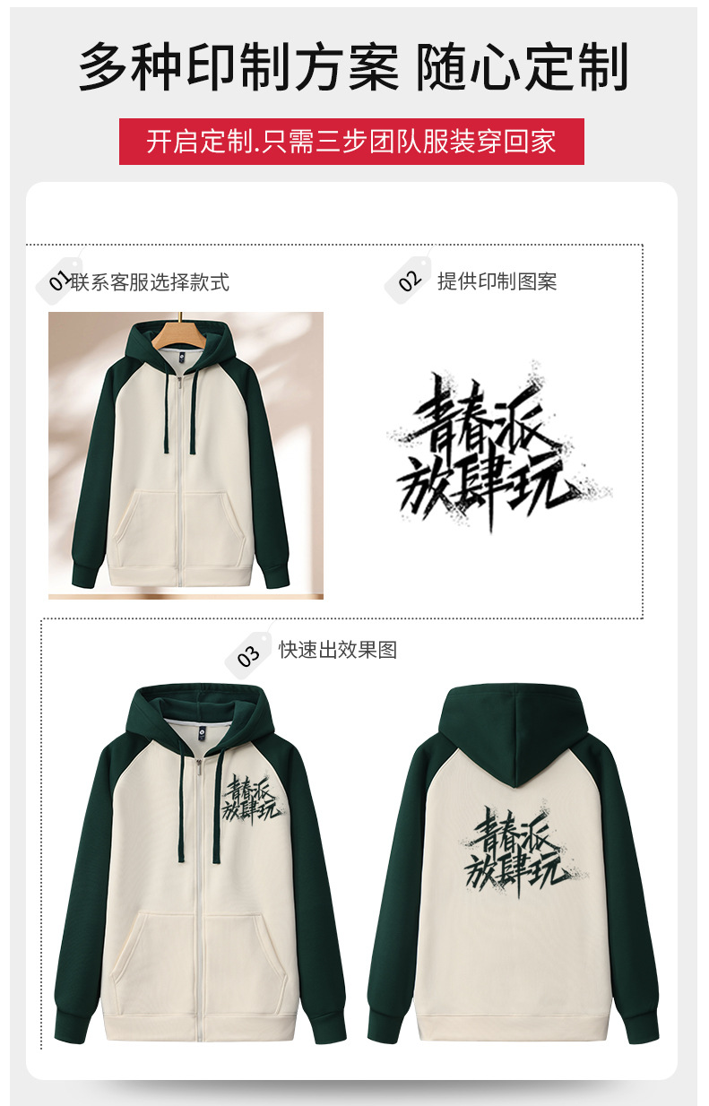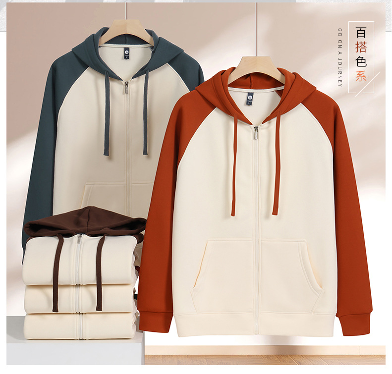 韩棉直条卫衣厚款帽子拉链衫插肩卫衣制 定logo刺绣加工休闲团体