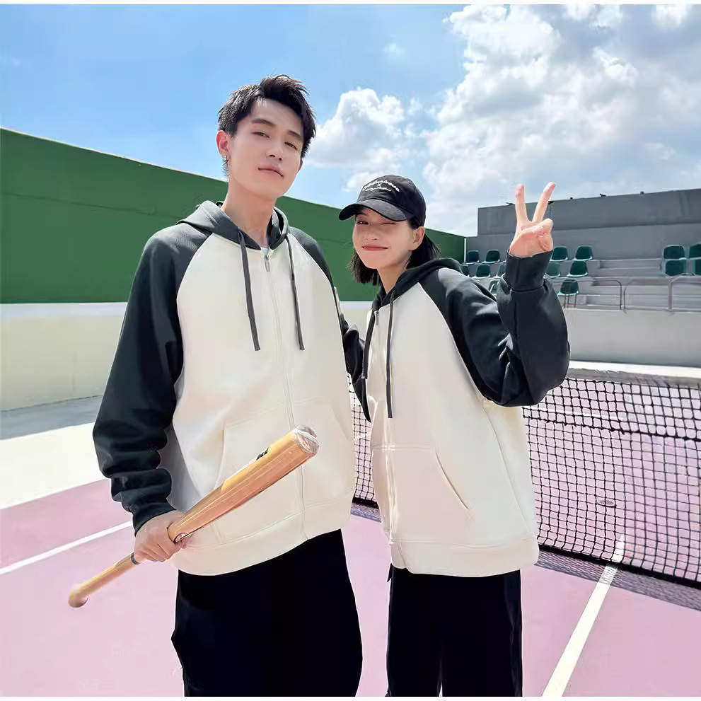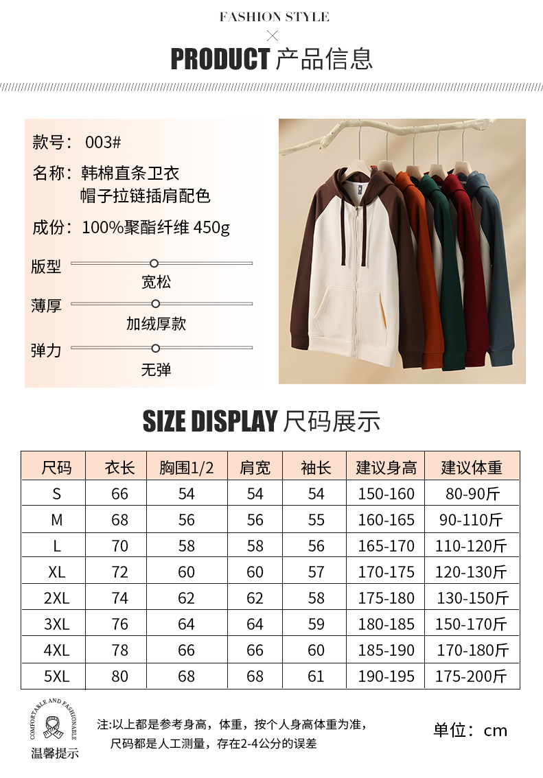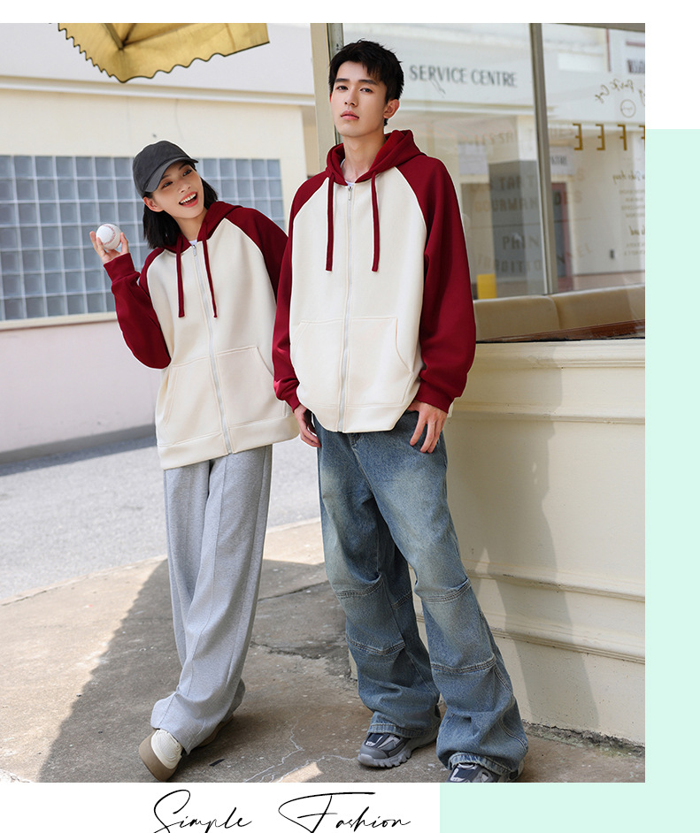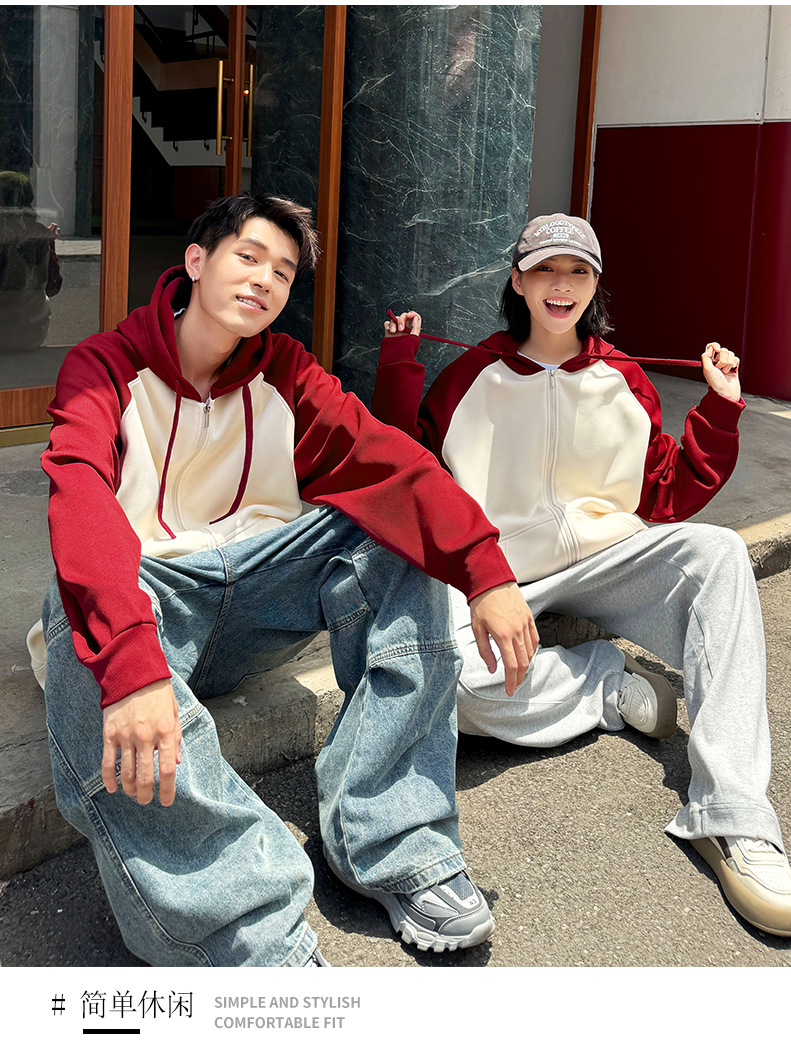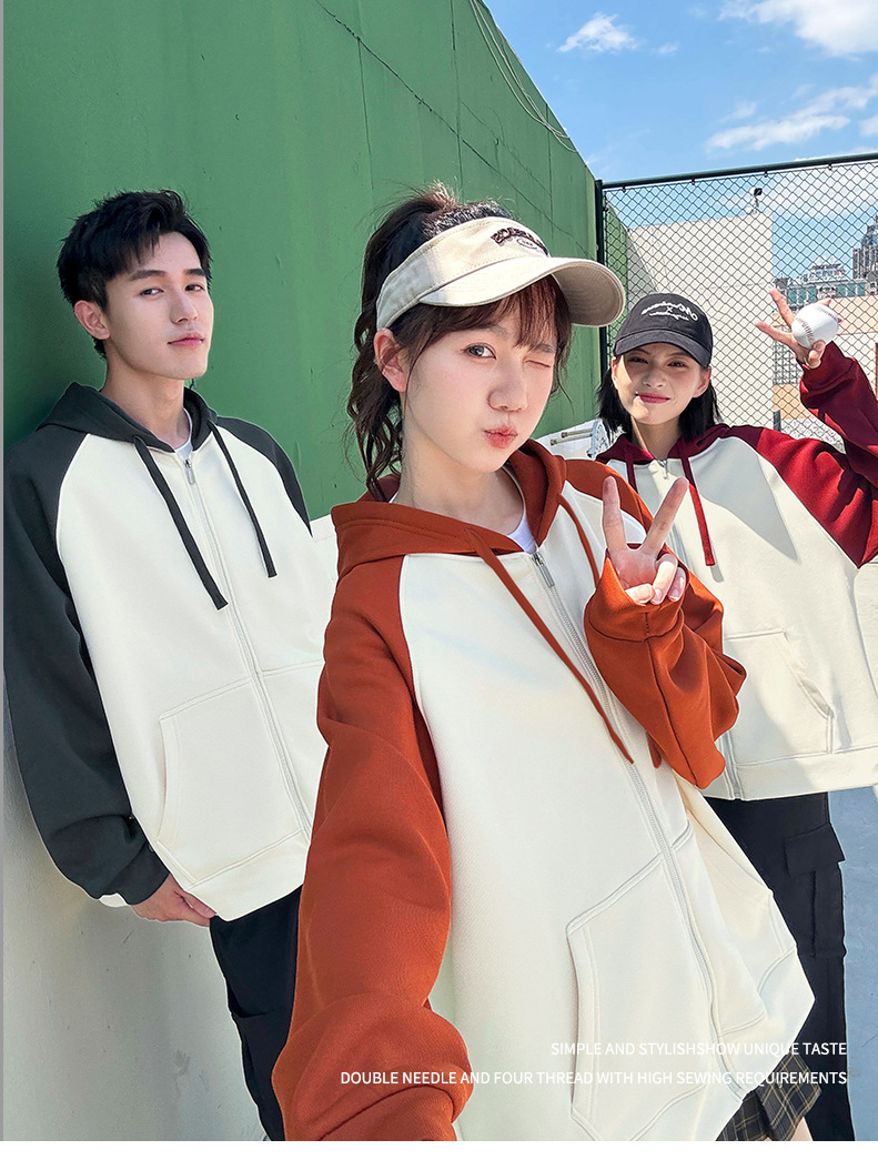 韩棉直条卫衣厚款帽子拉链衫插肩卫衣制 定logo刺绣加工休闲团体
