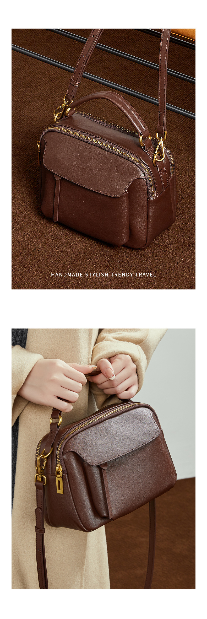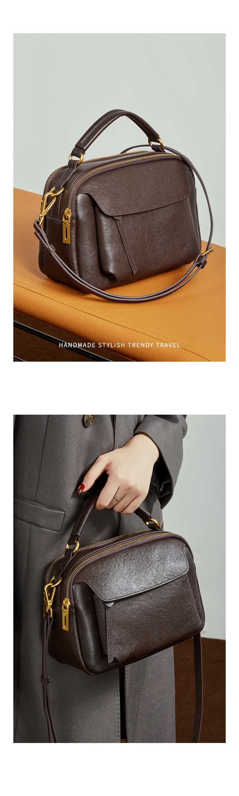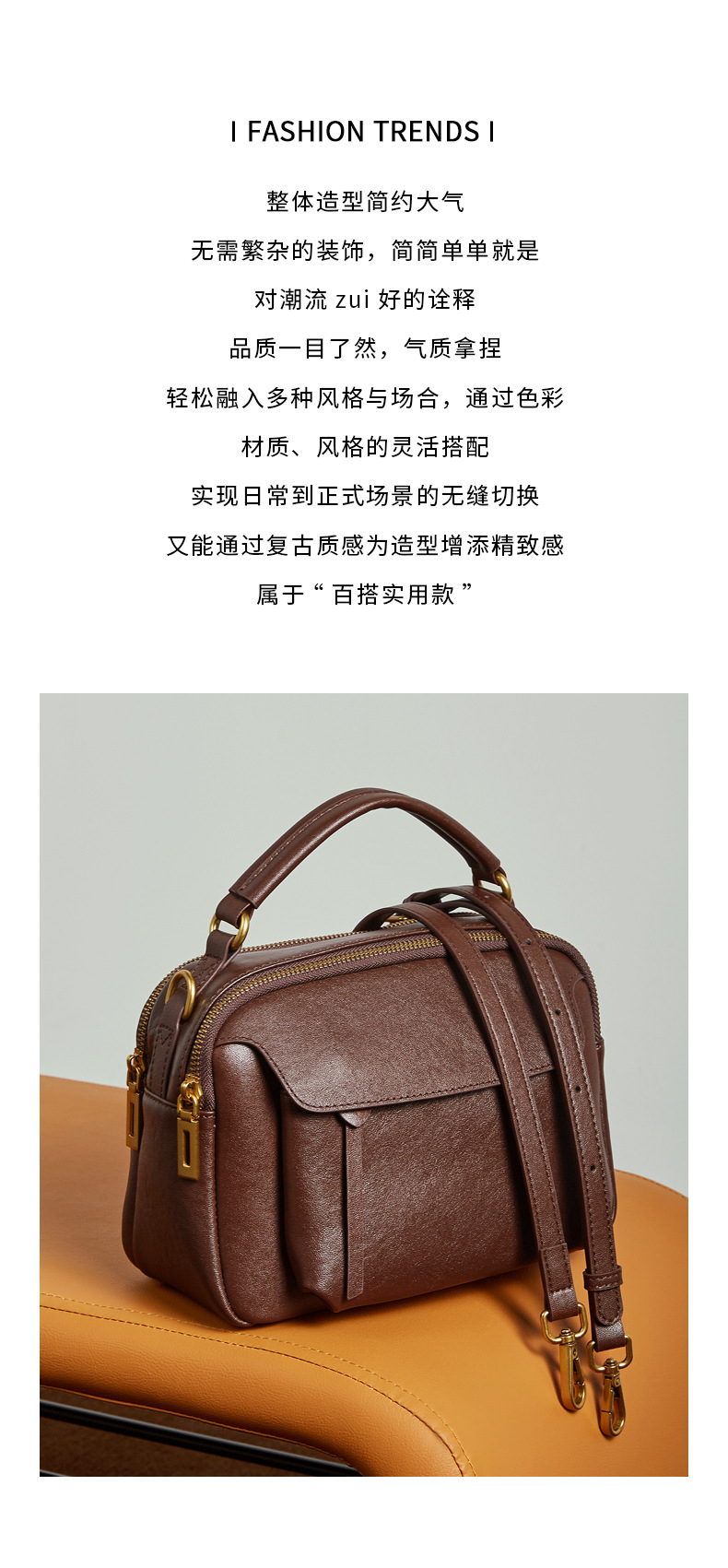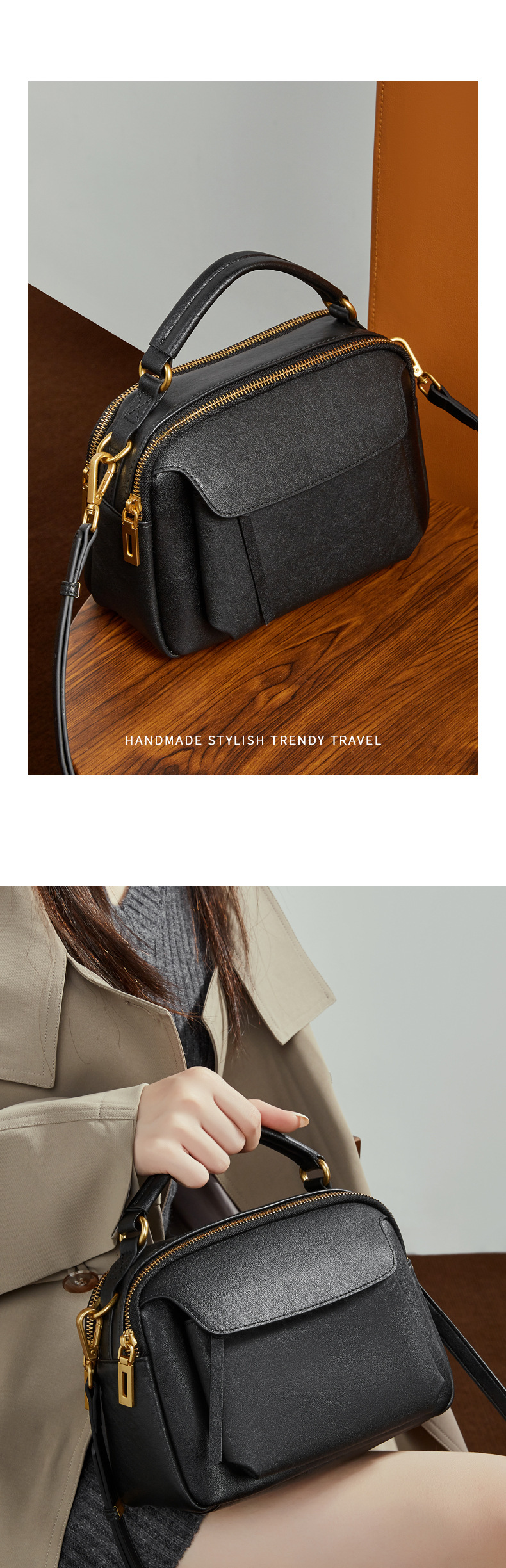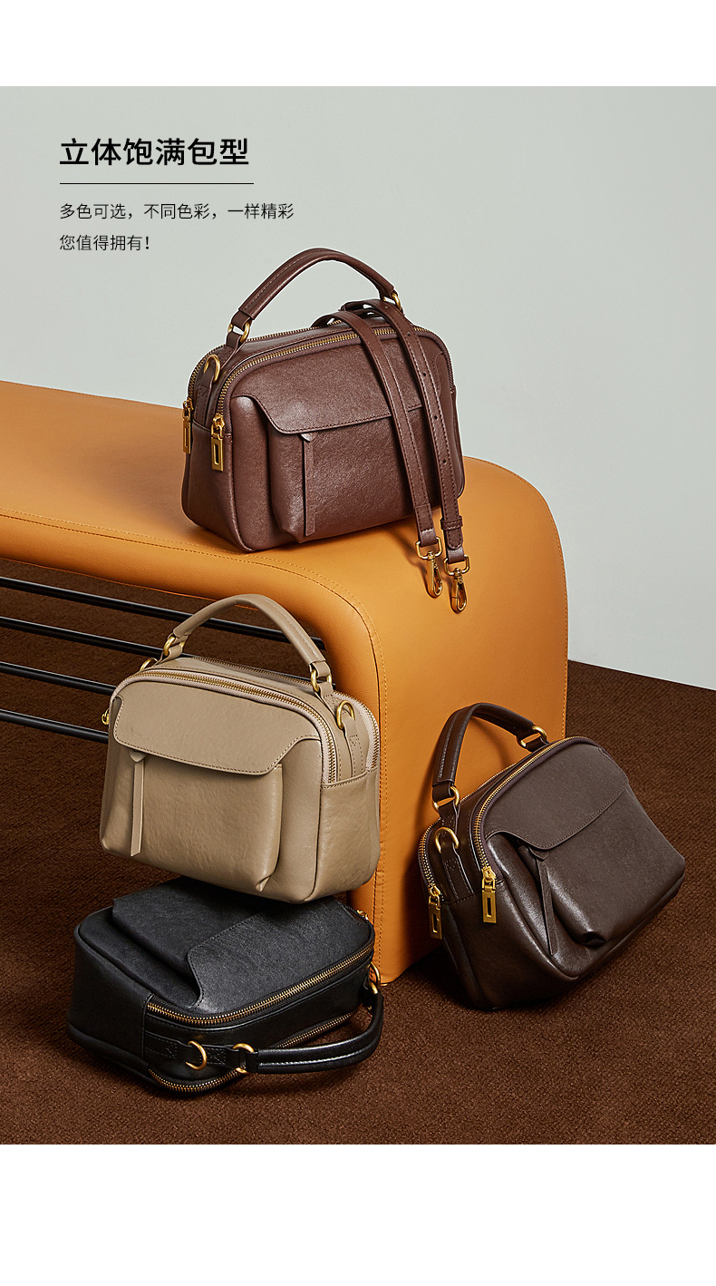 真皮时尚波士顿包女复古头层水晶植鞣牛皮手提斜挎包潮流单肩女包