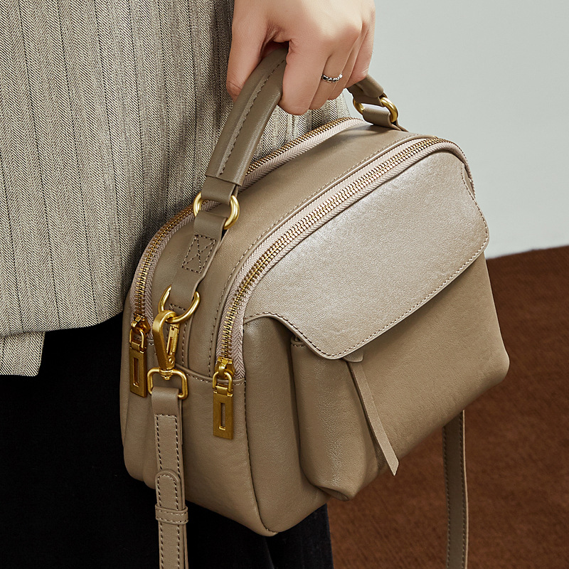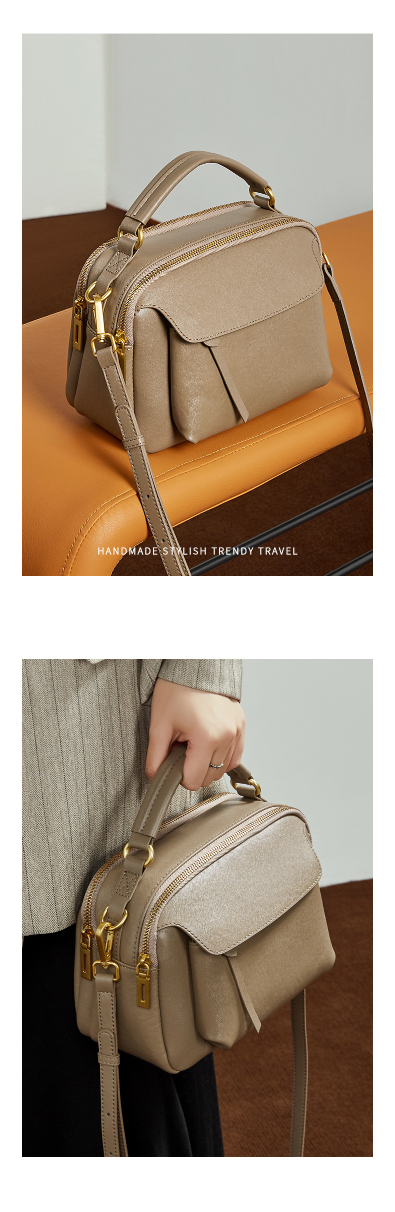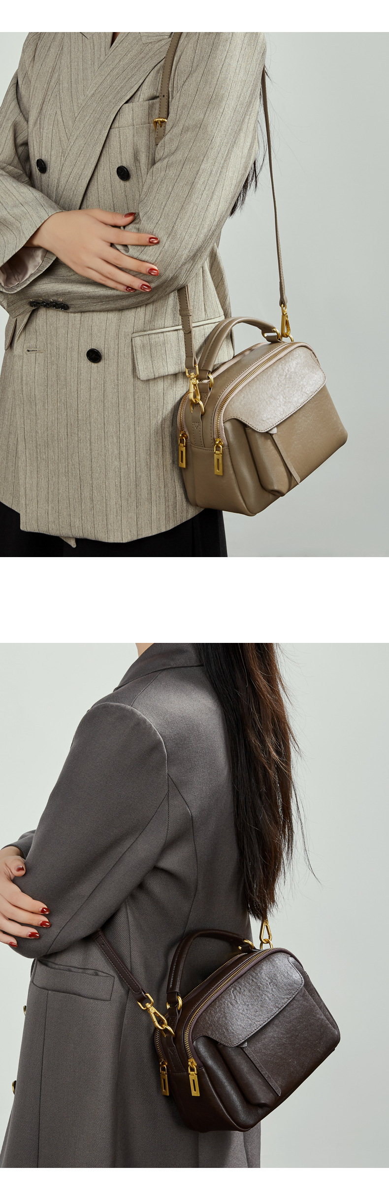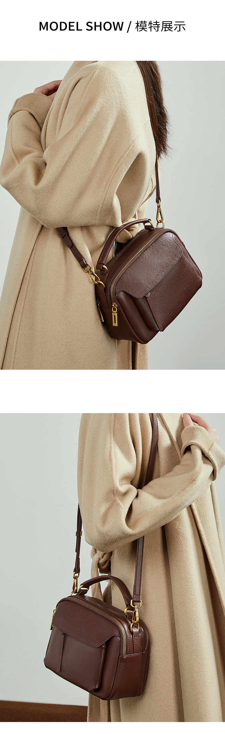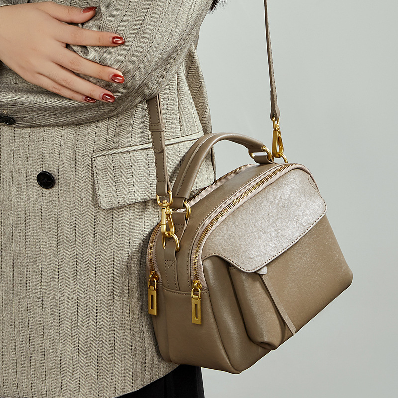 真皮时尚波士顿包女复古头层水晶植鞣牛皮手提斜挎包潮流单肩女包