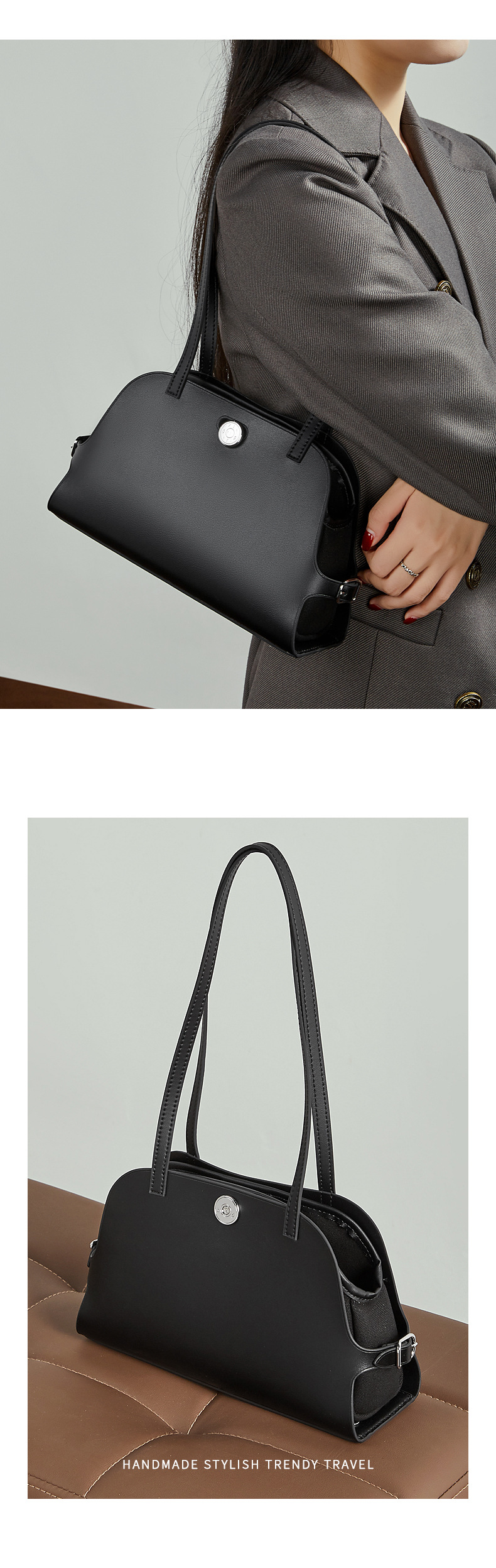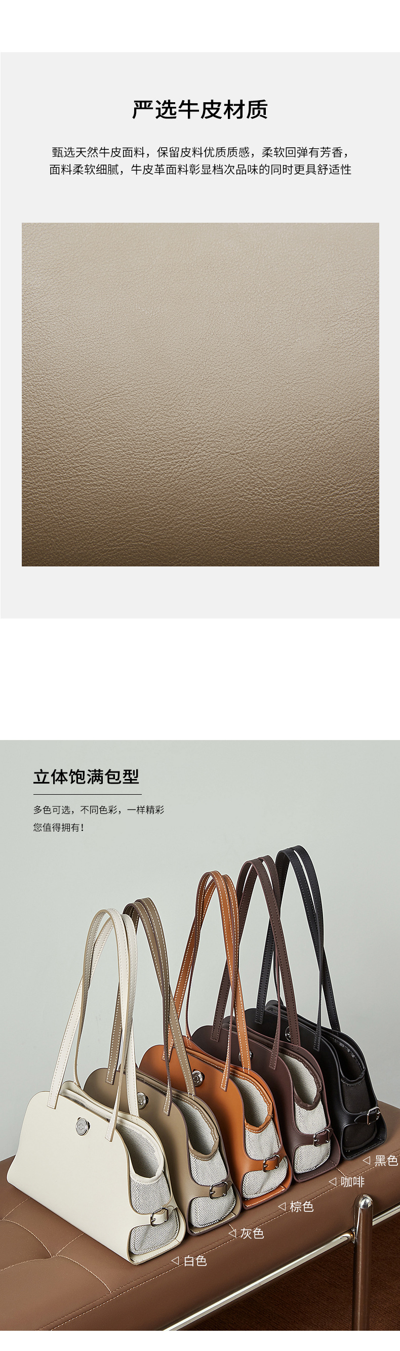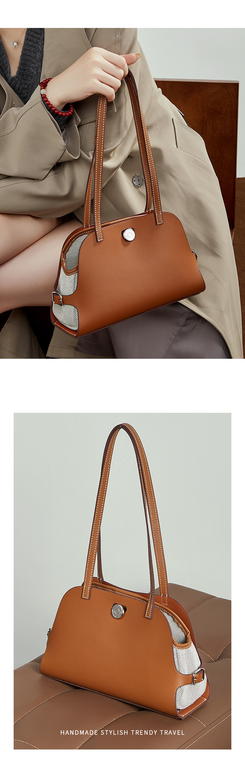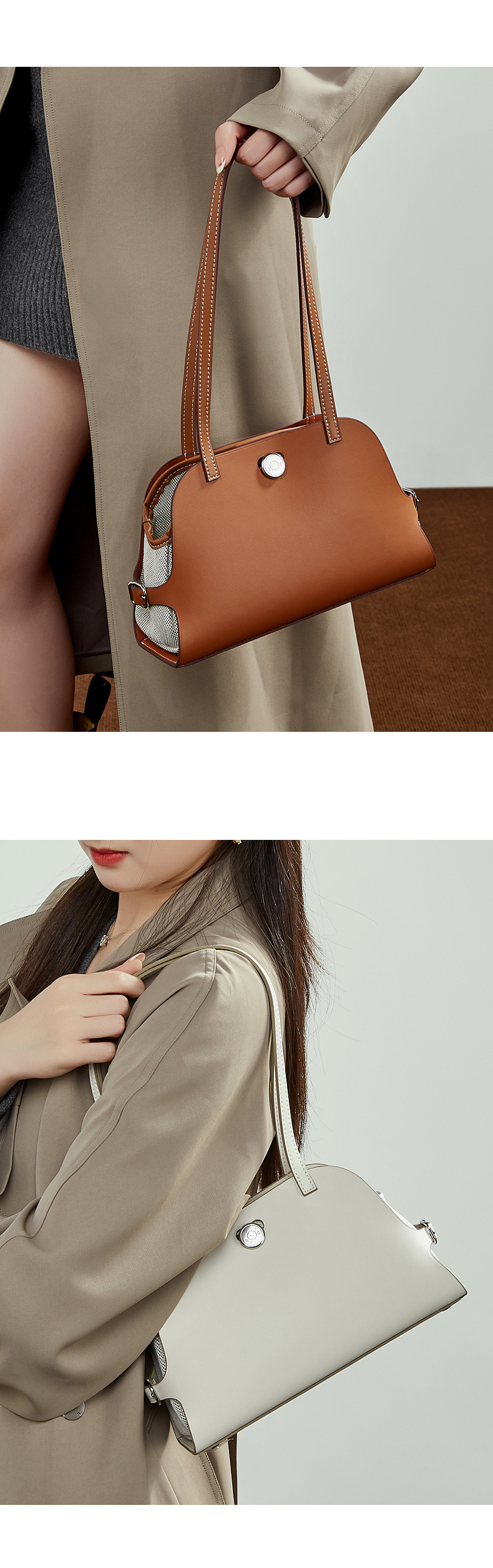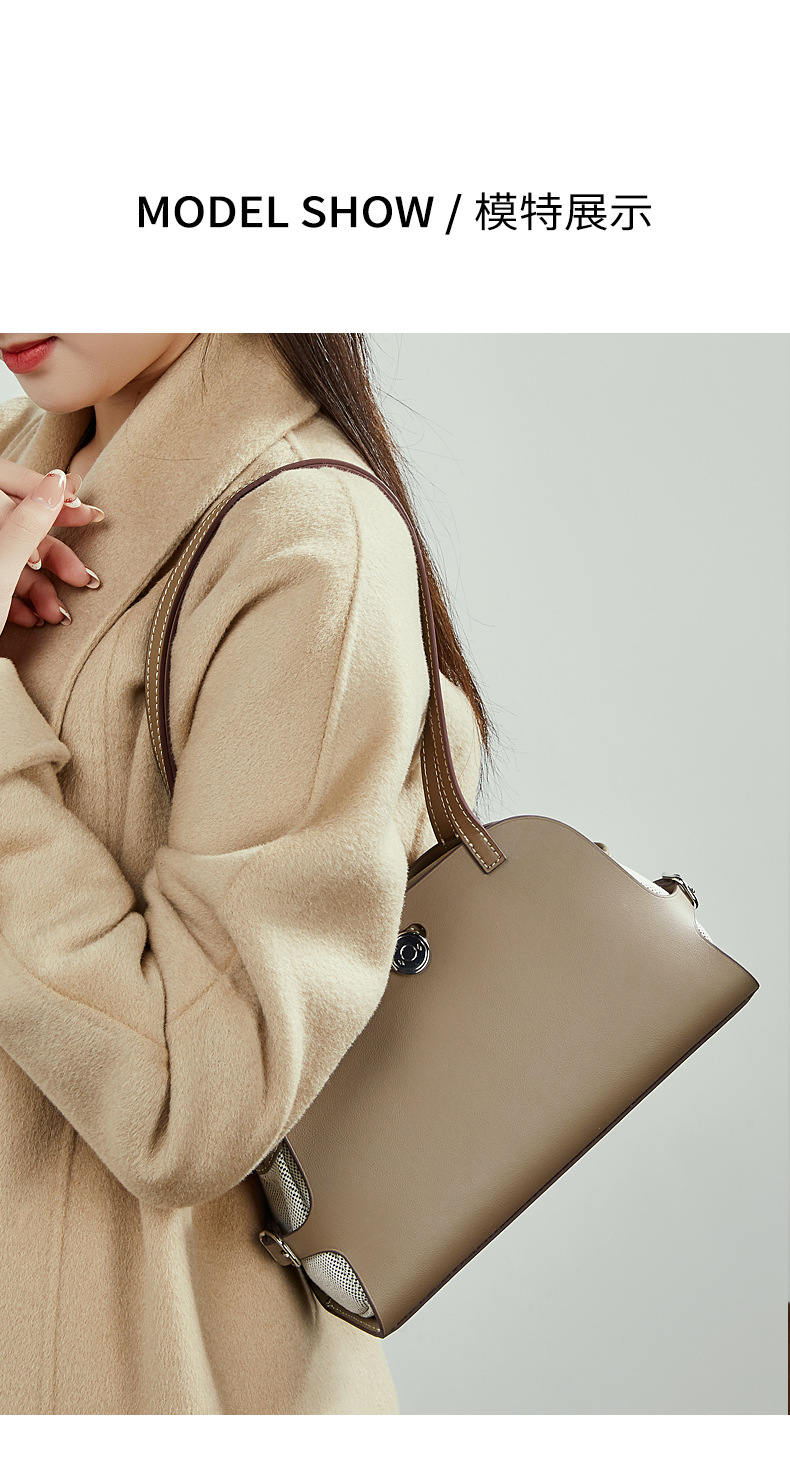 真皮高版本撞色单肩包老钱风高级感贝壳包复古时尚真皮腋下包女包