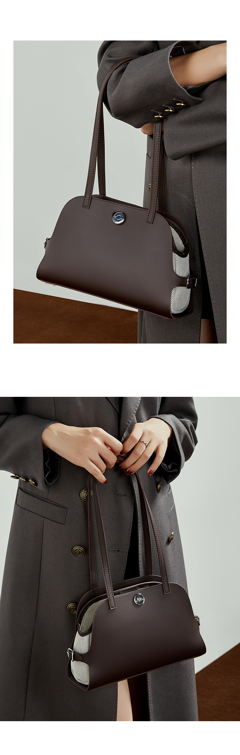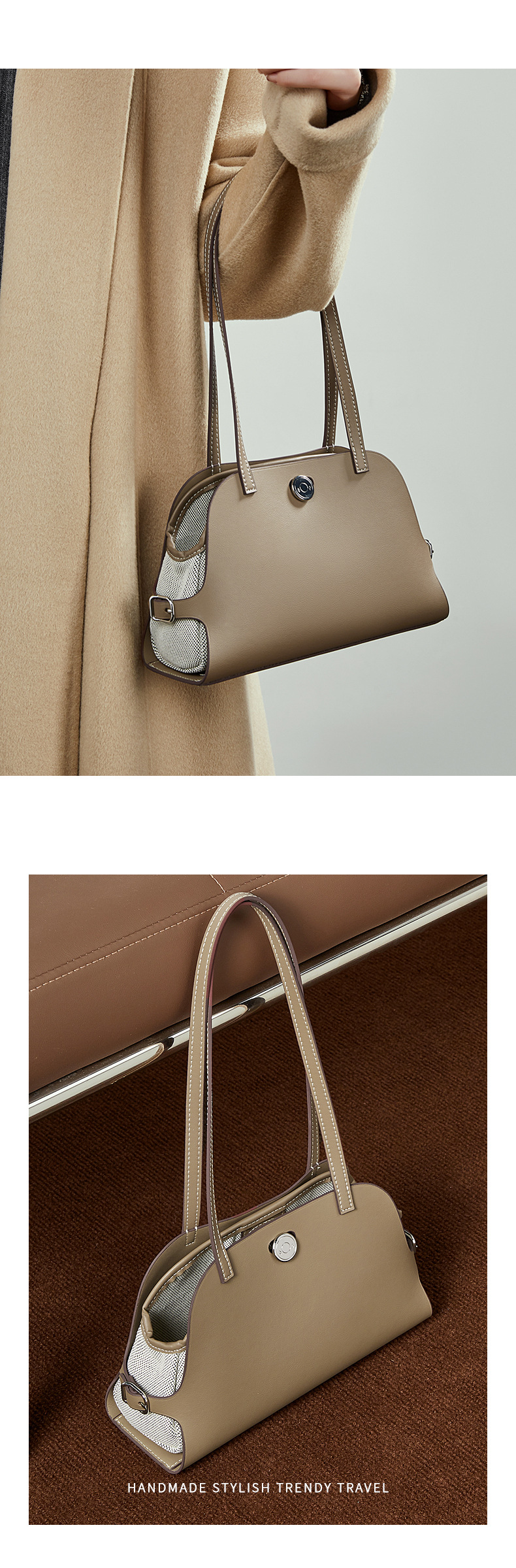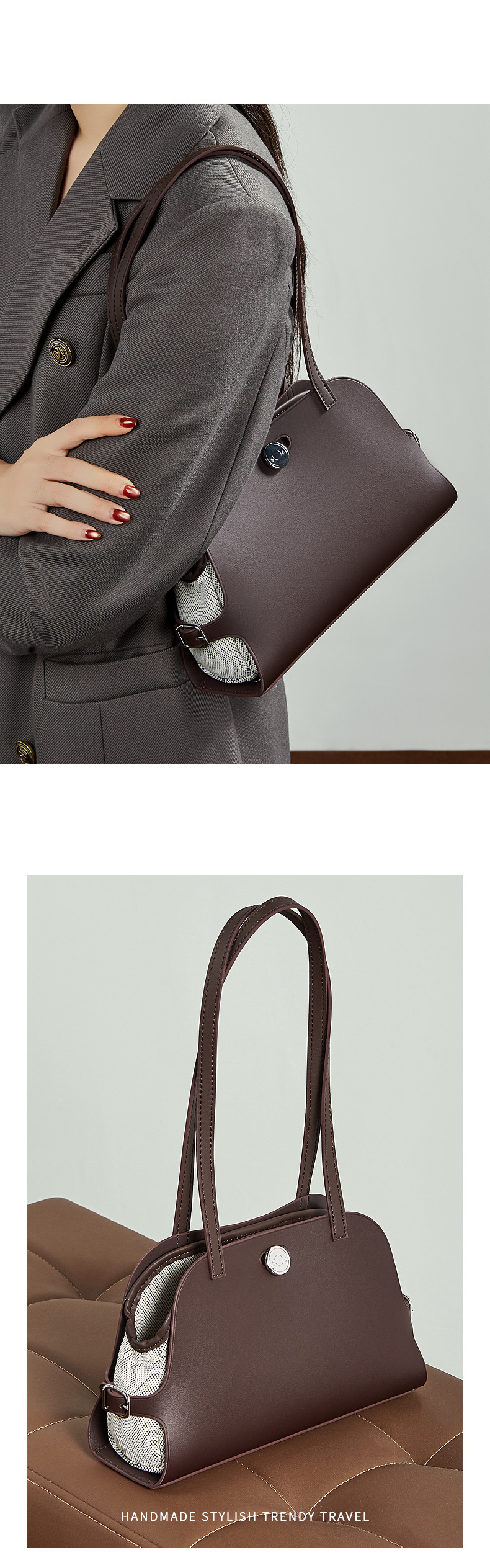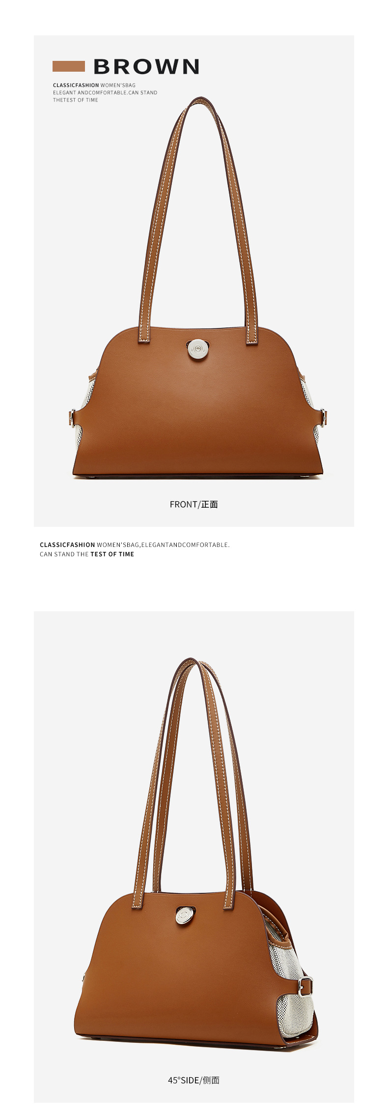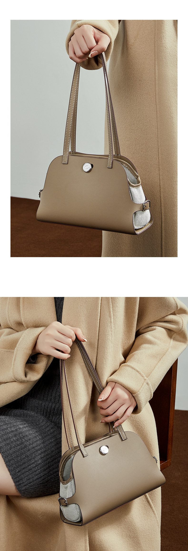 真皮高版本撞色单肩包老钱风高级感贝壳包复古时尚真皮腋下包女包