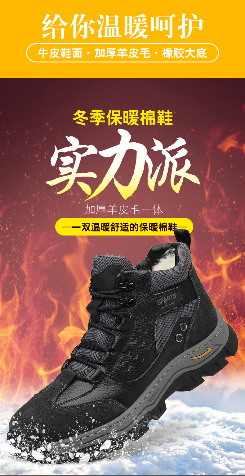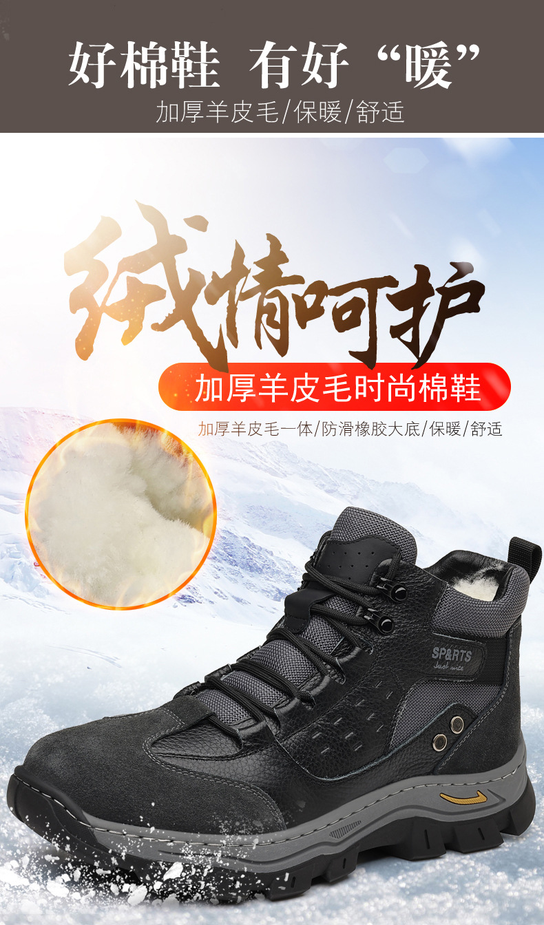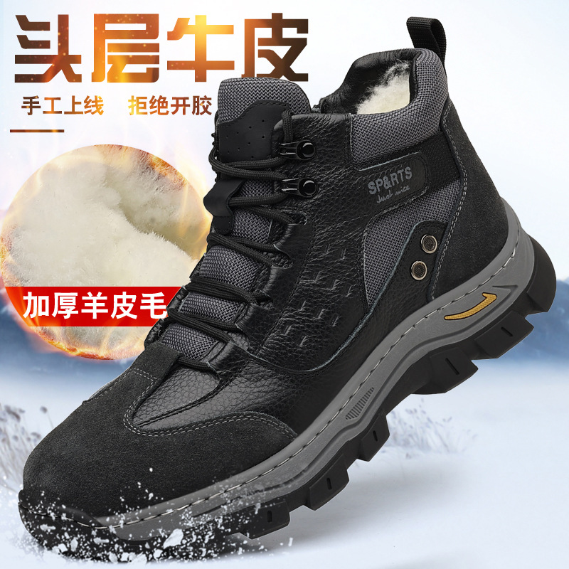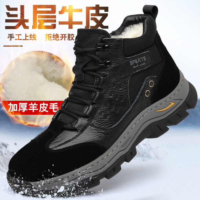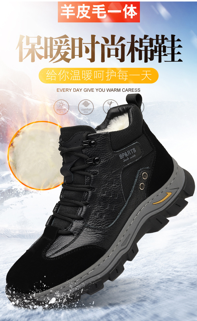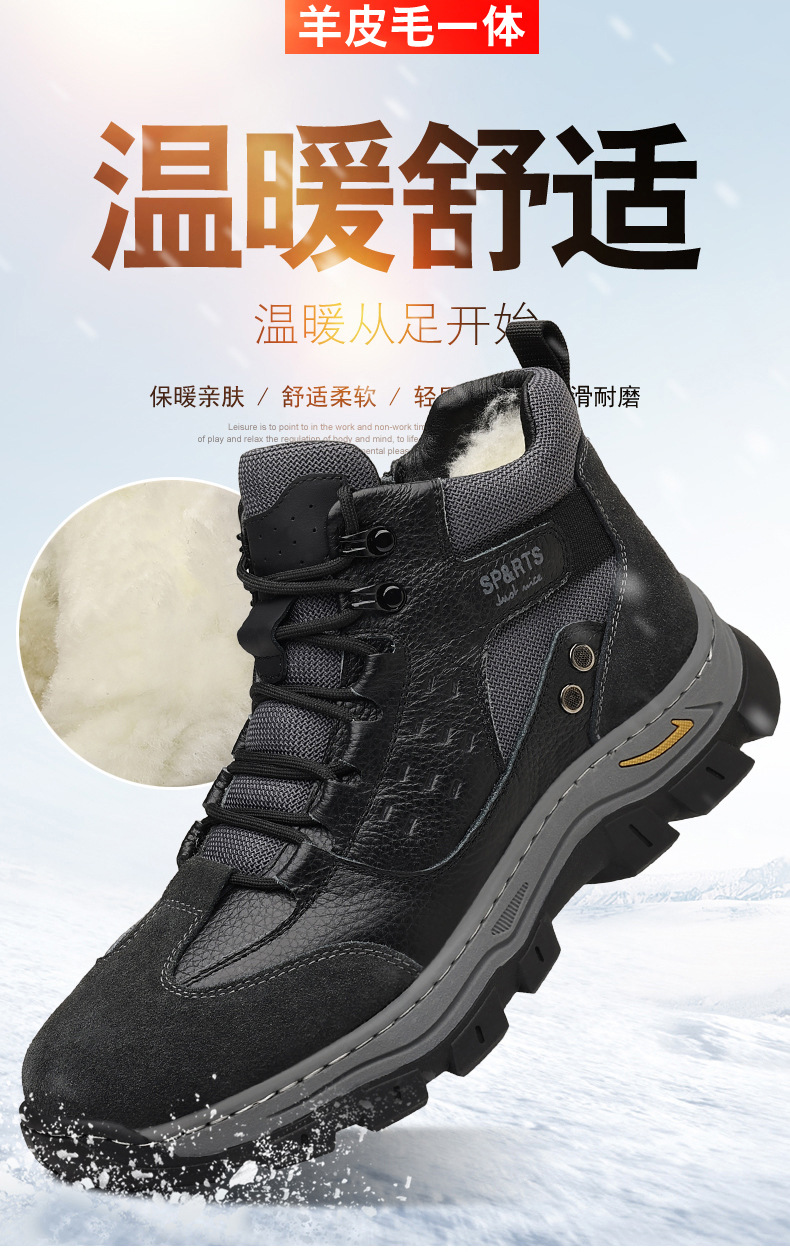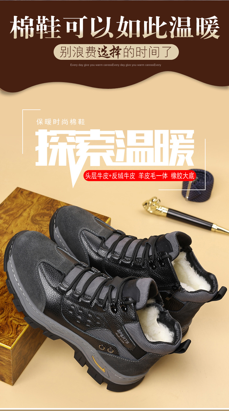 头层牛皮冬季新款男士棉鞋羊毛保暖户外登山加绒男款男鞋防滑加厚
