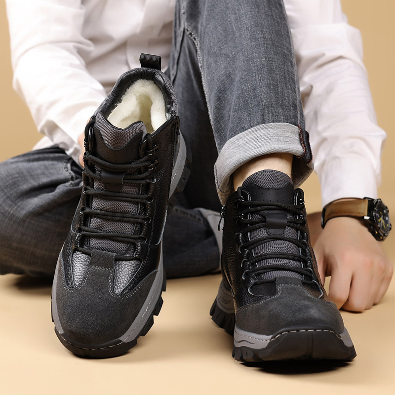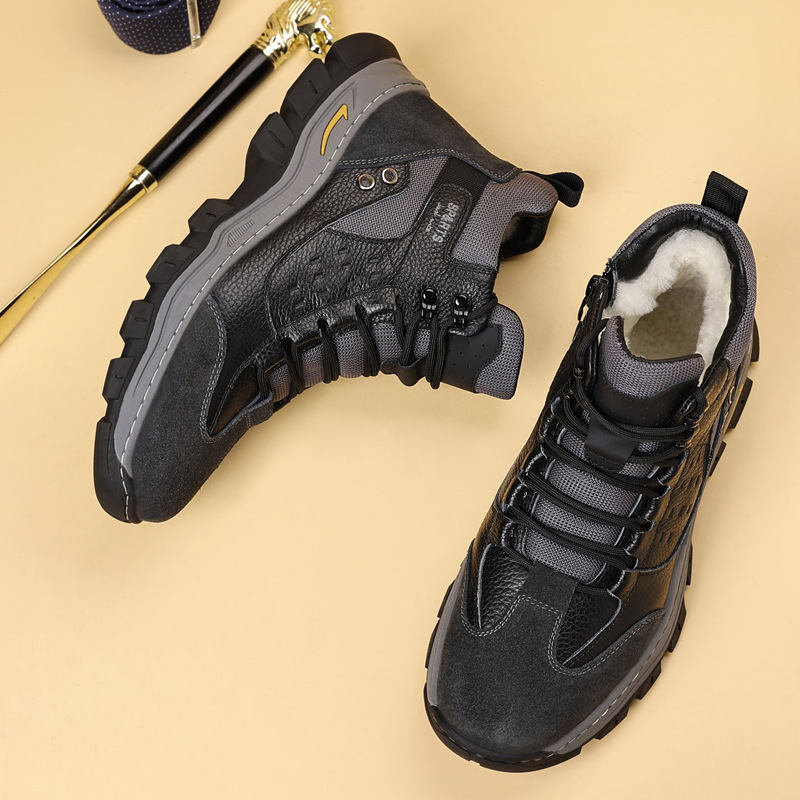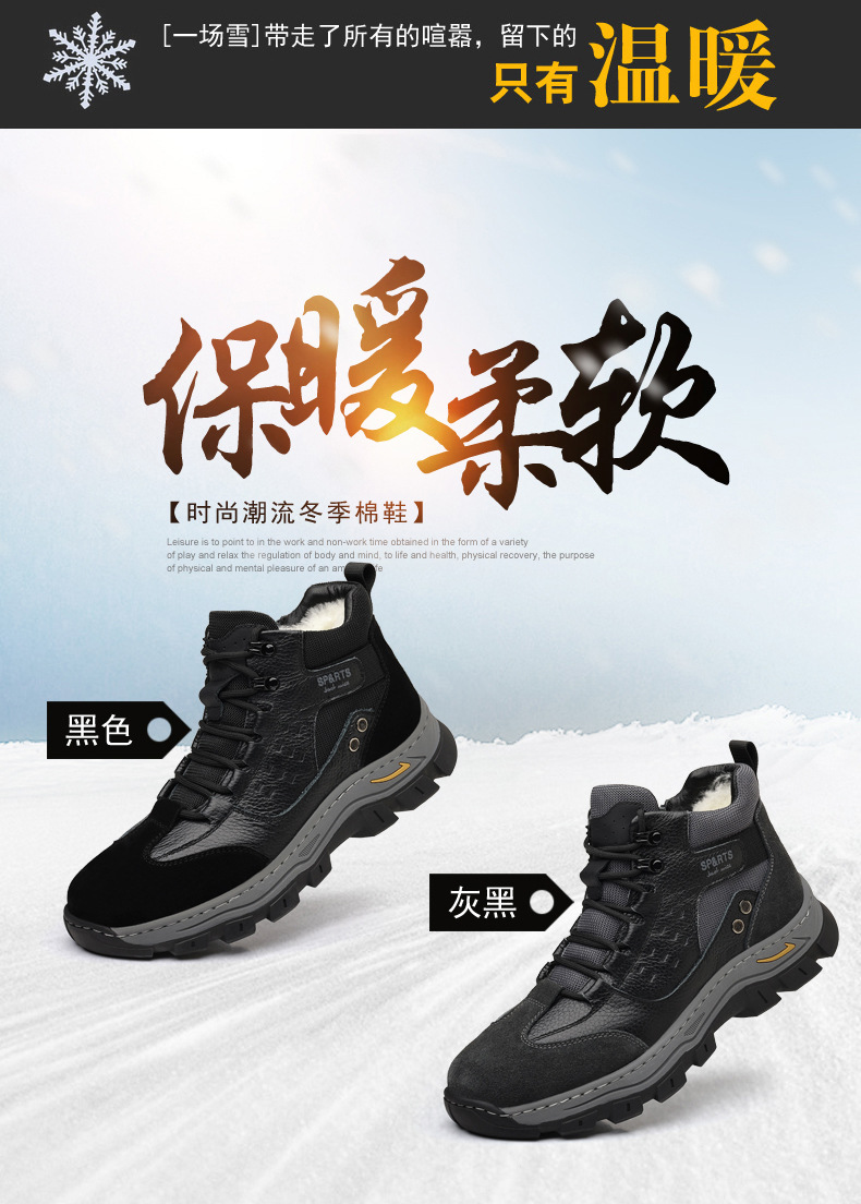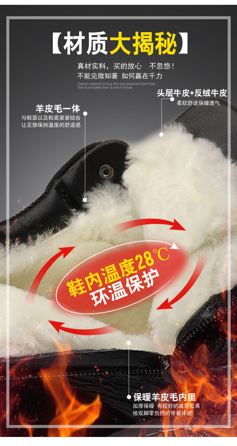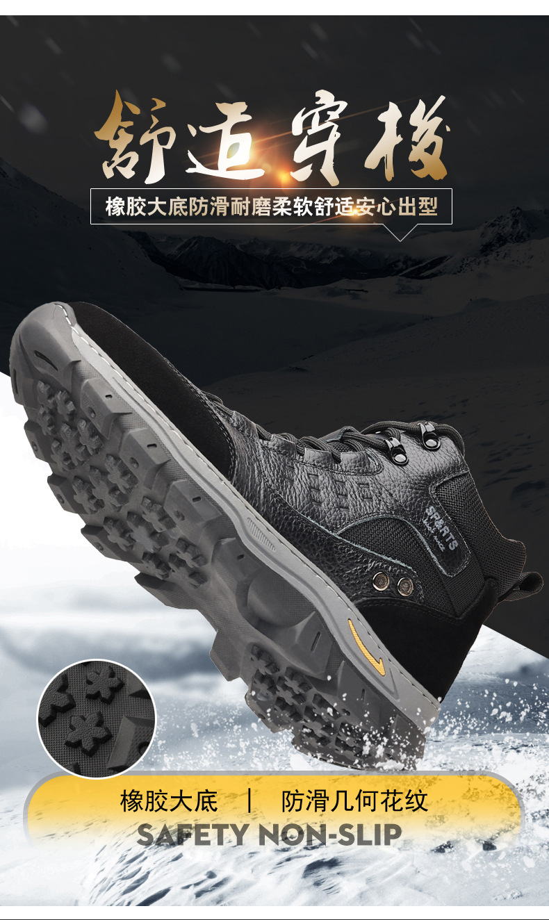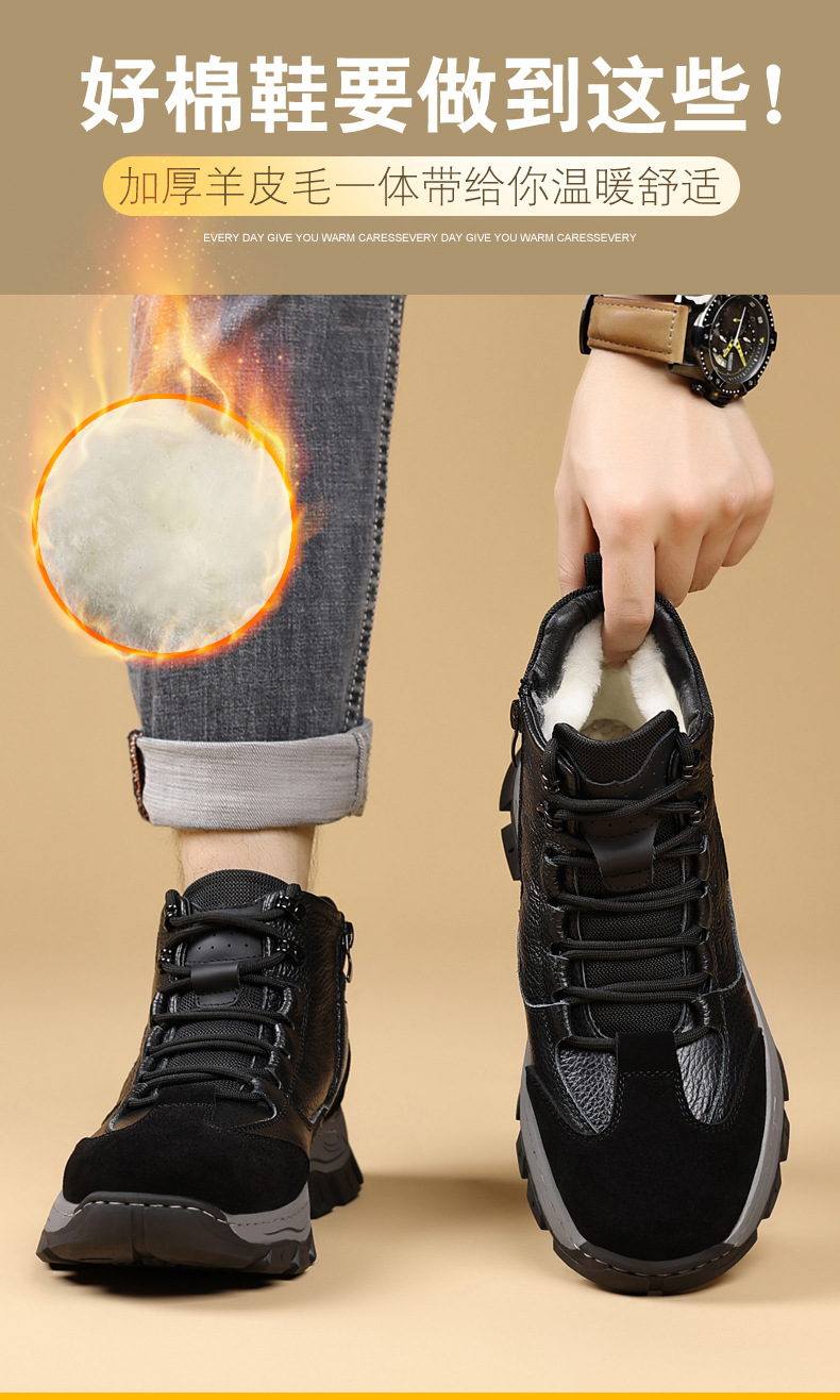 头层牛皮冬季新款男士棉鞋羊毛保暖户外登山加绒男款男鞋防滑加厚