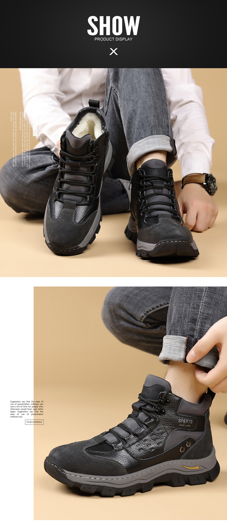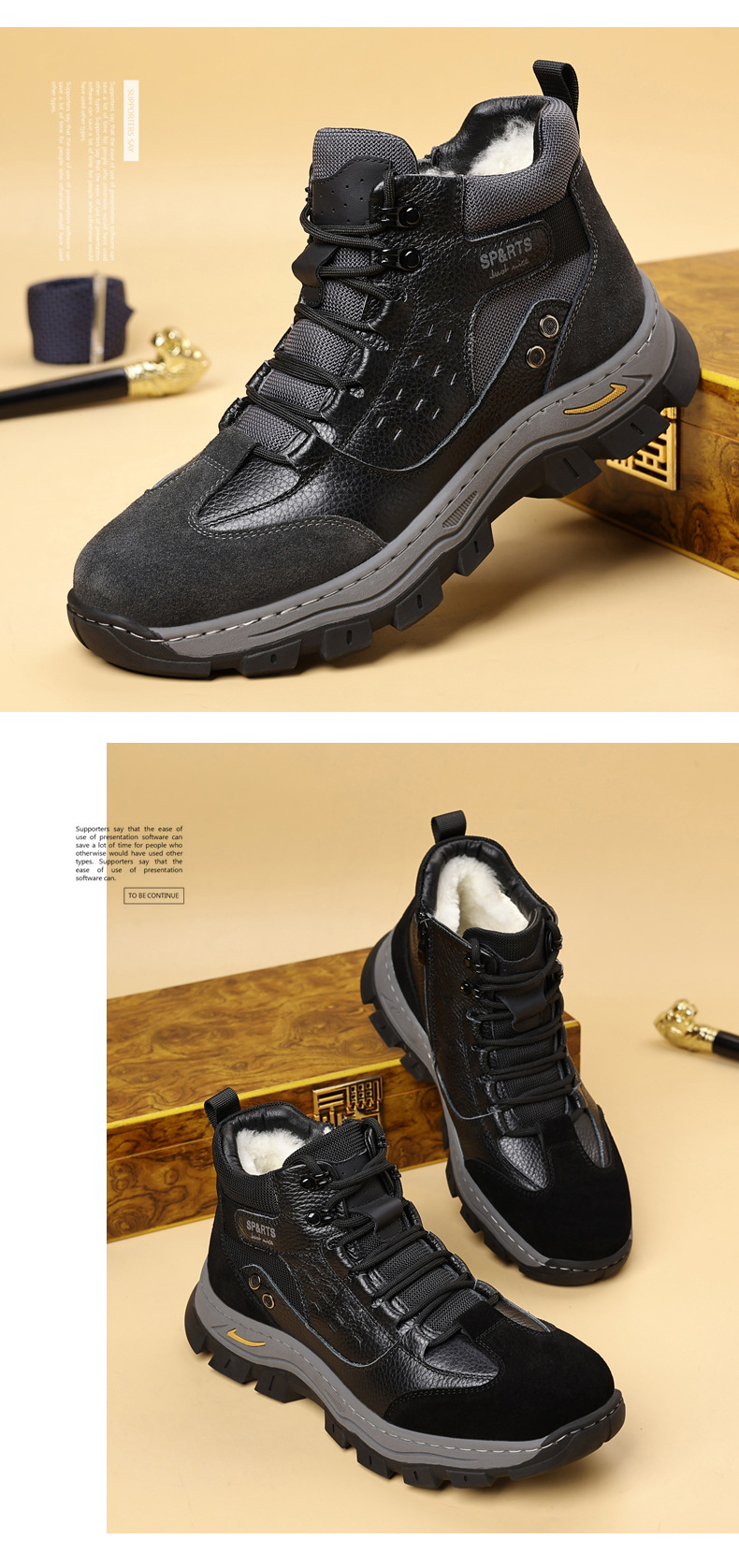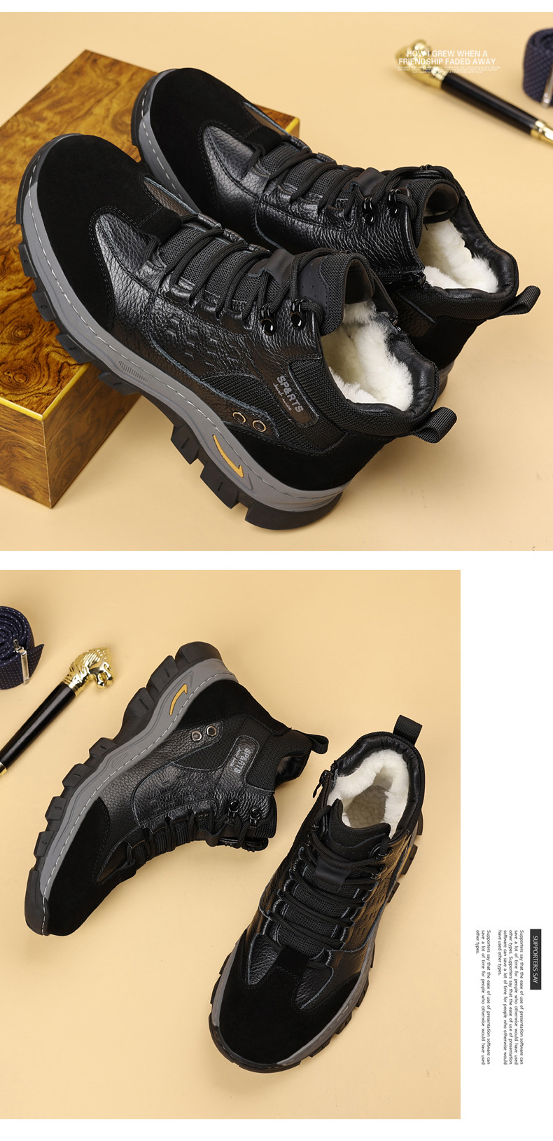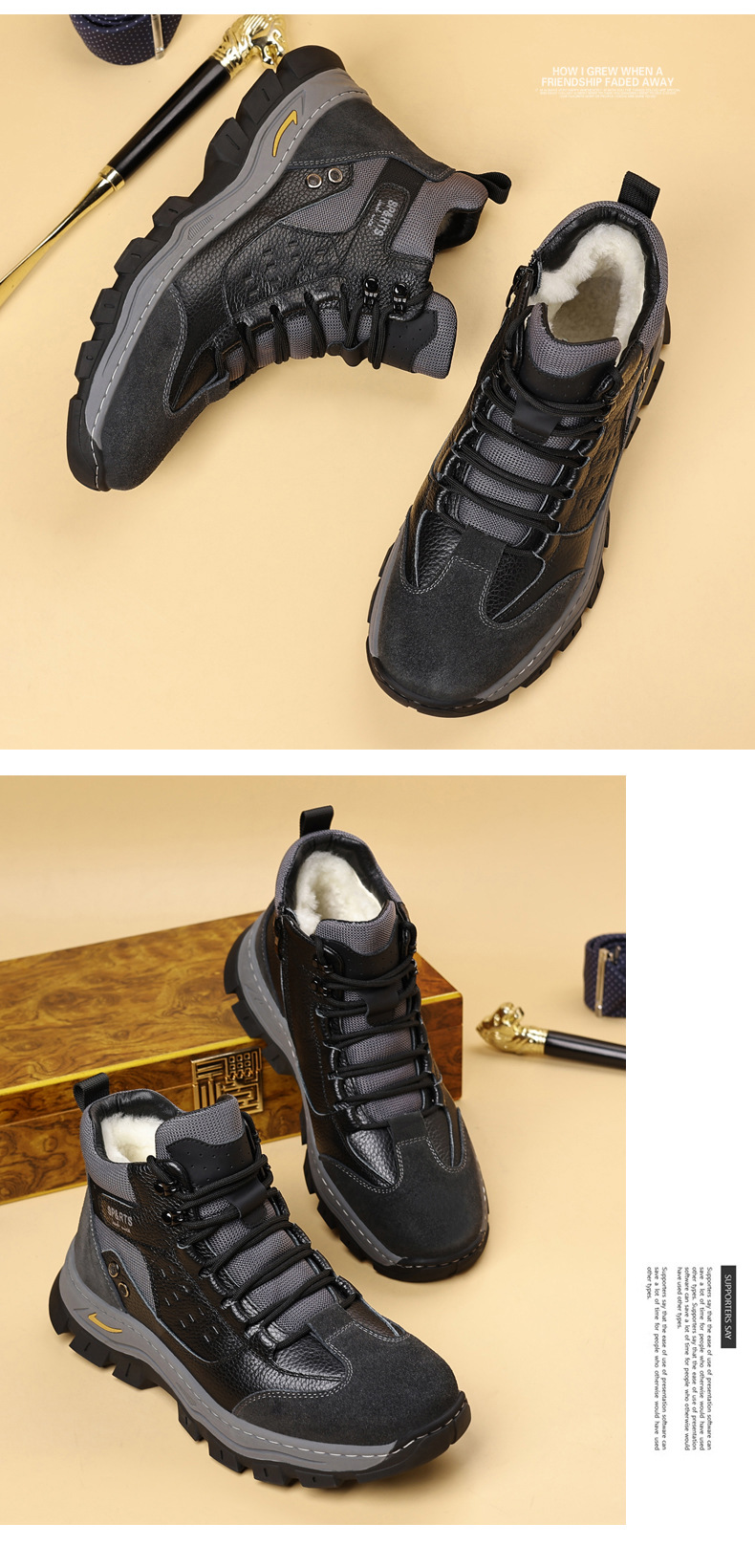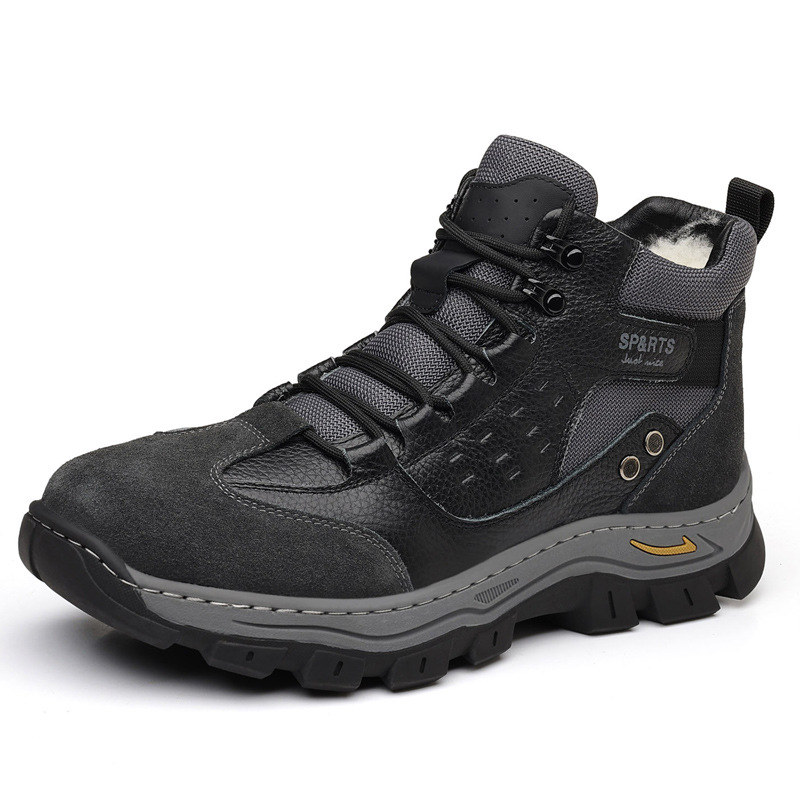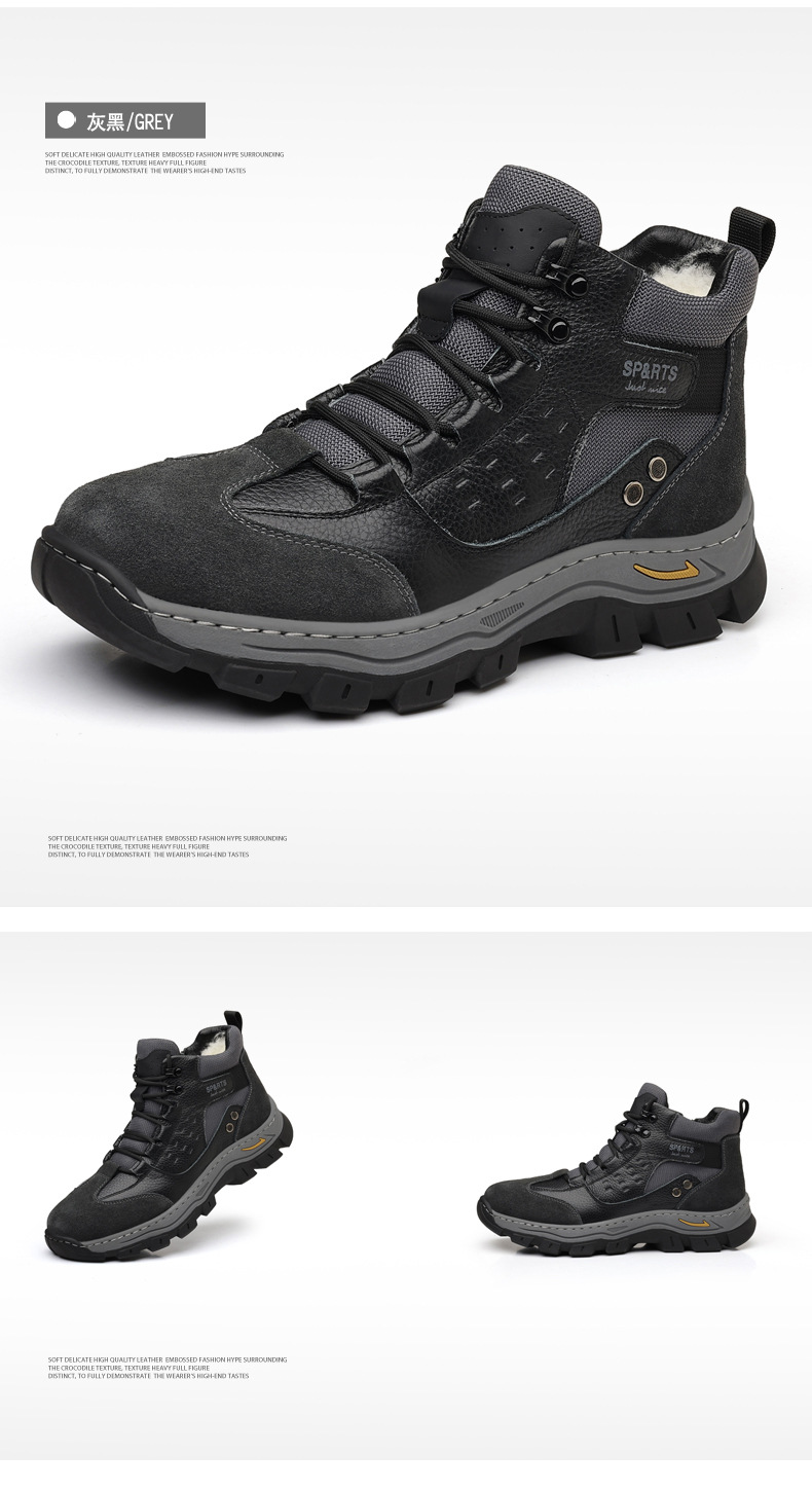 头层牛皮冬季新款男士棉鞋羊毛保暖户外登山加绒男款男鞋防滑加厚