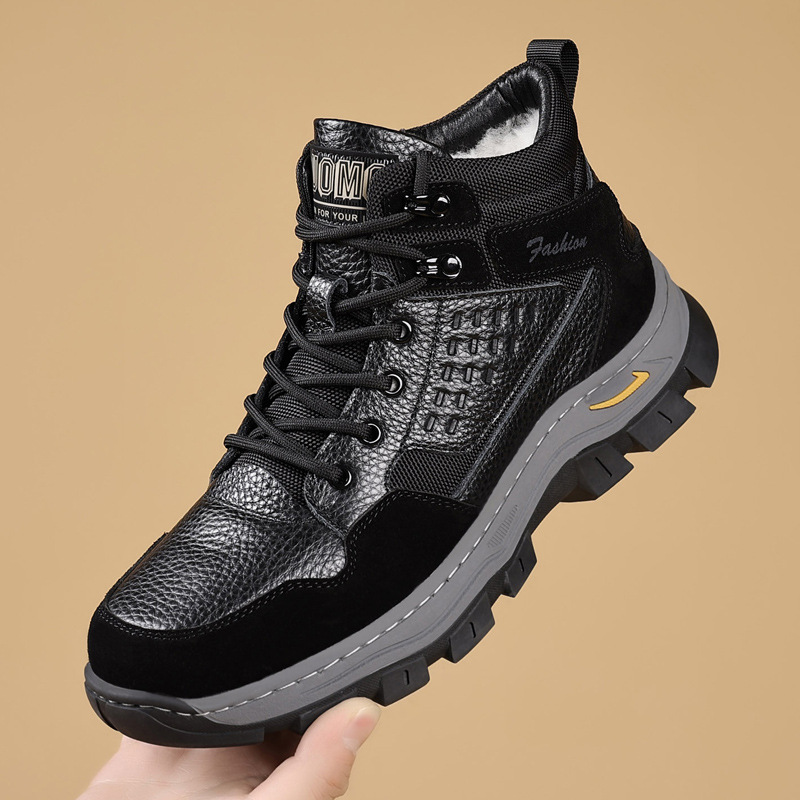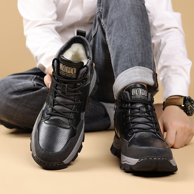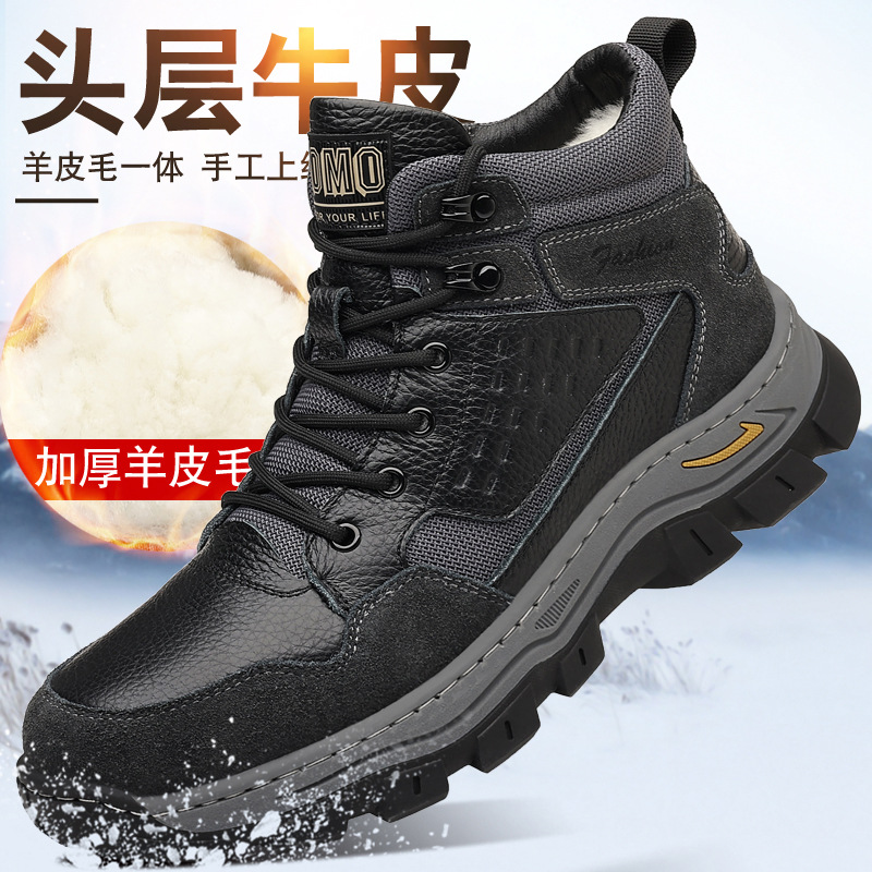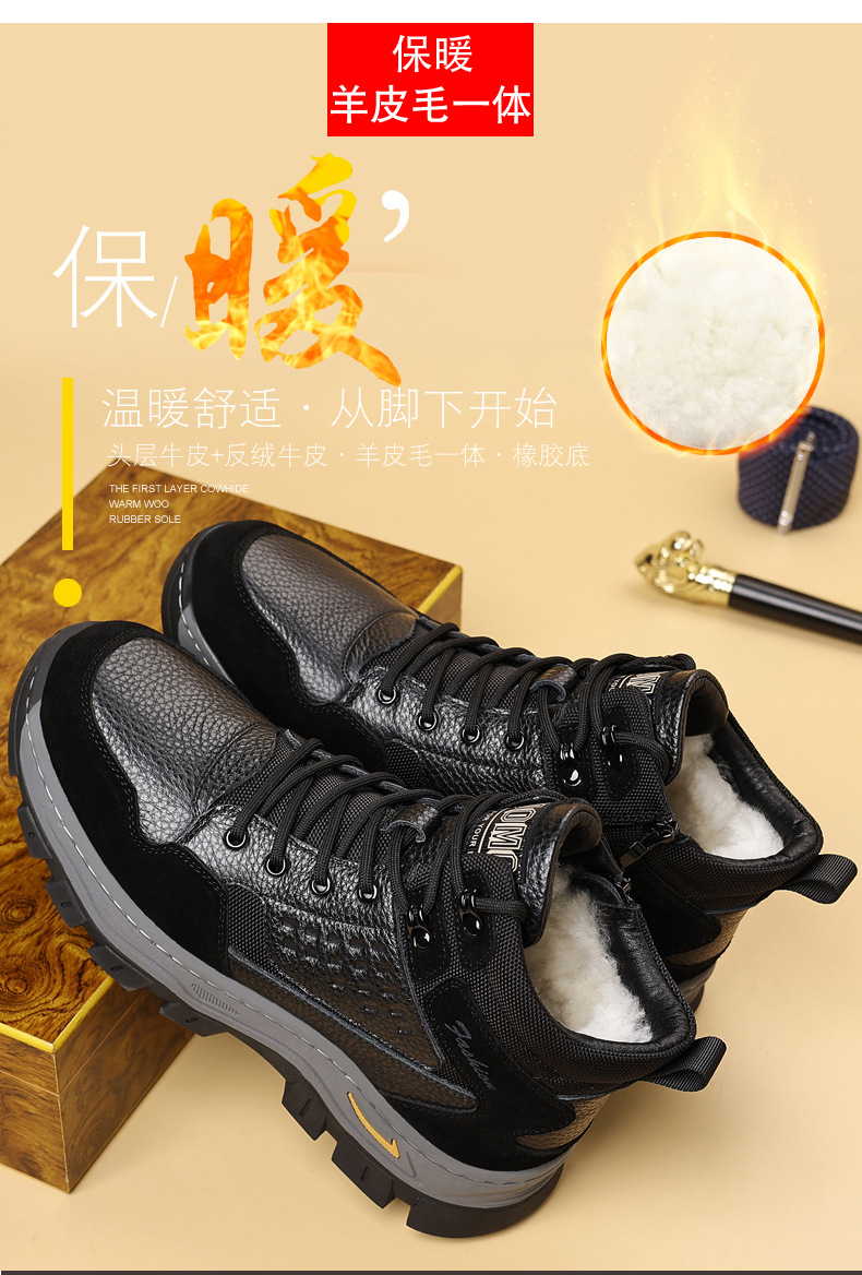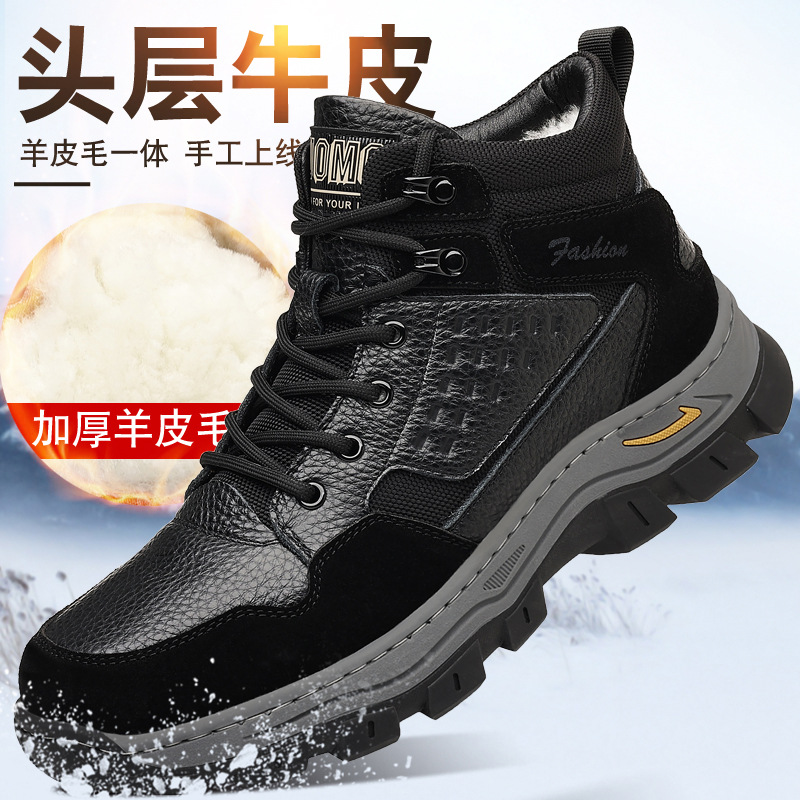 2025冬季新款羊毛棉鞋真皮加绒保险户外休闲鞋反绒皮男款东北男鞋