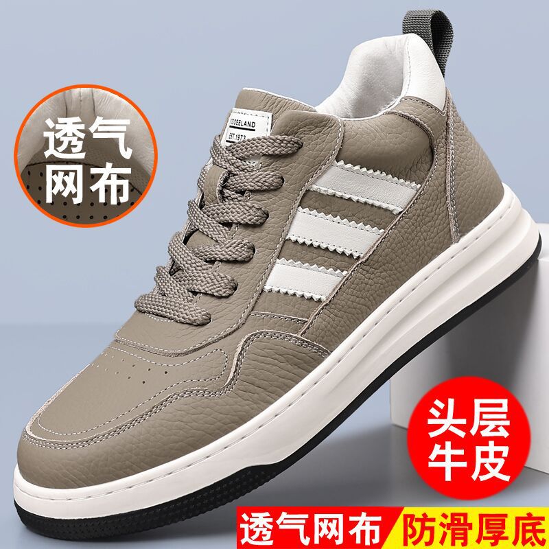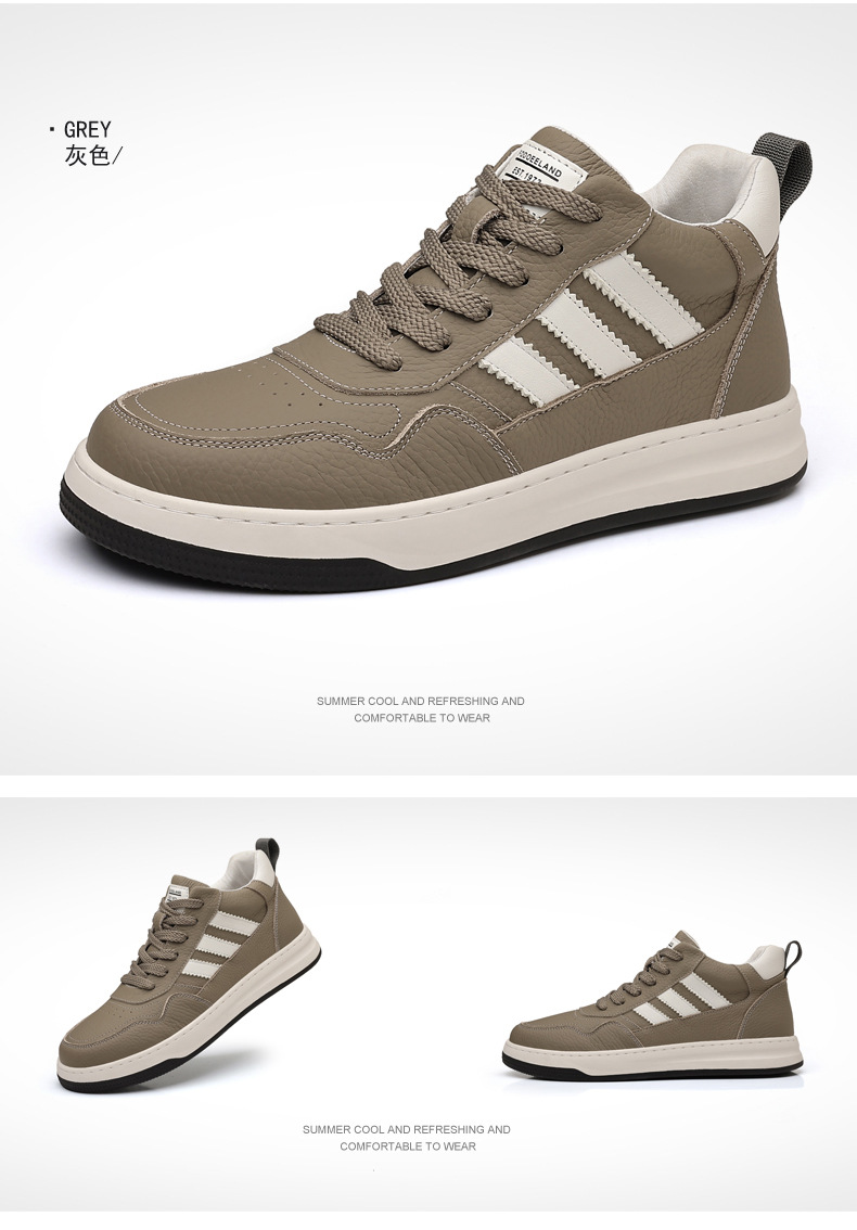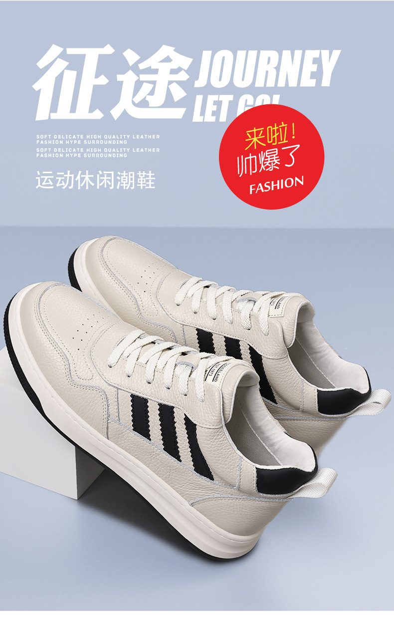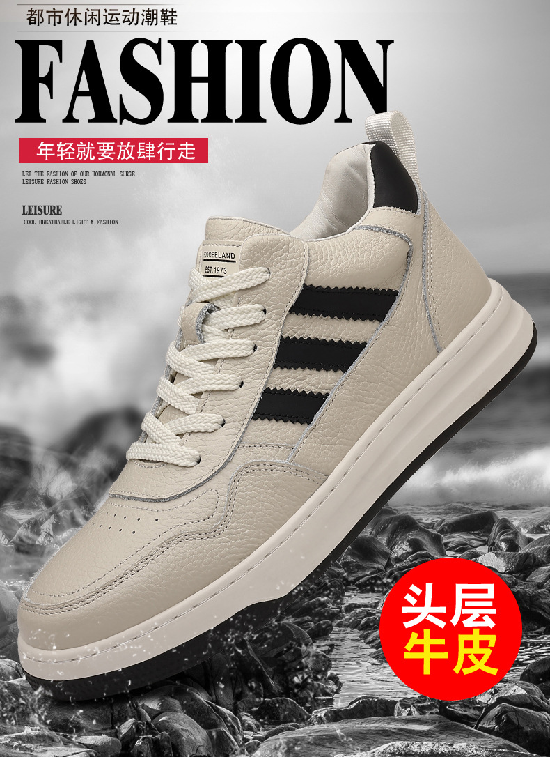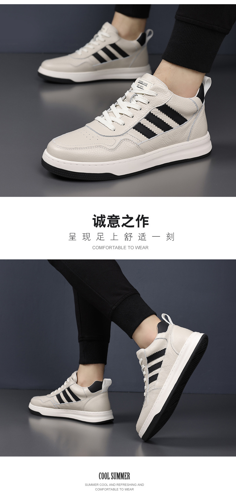 头层牛皮新款高帮男鞋真皮男士休闲鞋运动小白鞋透气时尚男款男鞋