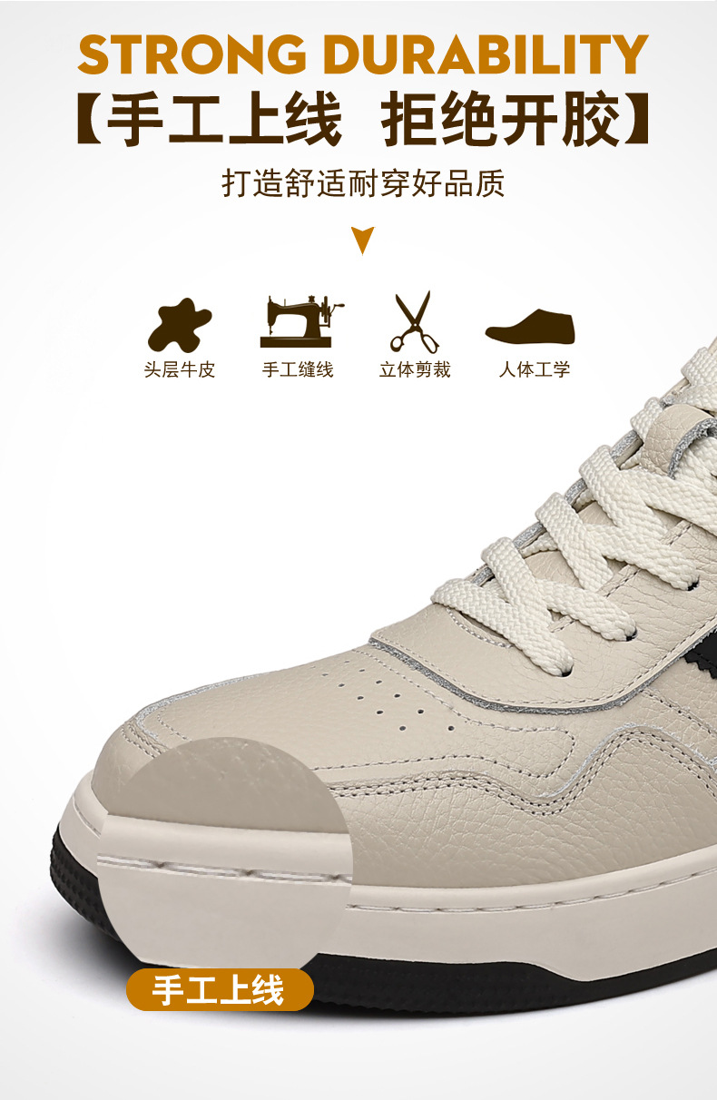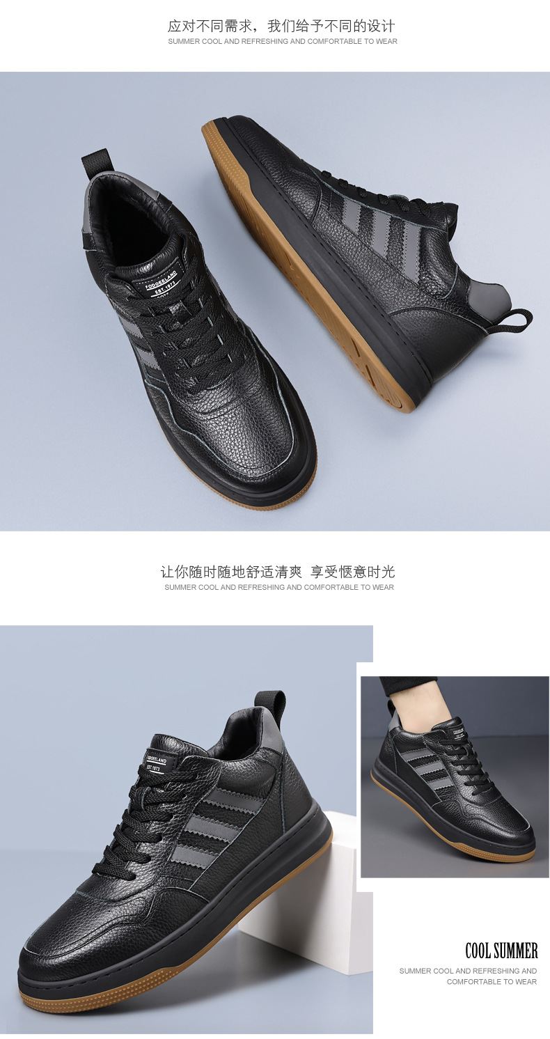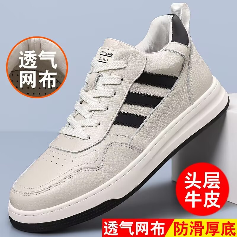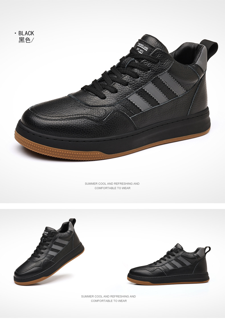 头层牛皮新款高帮男鞋真皮男士休闲鞋运动小白鞋透气时尚男款男鞋