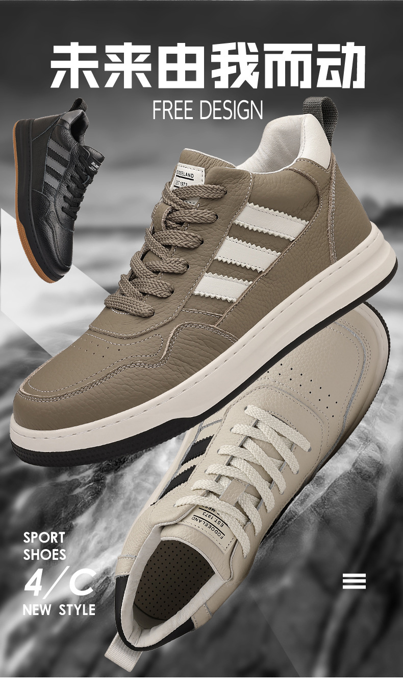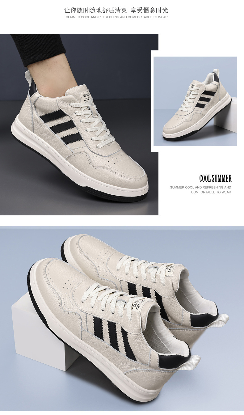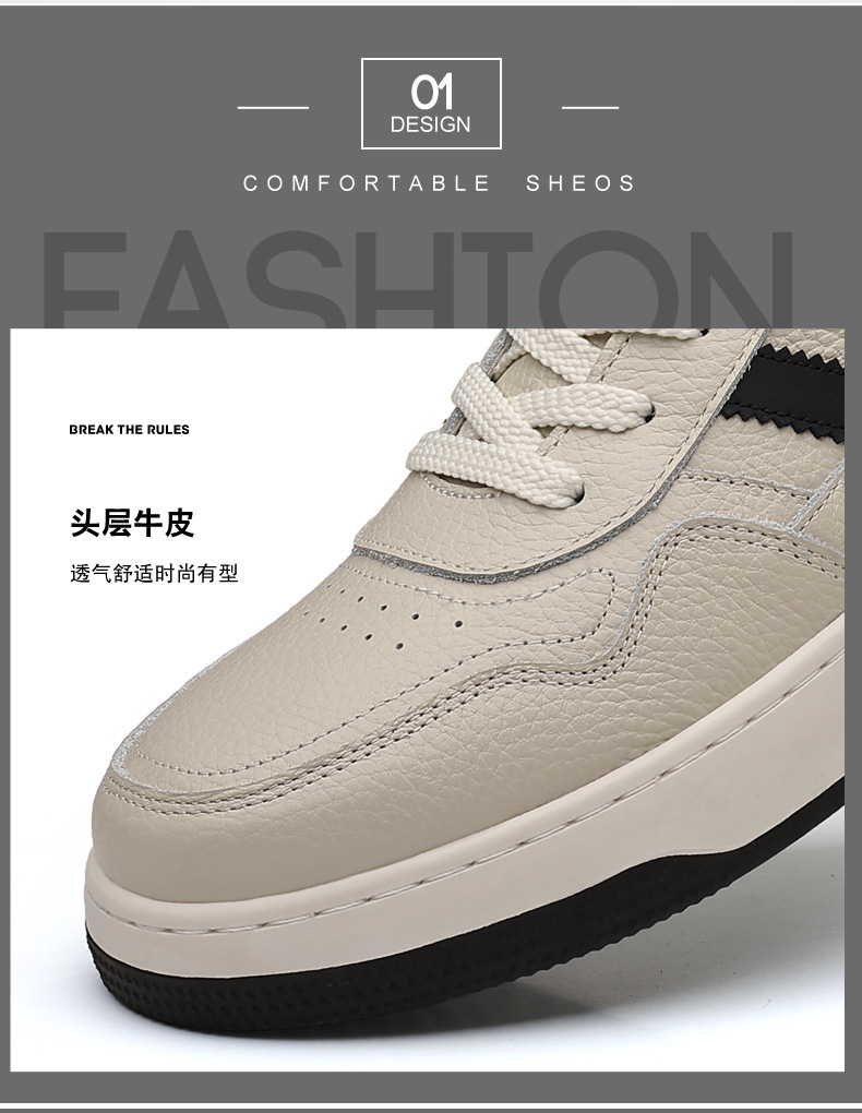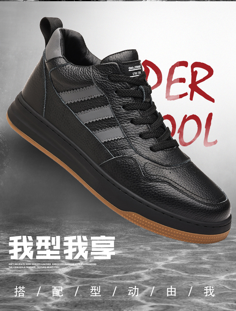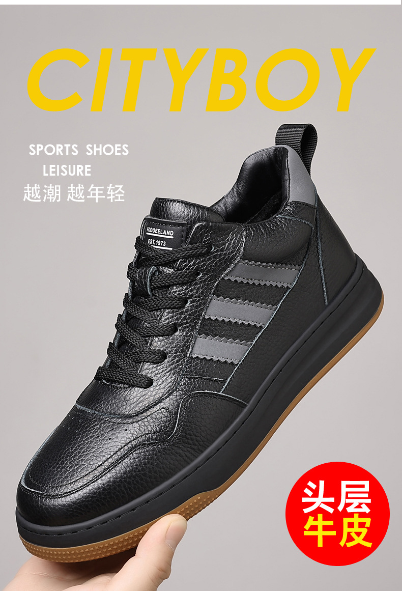 头层牛皮新款高帮男鞋真皮男士休闲鞋运动小白鞋透气时尚男款男鞋