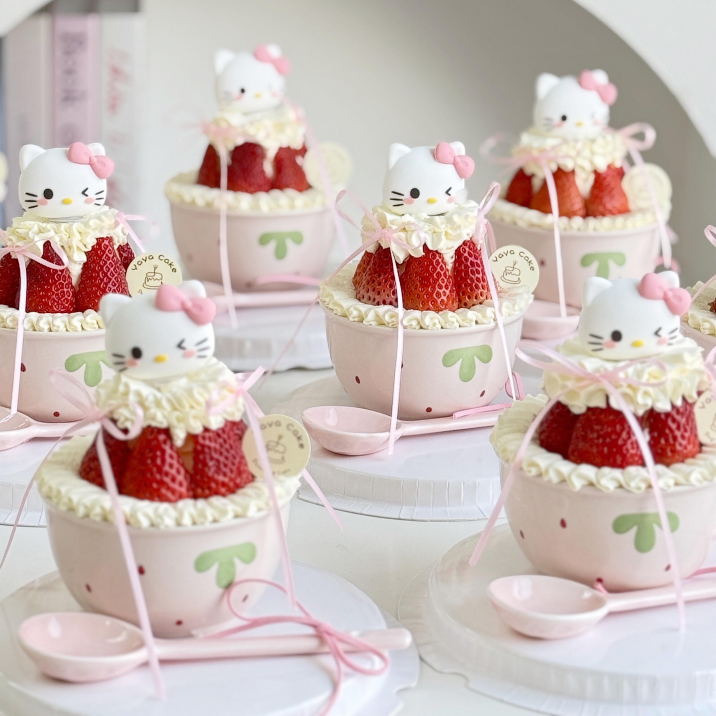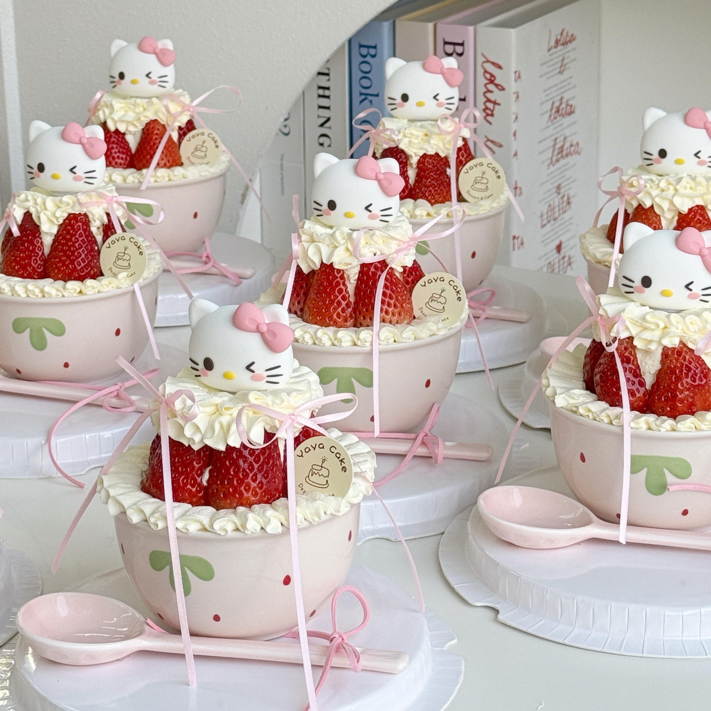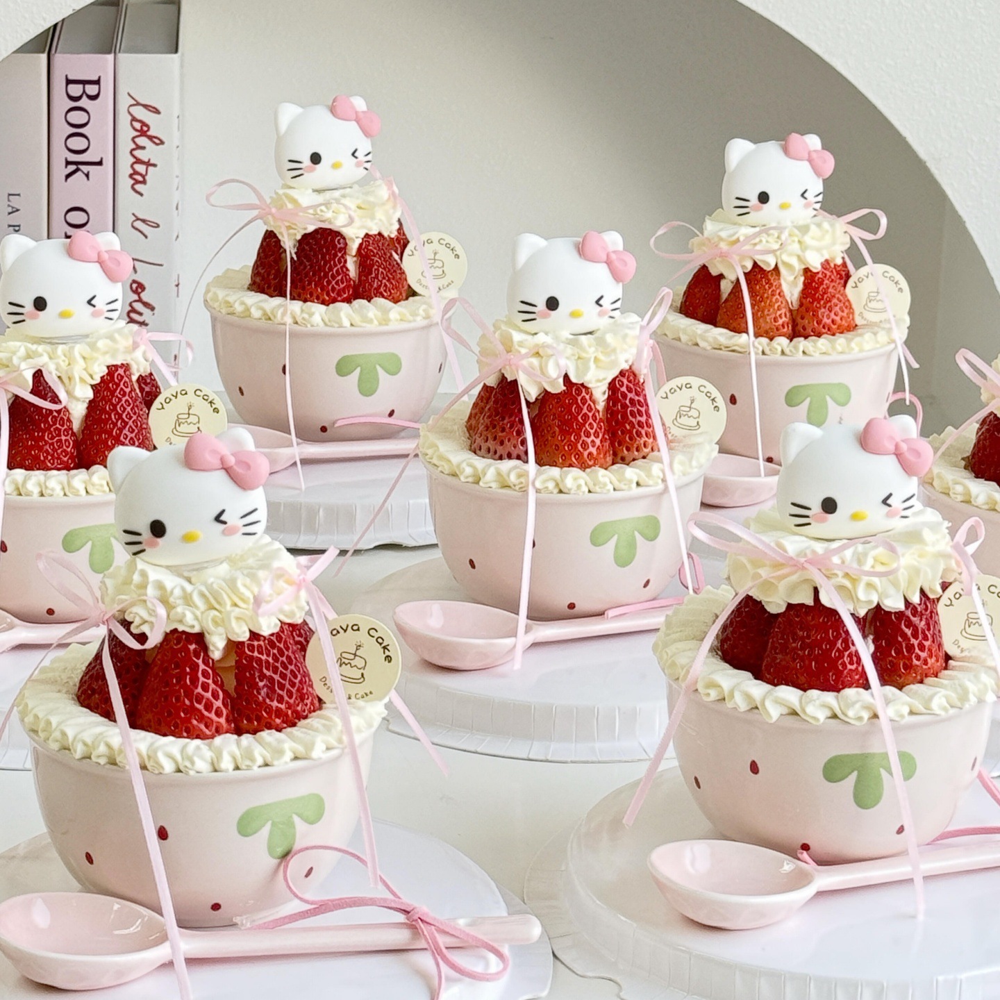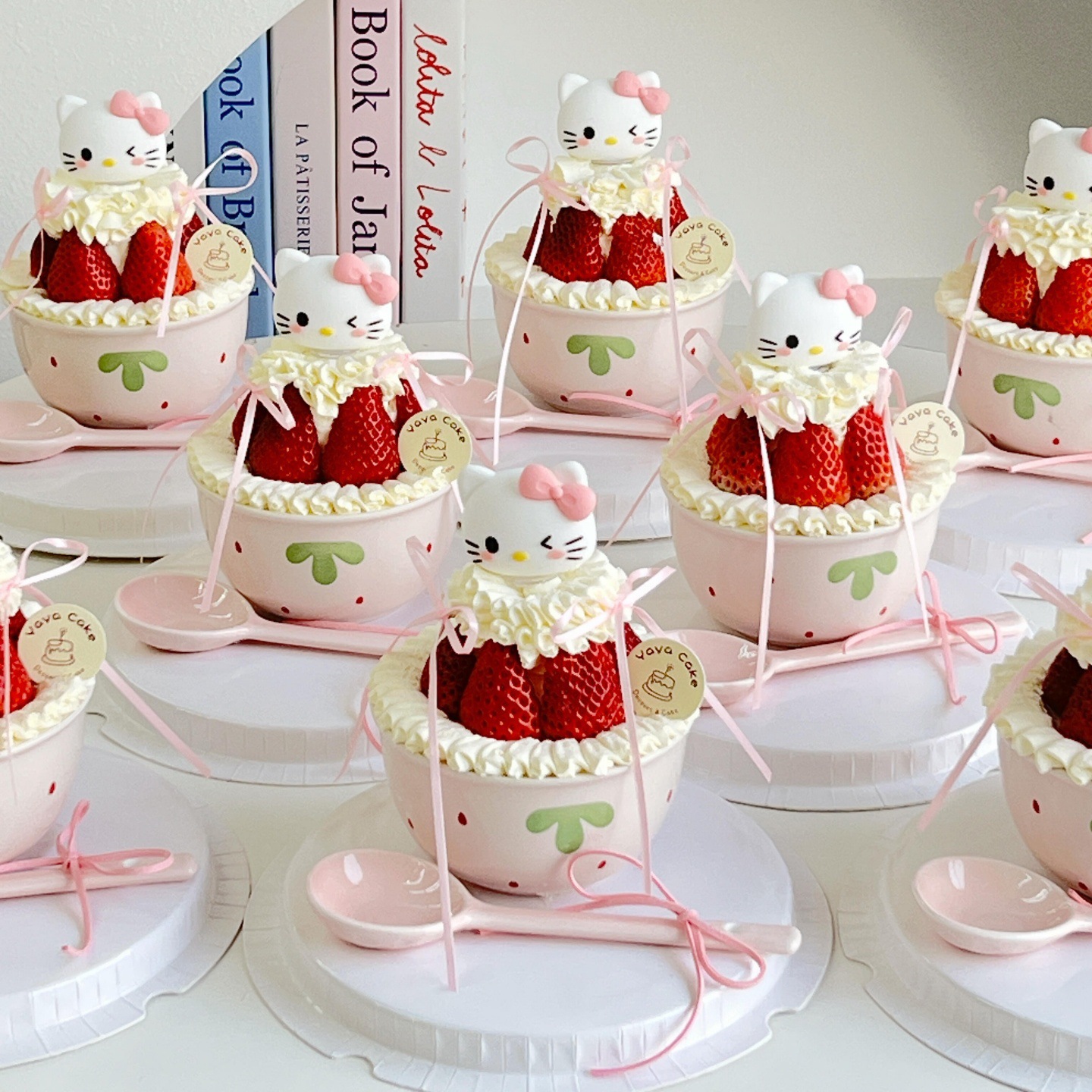 2026网红圣诞节蛋糕装饰kt猫奶油碗蛋糕装饰陶瓷草莓碗抱抱碗烘焙