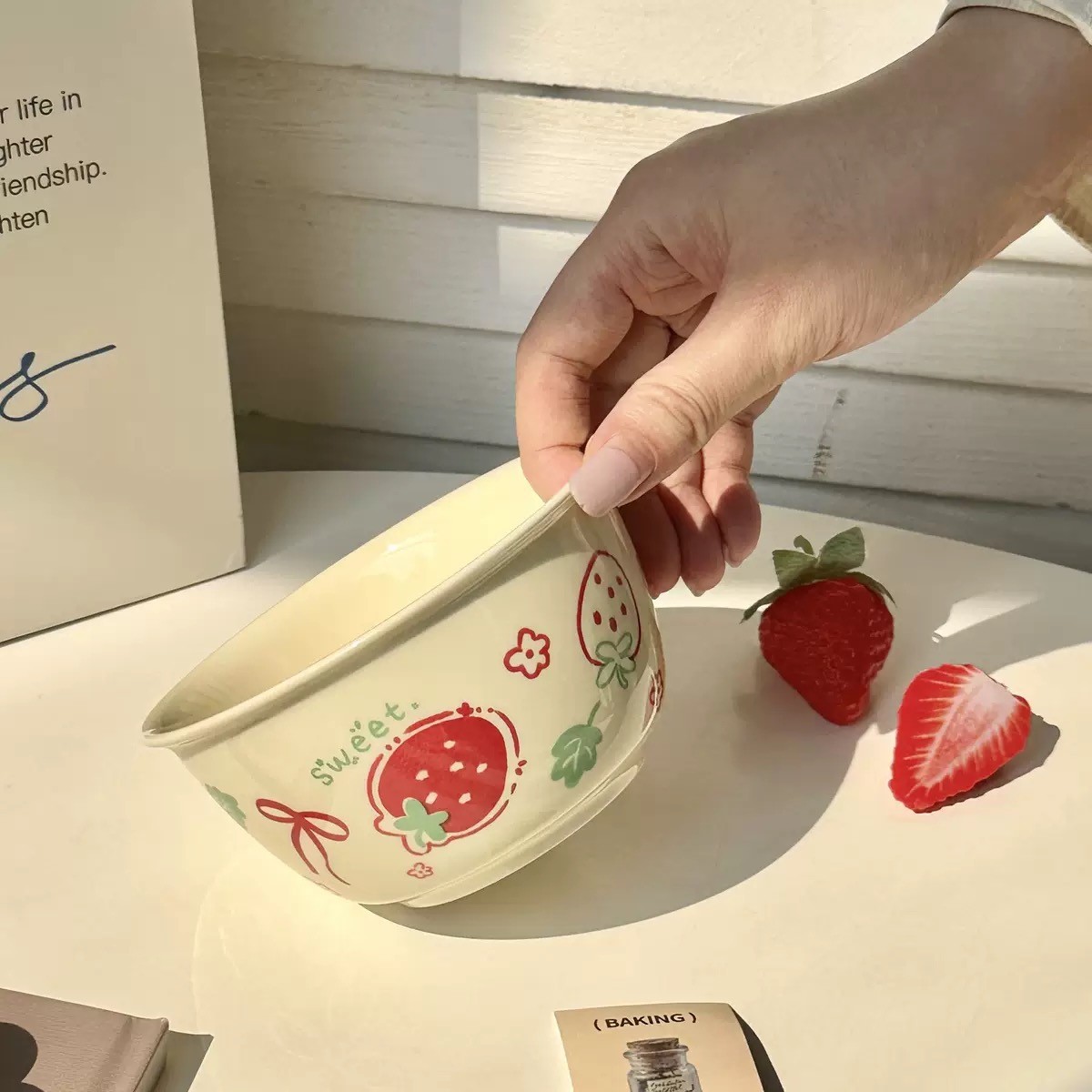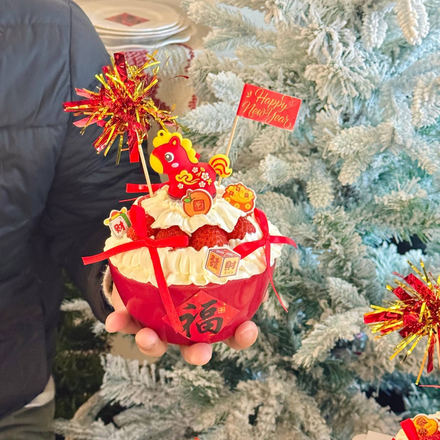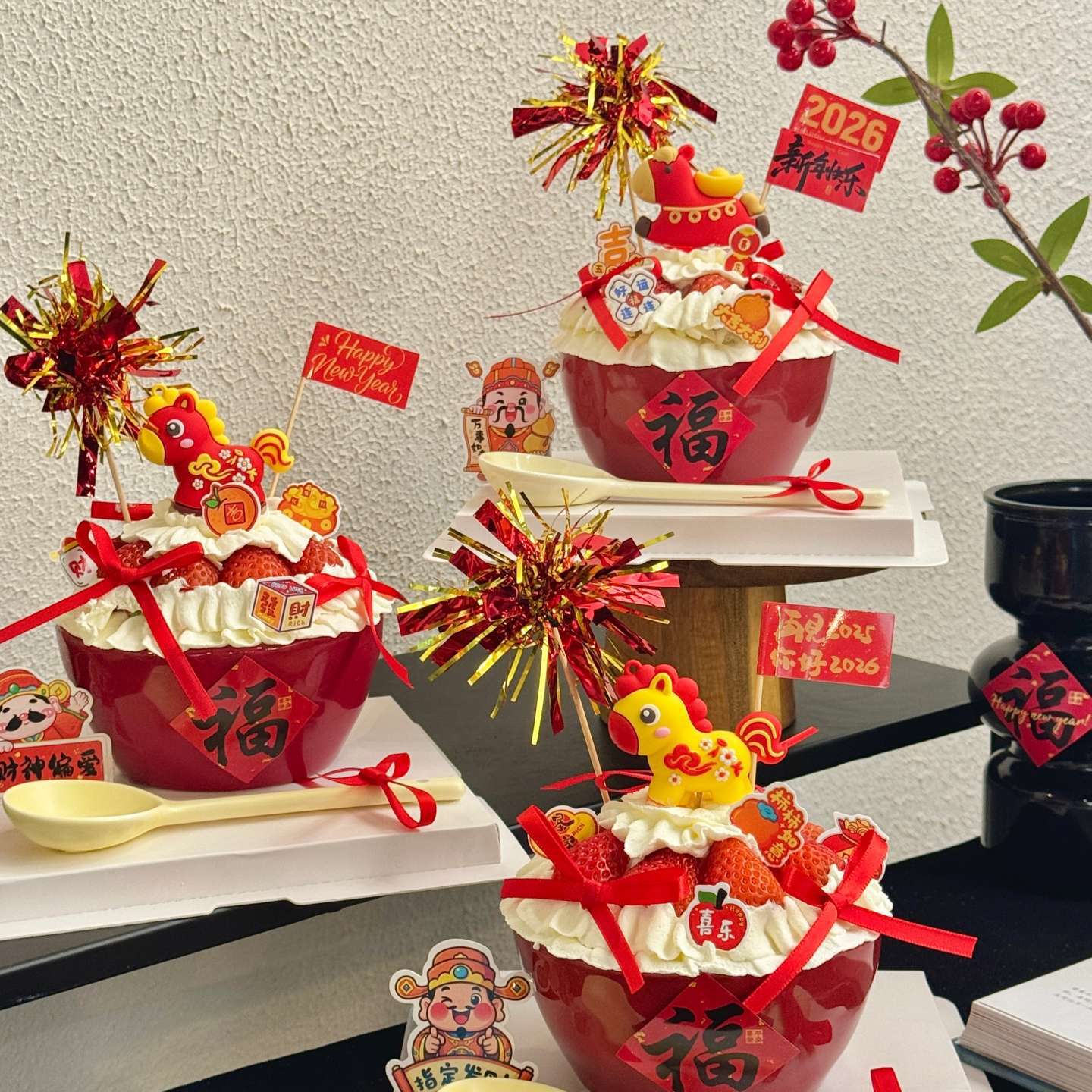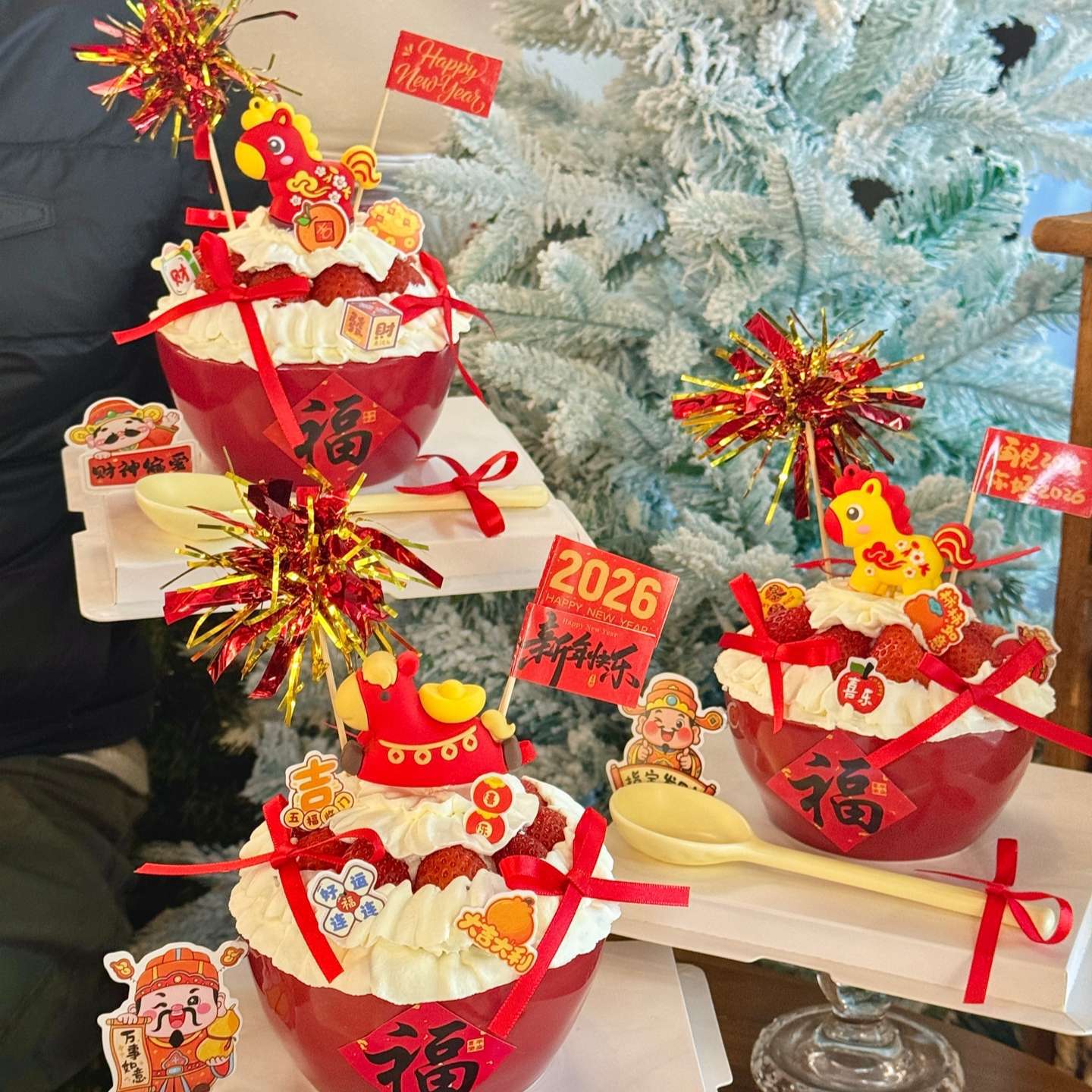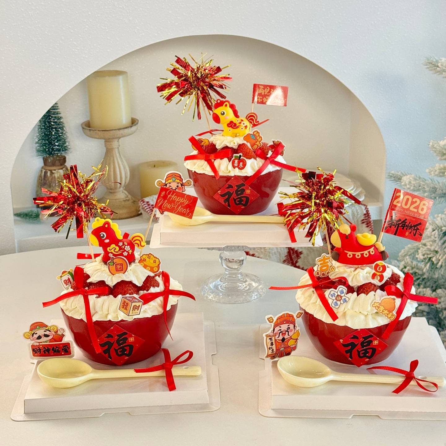 2026网红新年红色陶瓷碗蛋糕装饰元旦跨年草莓碗甜品碗马年蛋糕碗