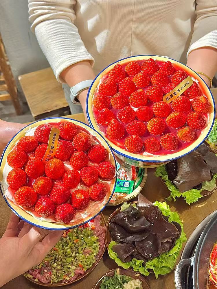 圣诞节4寸14草莓蛋糕盆16防搪瓷碗老式带盖搪瓷盆猪油盆