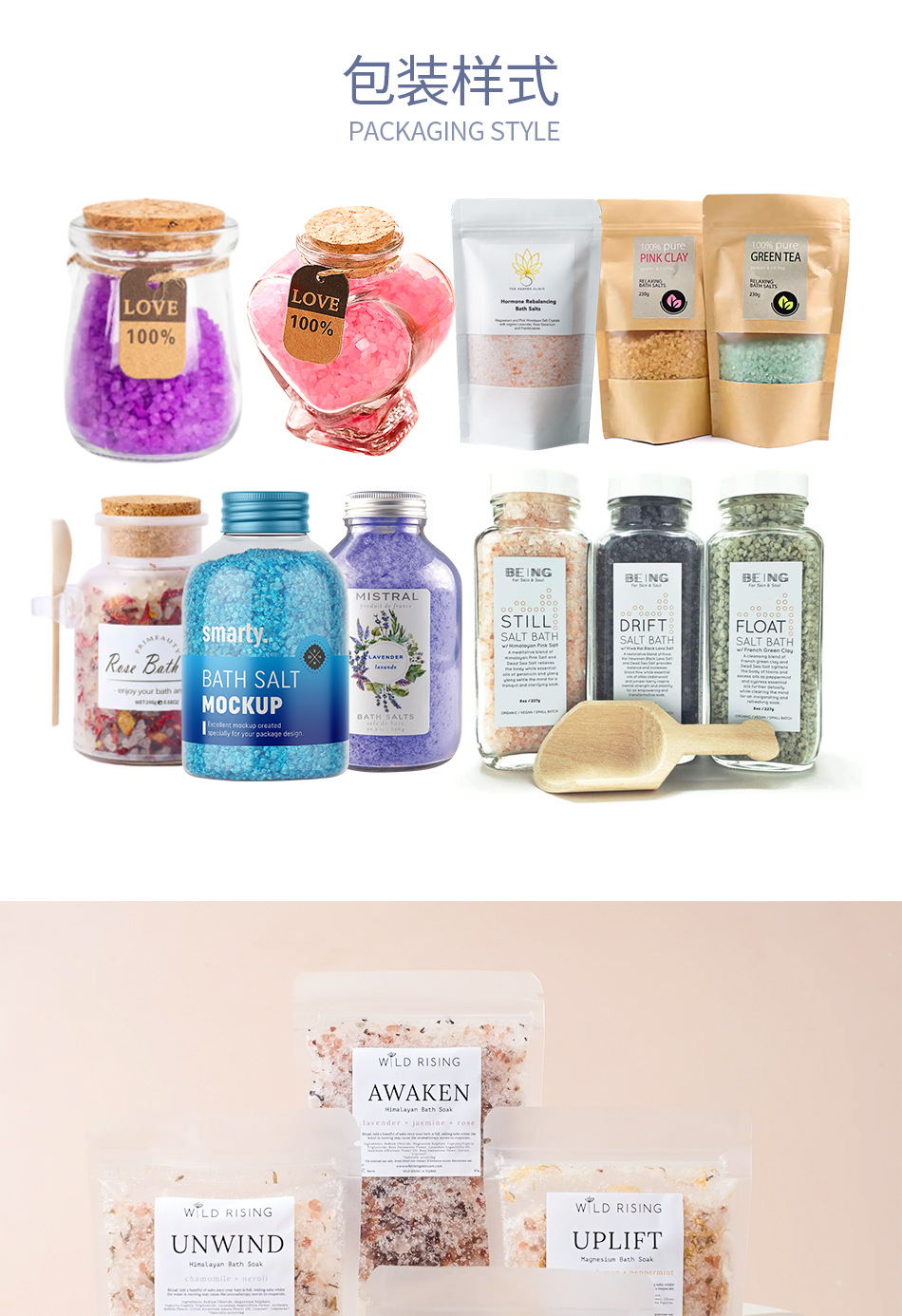 喜马拉雅袋装盐牛奶玫瑰彩色浴盐沐浴盐酒店澡堂泡澡盐洗浴盐瓶装