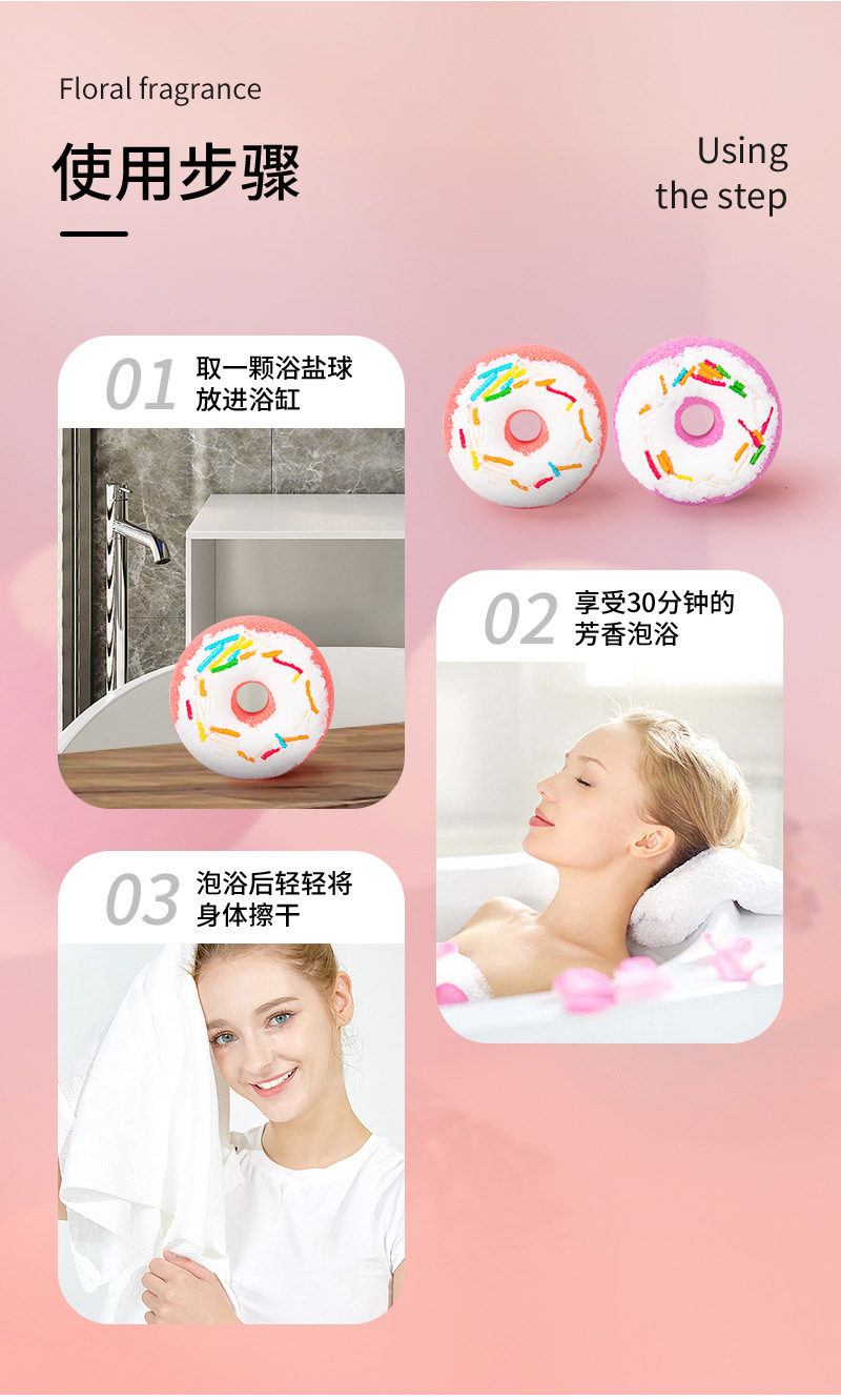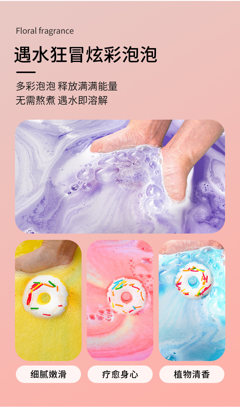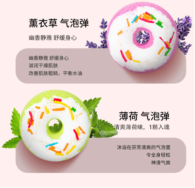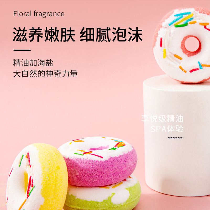 跨境厂家现货批发甜甜圈泡澡球 浴缸香氛海盐泡泡浴沐爆炸浴盐球