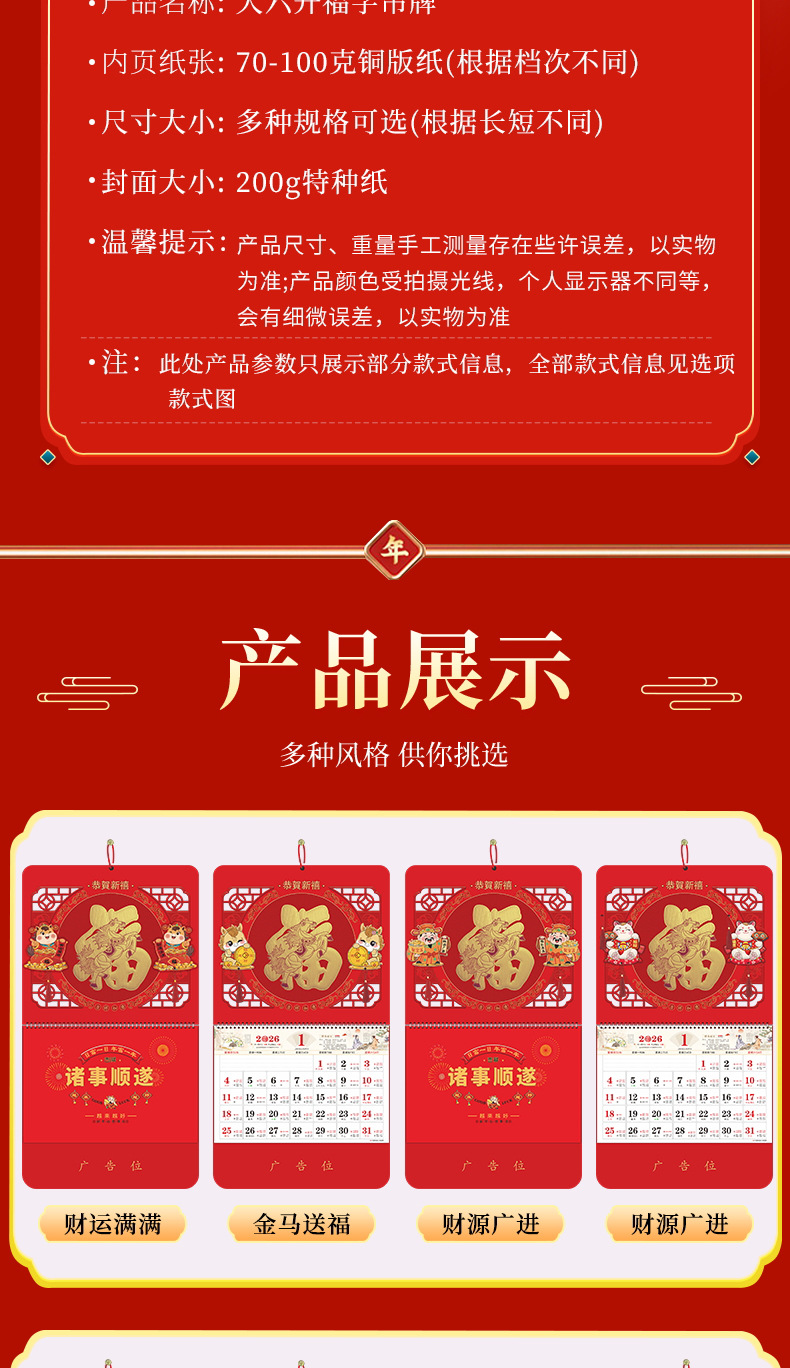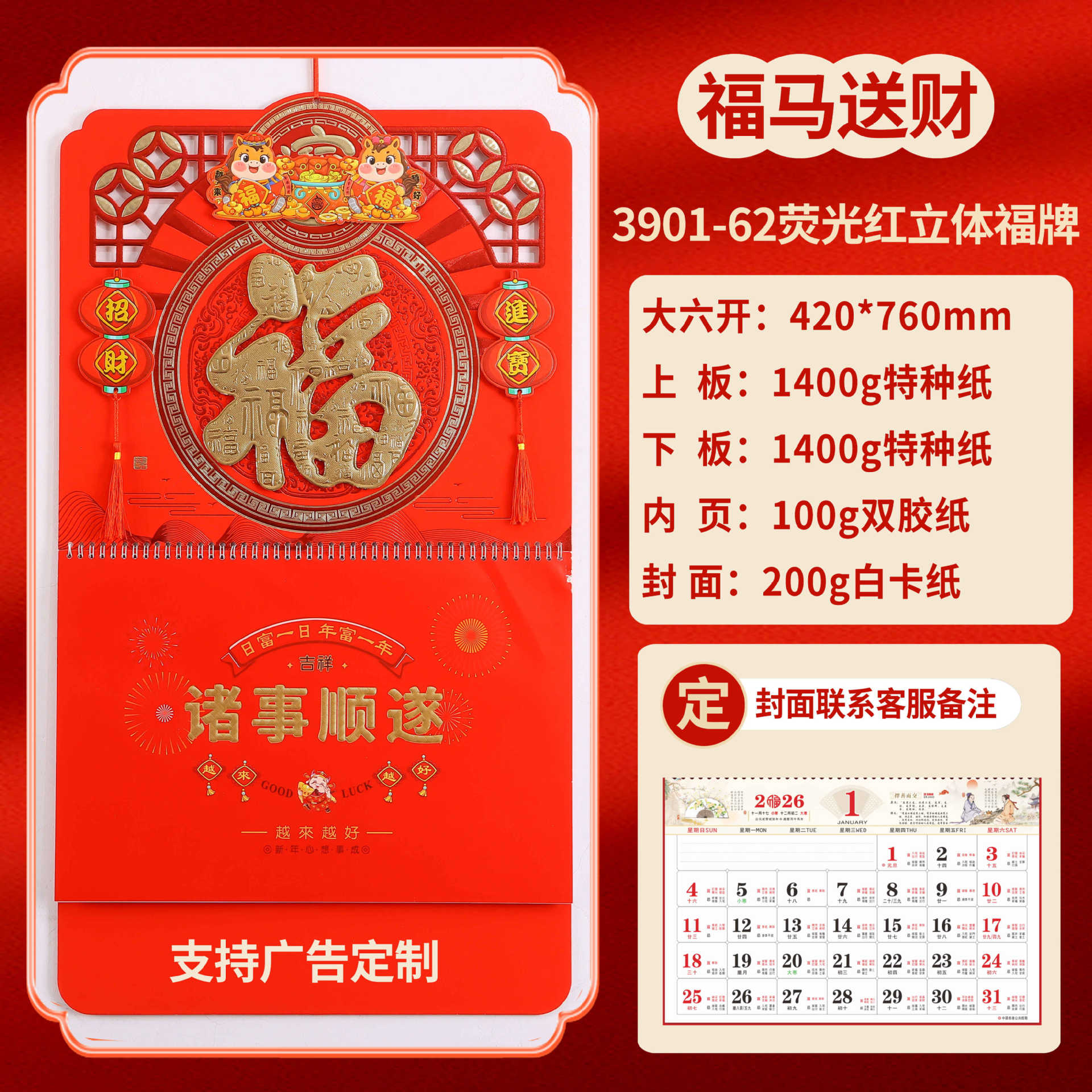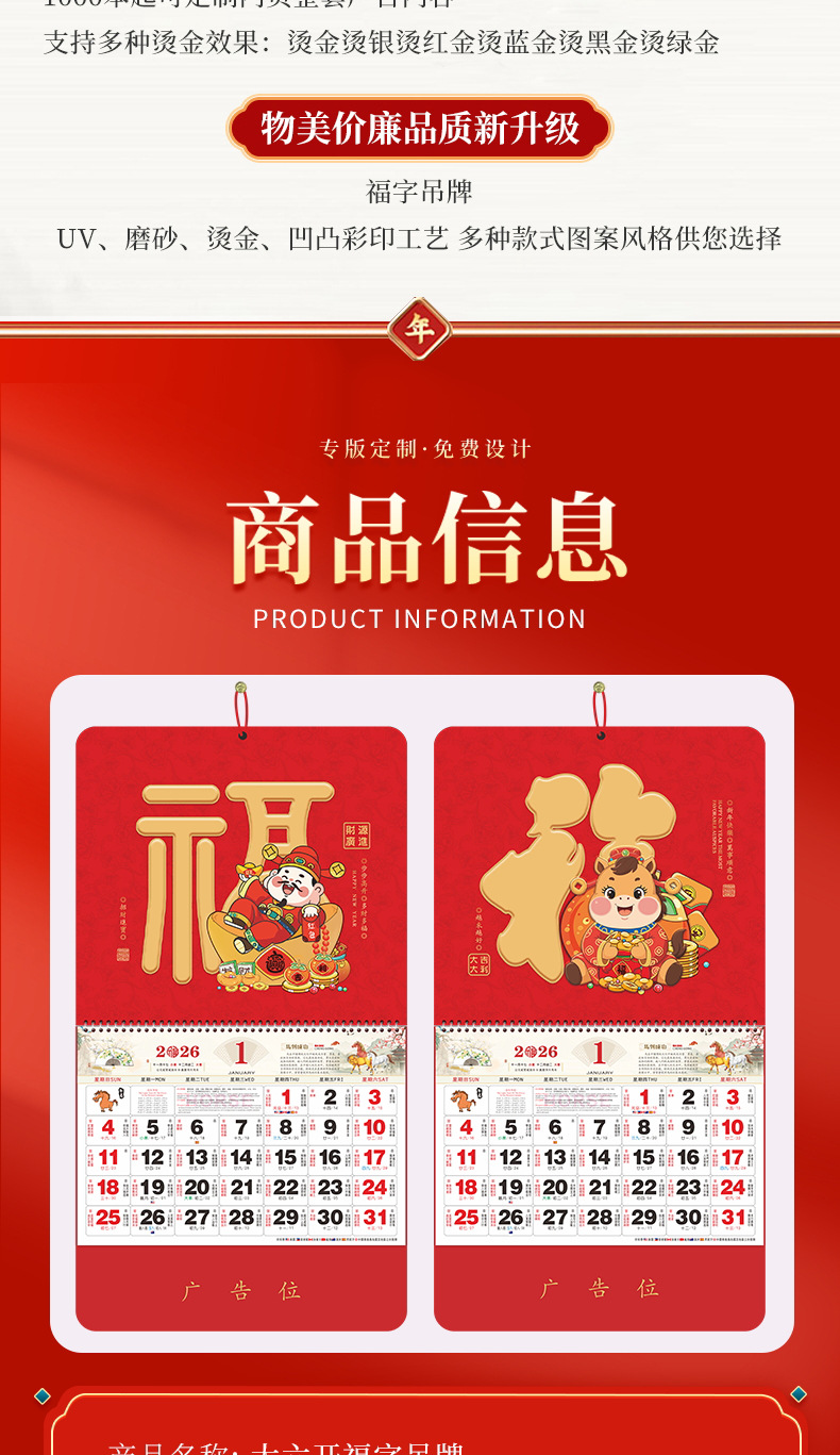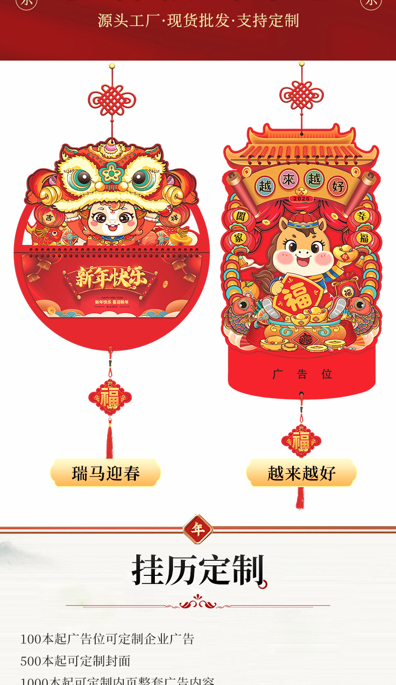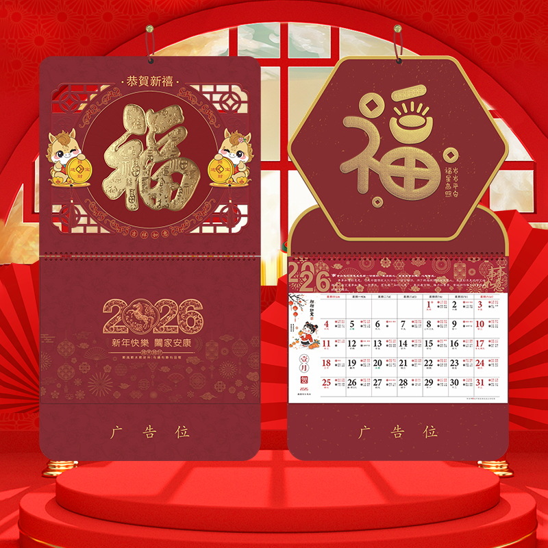 2026马年福牌挂历定制公司广告礼品日历定做印刷挂牌月历台历批发